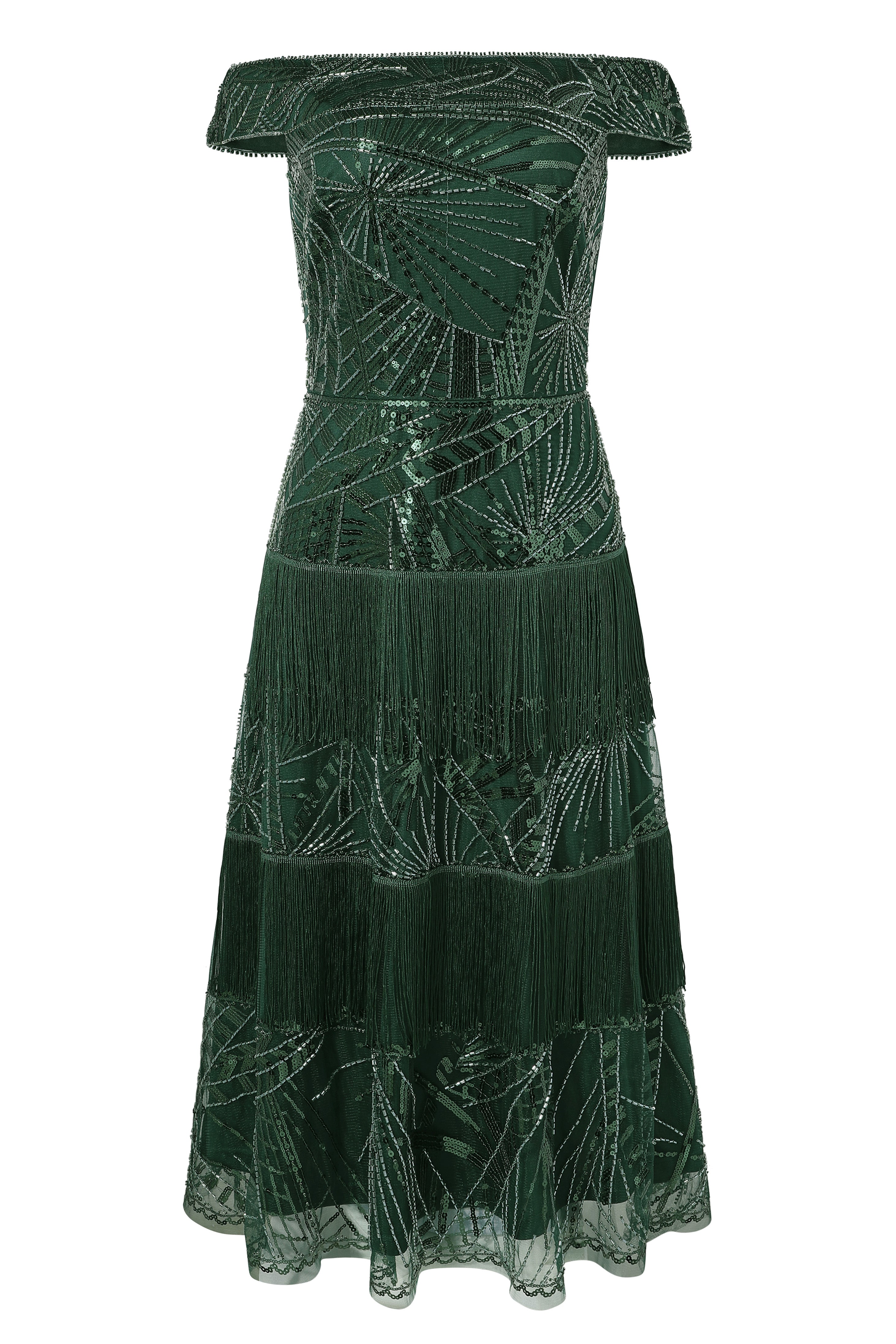 Shimmer Tiered Fringe Bias Hem Dress