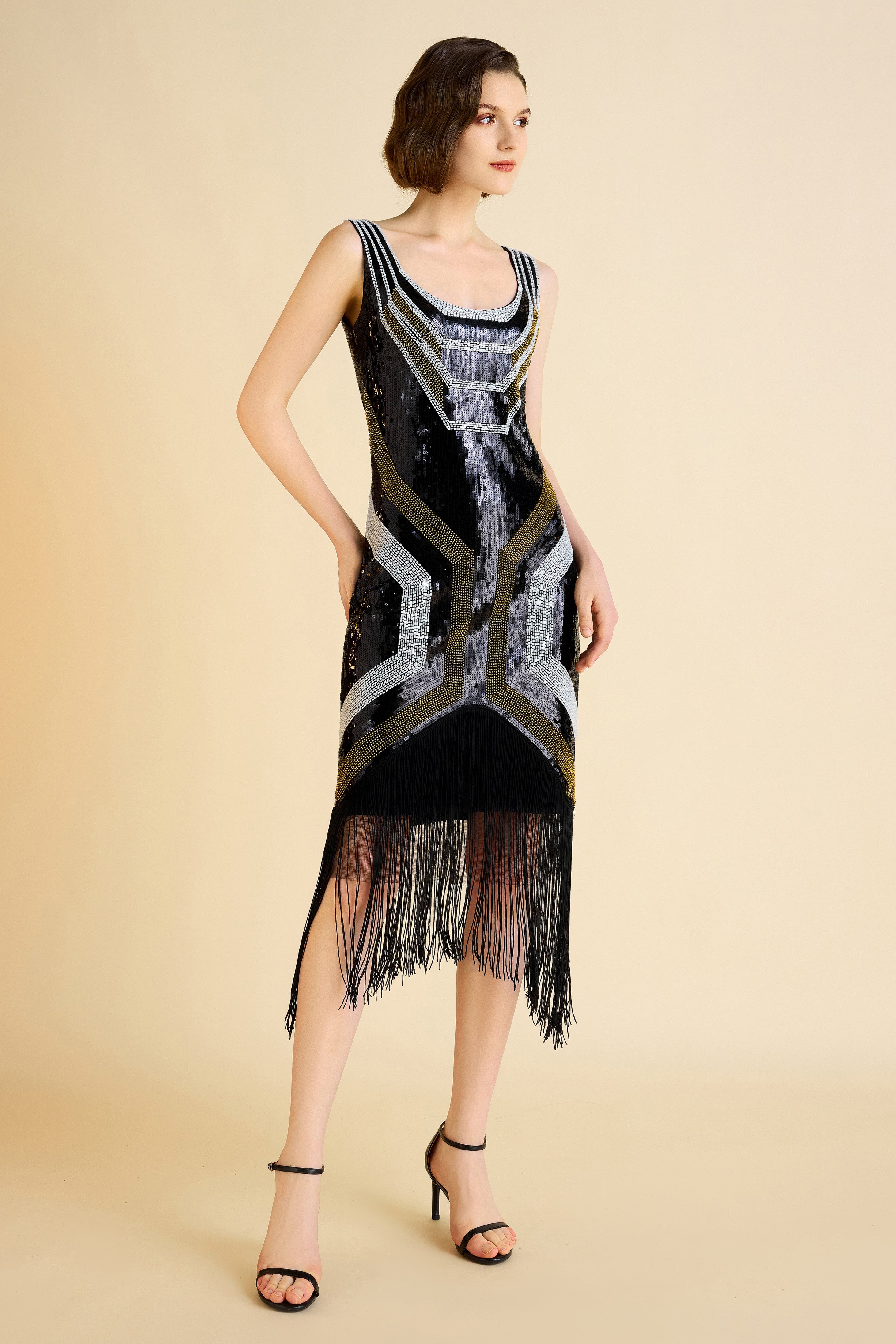 Gracefully Swaying Fringe Flapper Dress