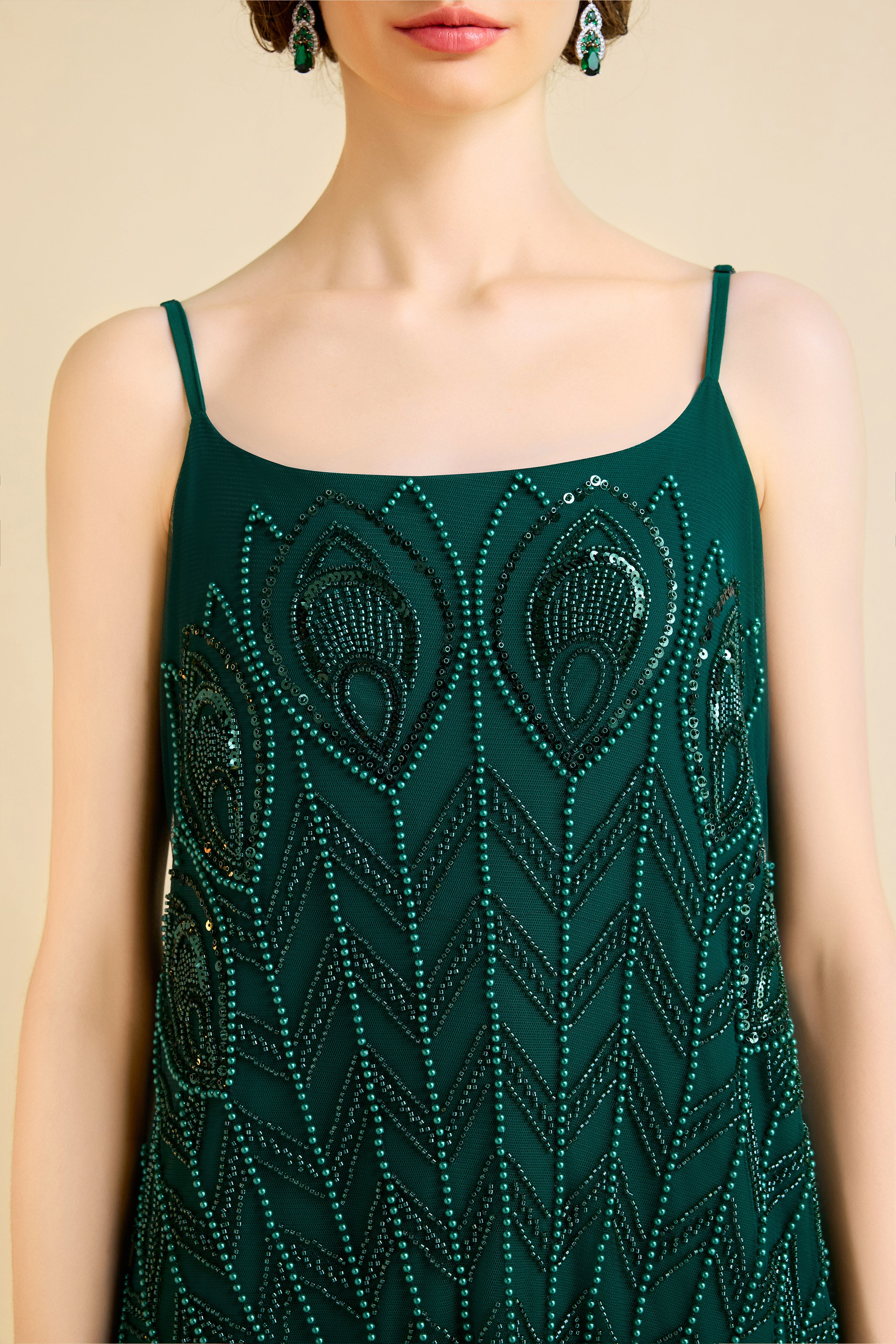Beaded Sequin V-Neck Mini Slip Dress