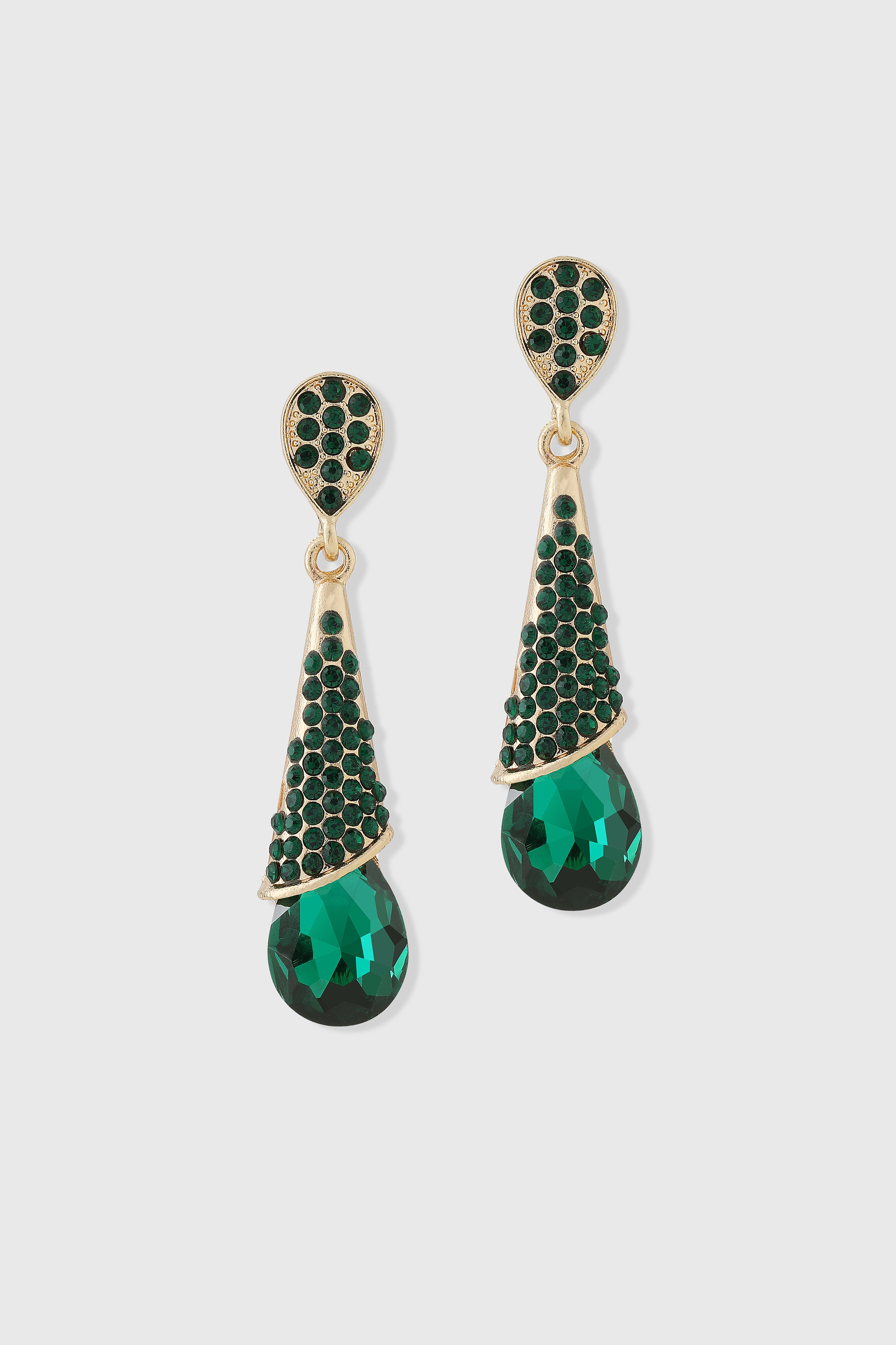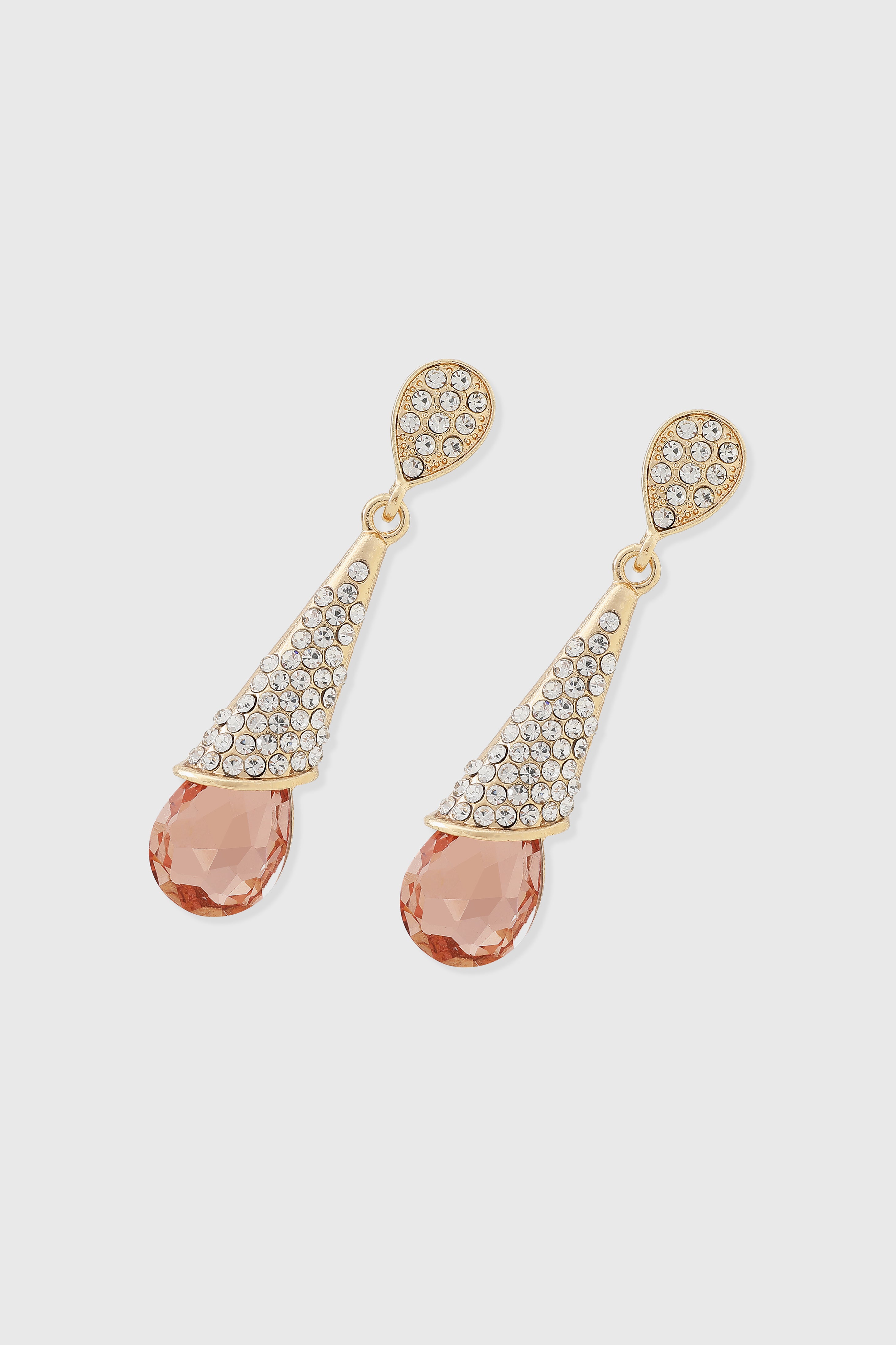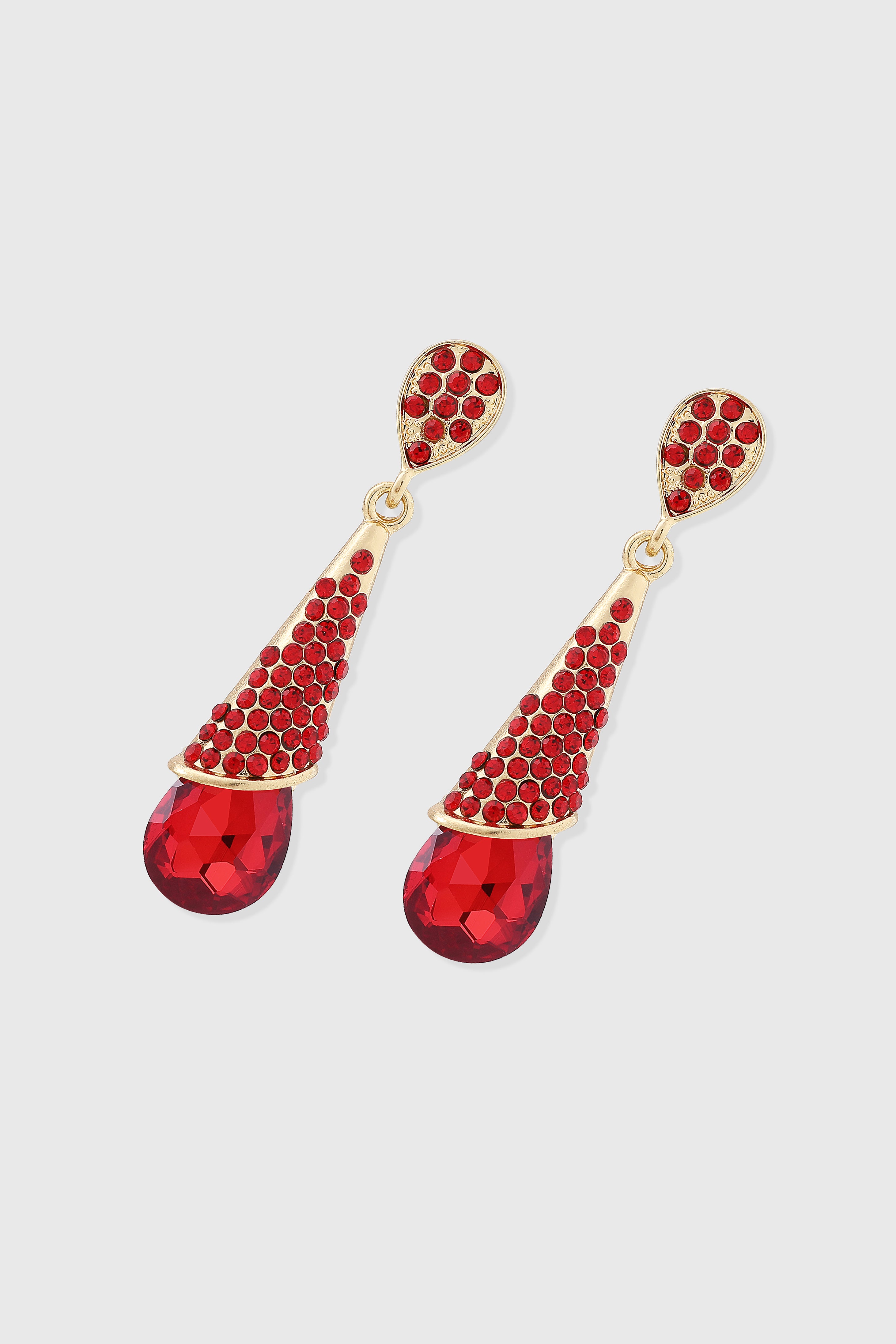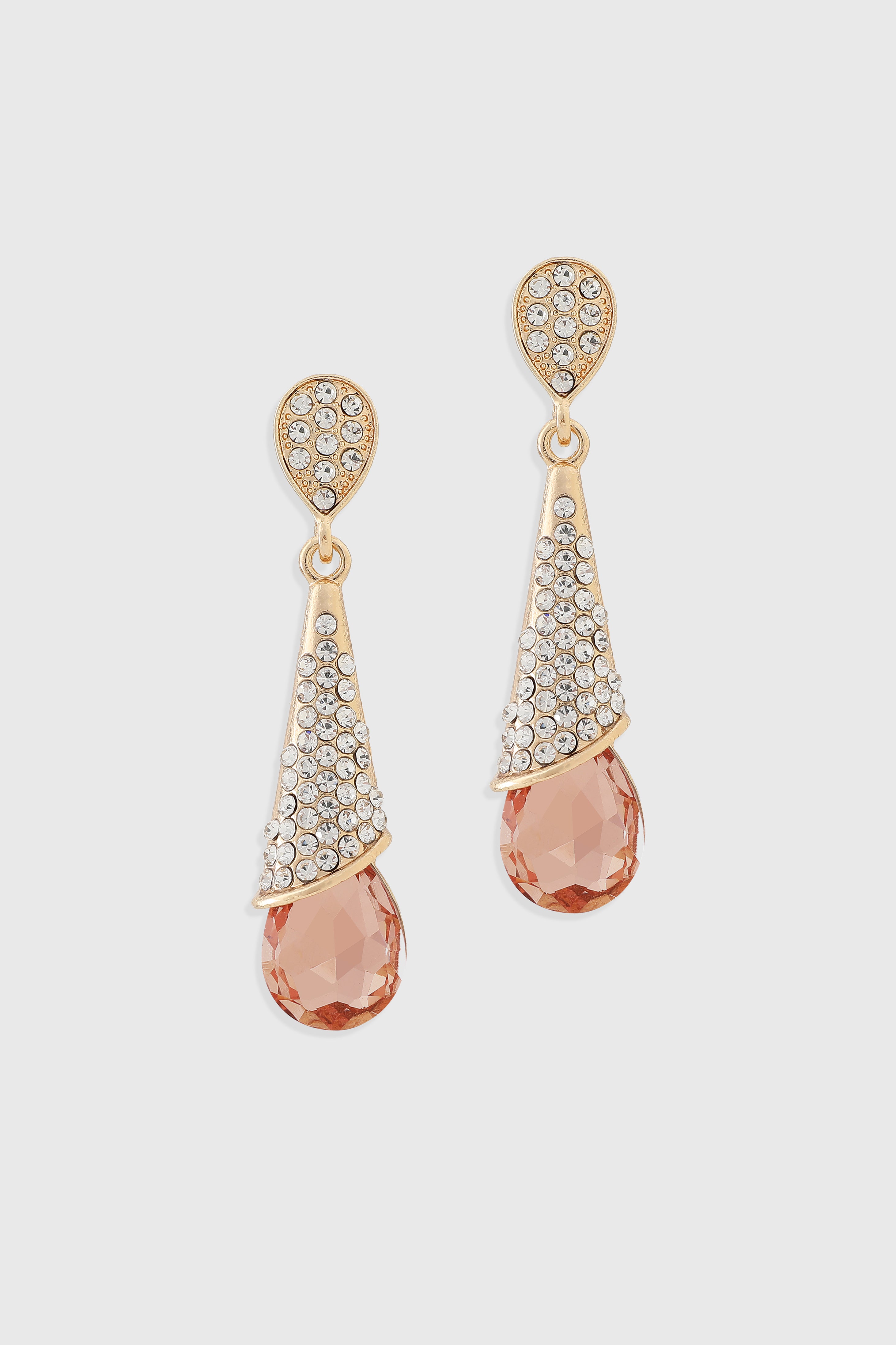 Featuring a stunning teardrop-shaped crystal suspended from a pave rhinestone-encrusted drop, these earrings capture the light beautifully for a radiant sparkle.