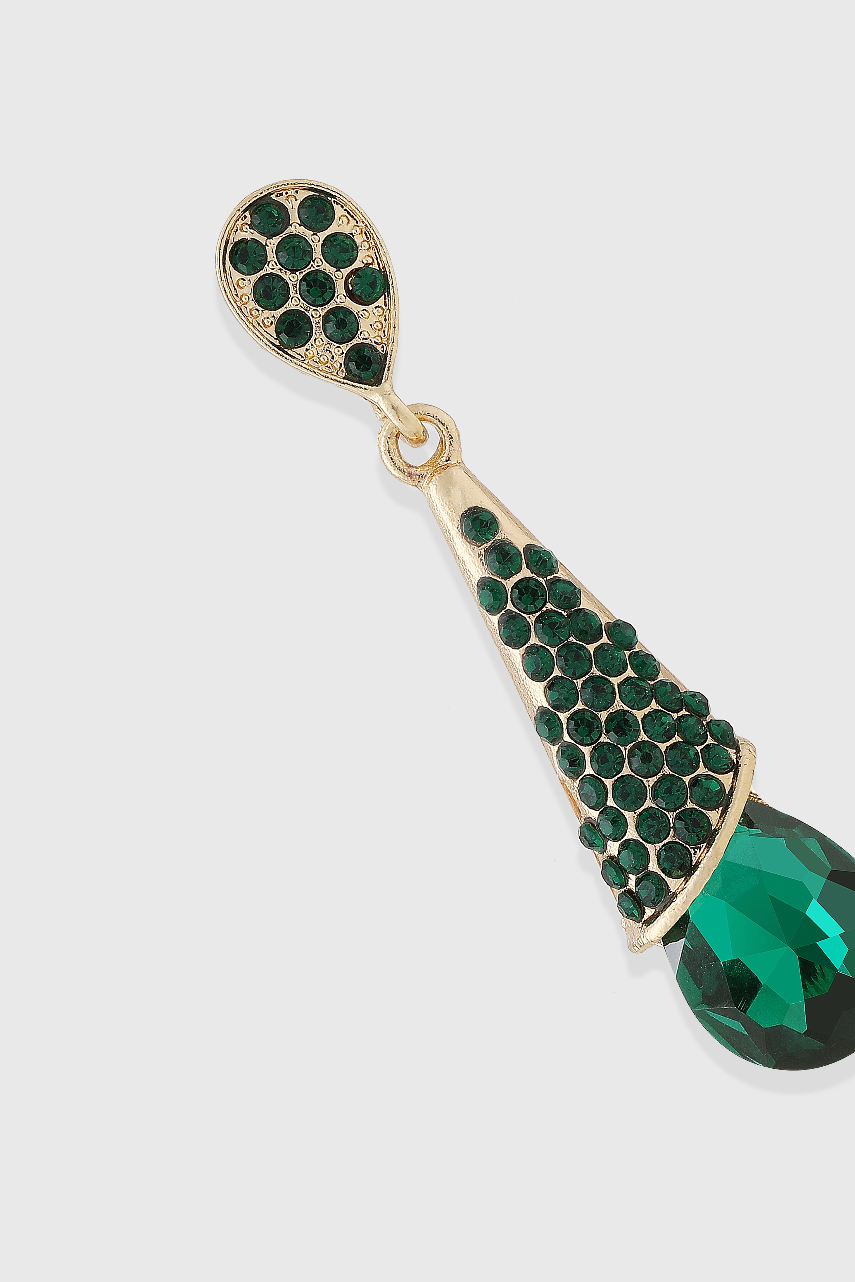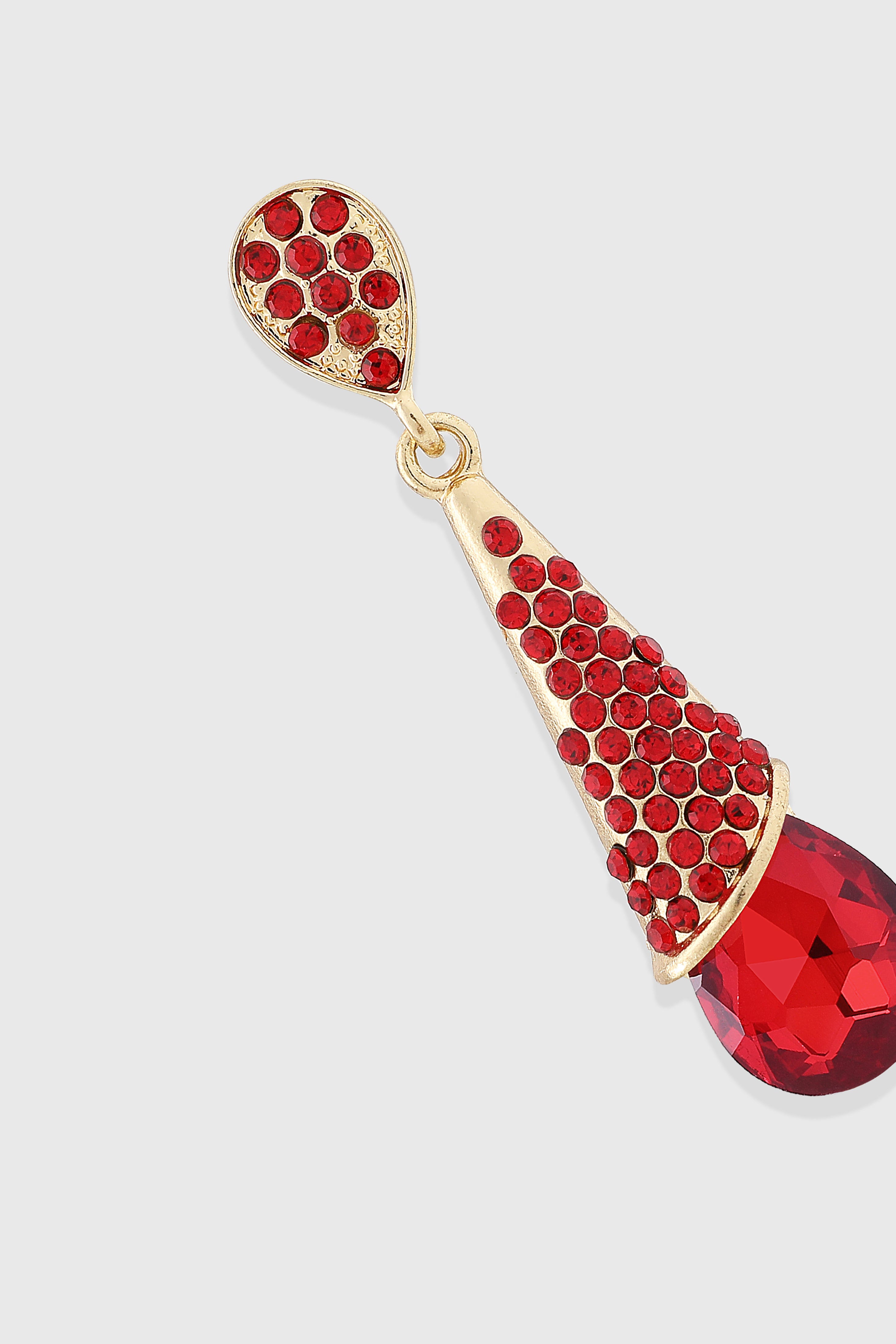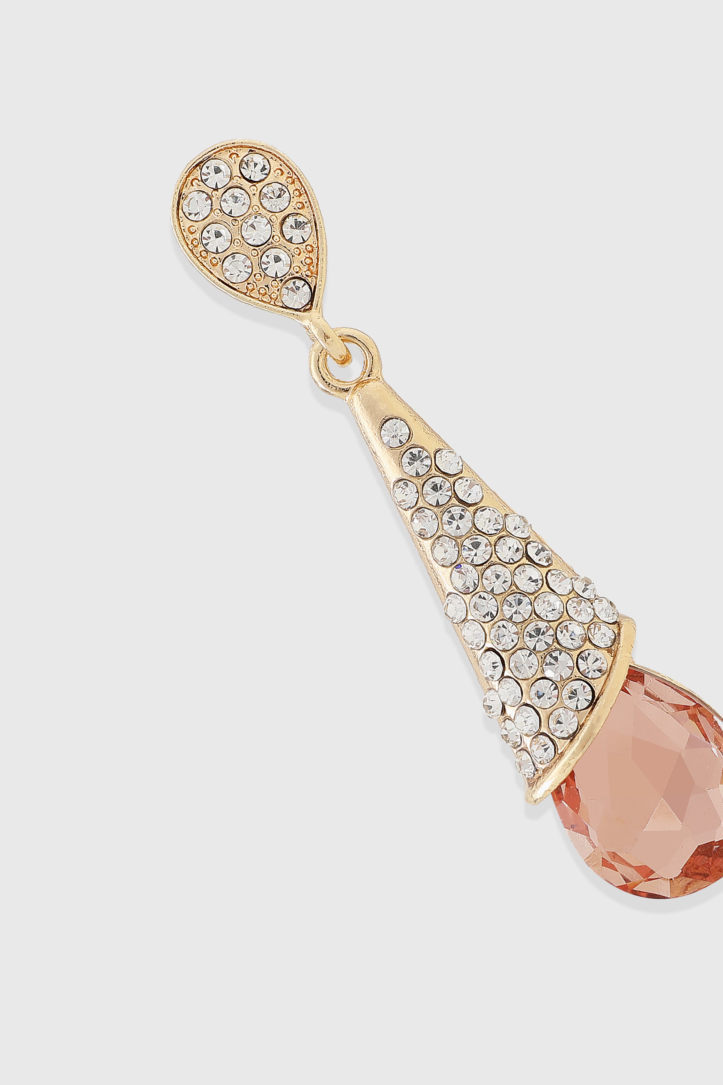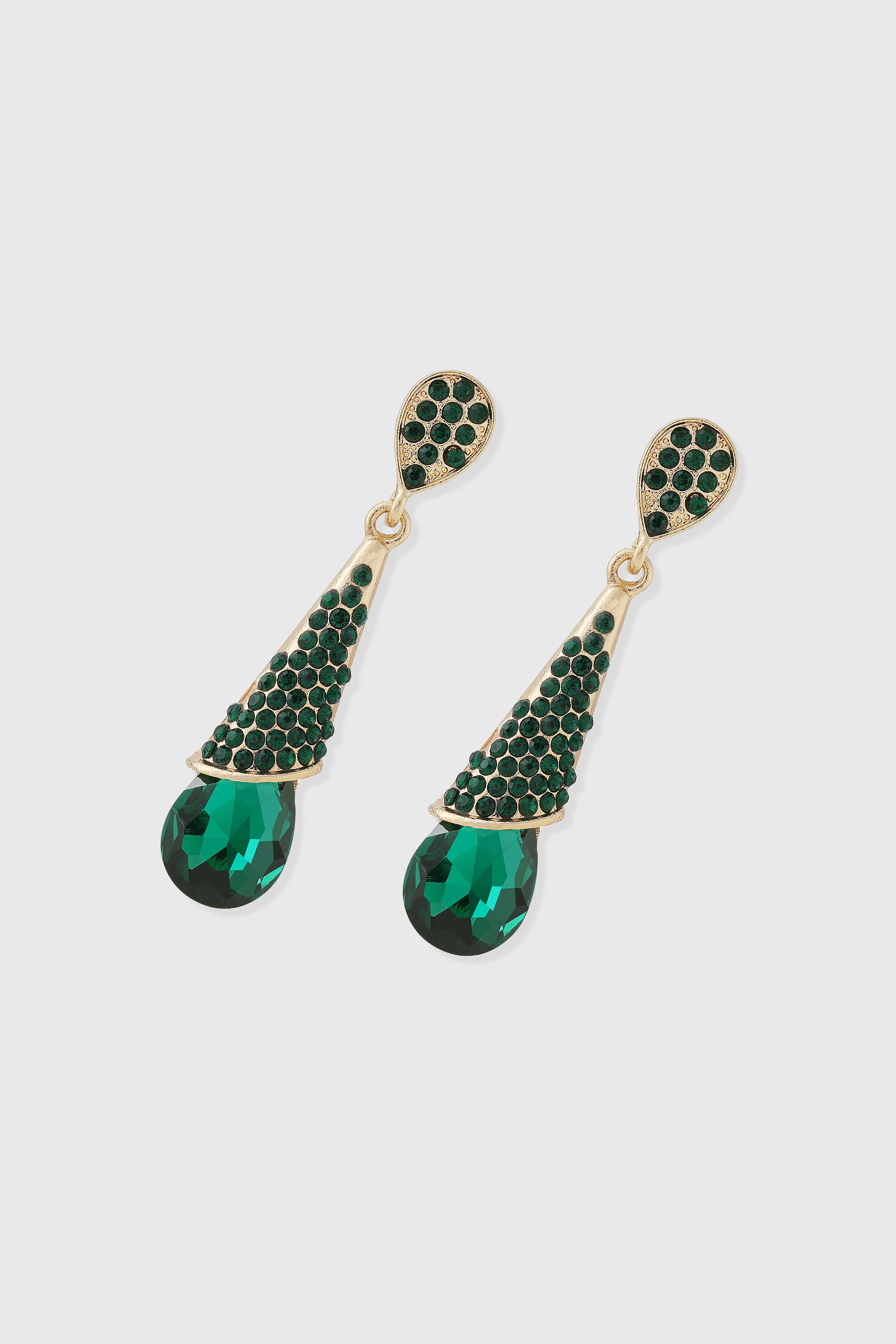 Featuring a stunning teardrop-shaped crystal suspended from a pave rhinestone-encrusted drop, these earrings capture the light beautifully for a radiant sparkle.