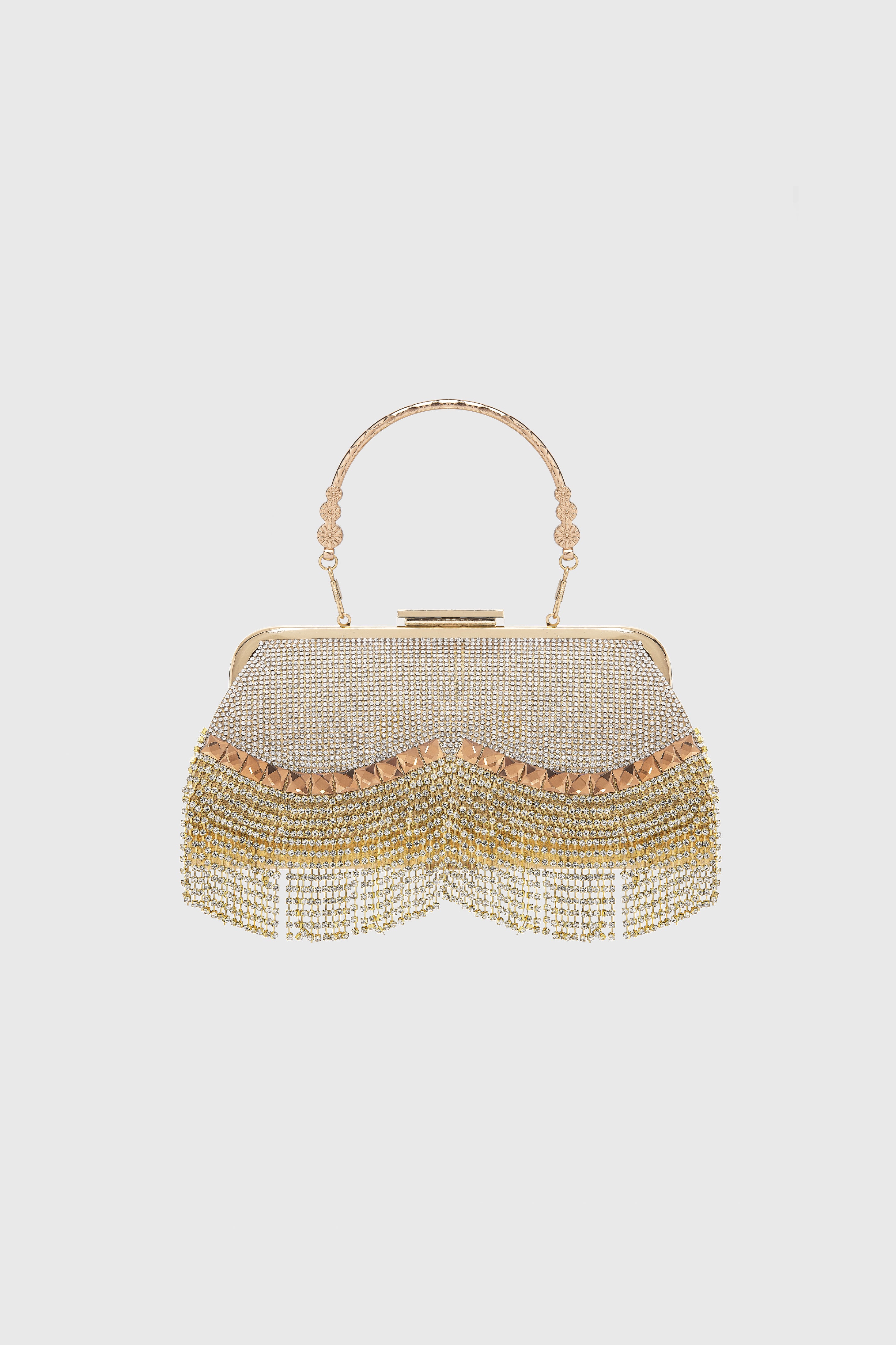 Channel the glamour of the Roaring Twenties with this exquisite Embellished Rhinestone Tassel Clutch Purse. Lavishly adorned with sparkling rhinestones, this clutch embodies the opulent style of the 1920s, capturing the essence of vintage sophistication. The elegant tassel detailing adds a classic touch, evoking the era's luxurious flair.