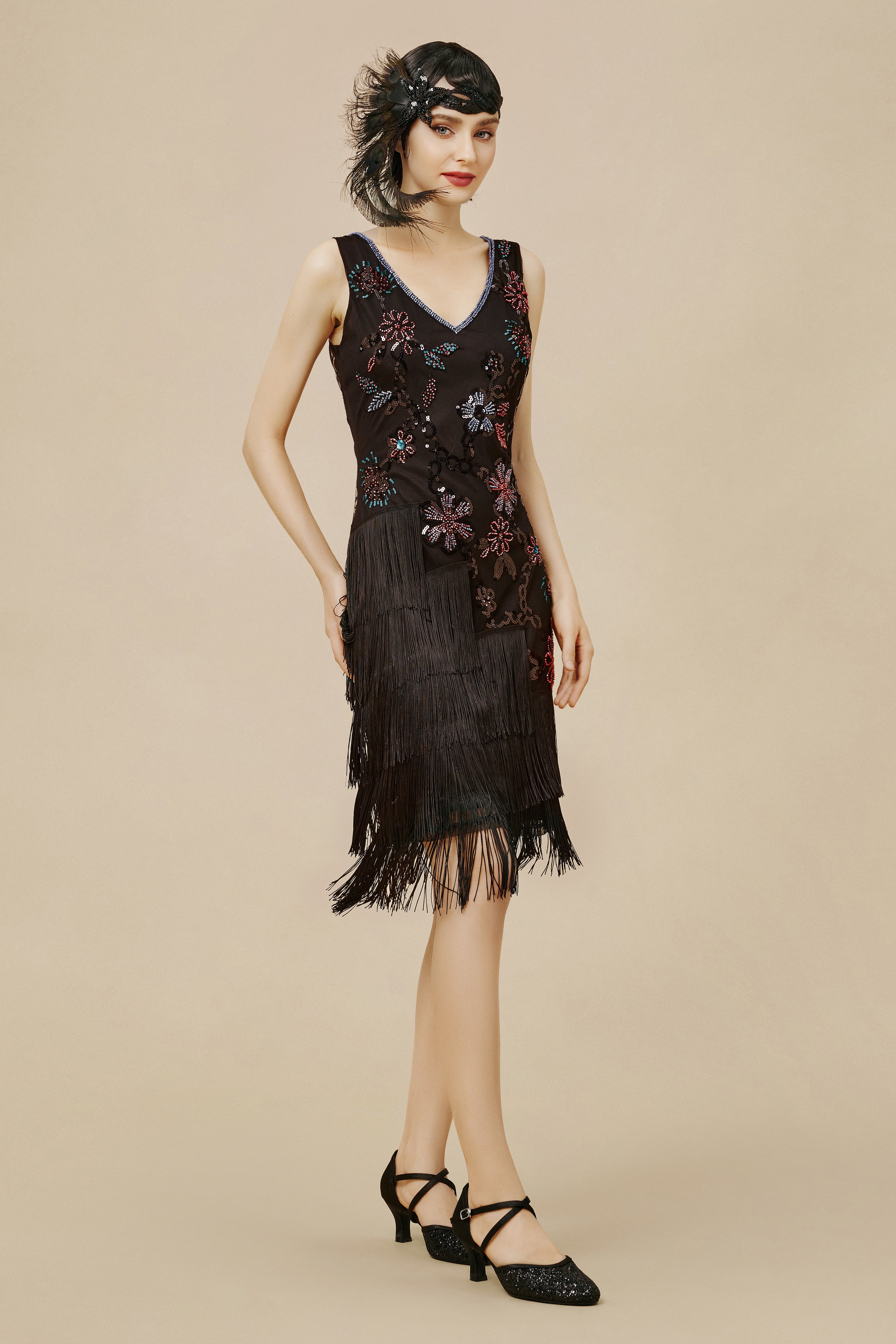 Flowery Tassel Sequins Flapper Dress