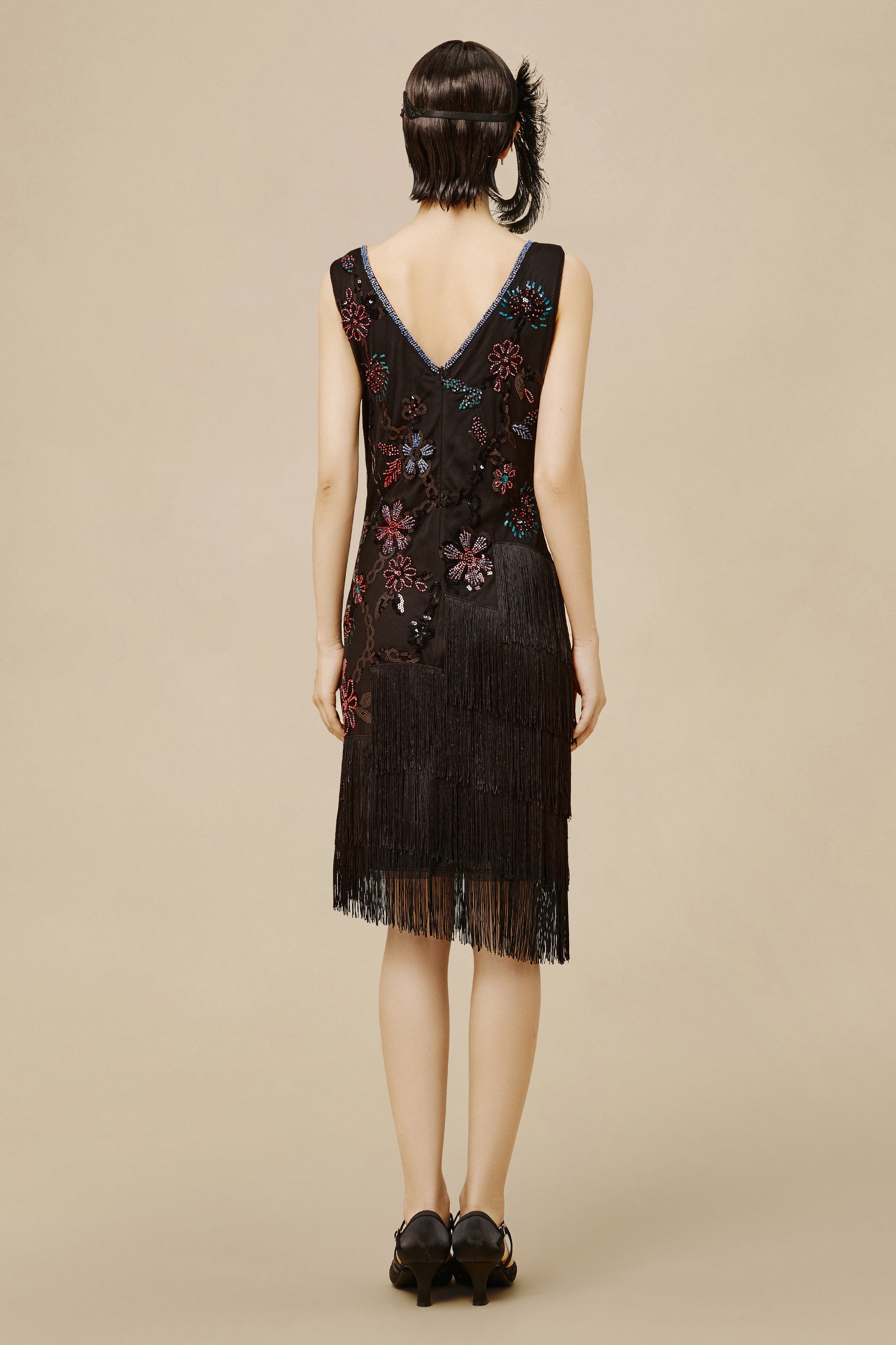 Embellished Sequin Fringe Art Deco Dress