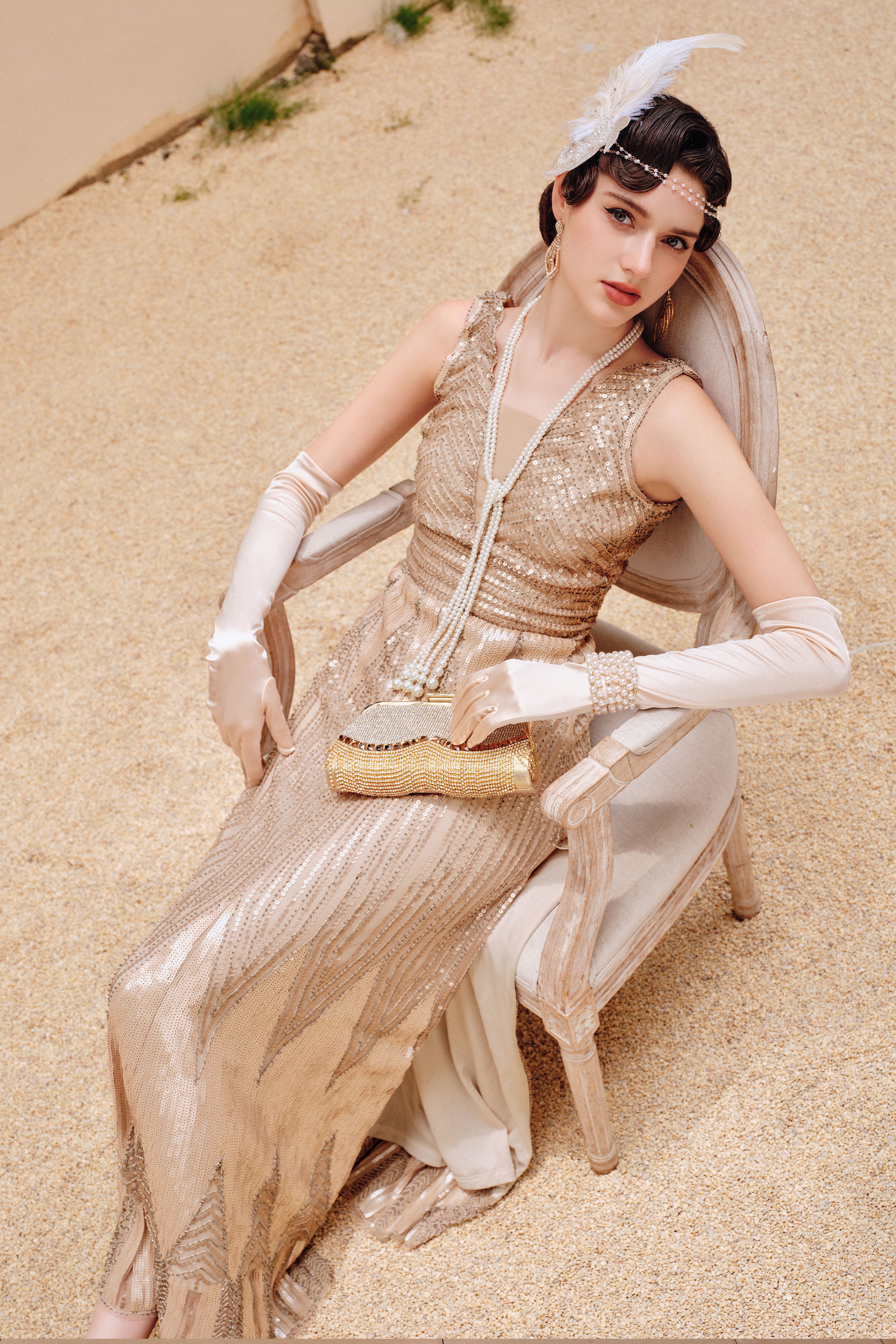 Dazzling Cold-Shoulder Sequin Evening Gown