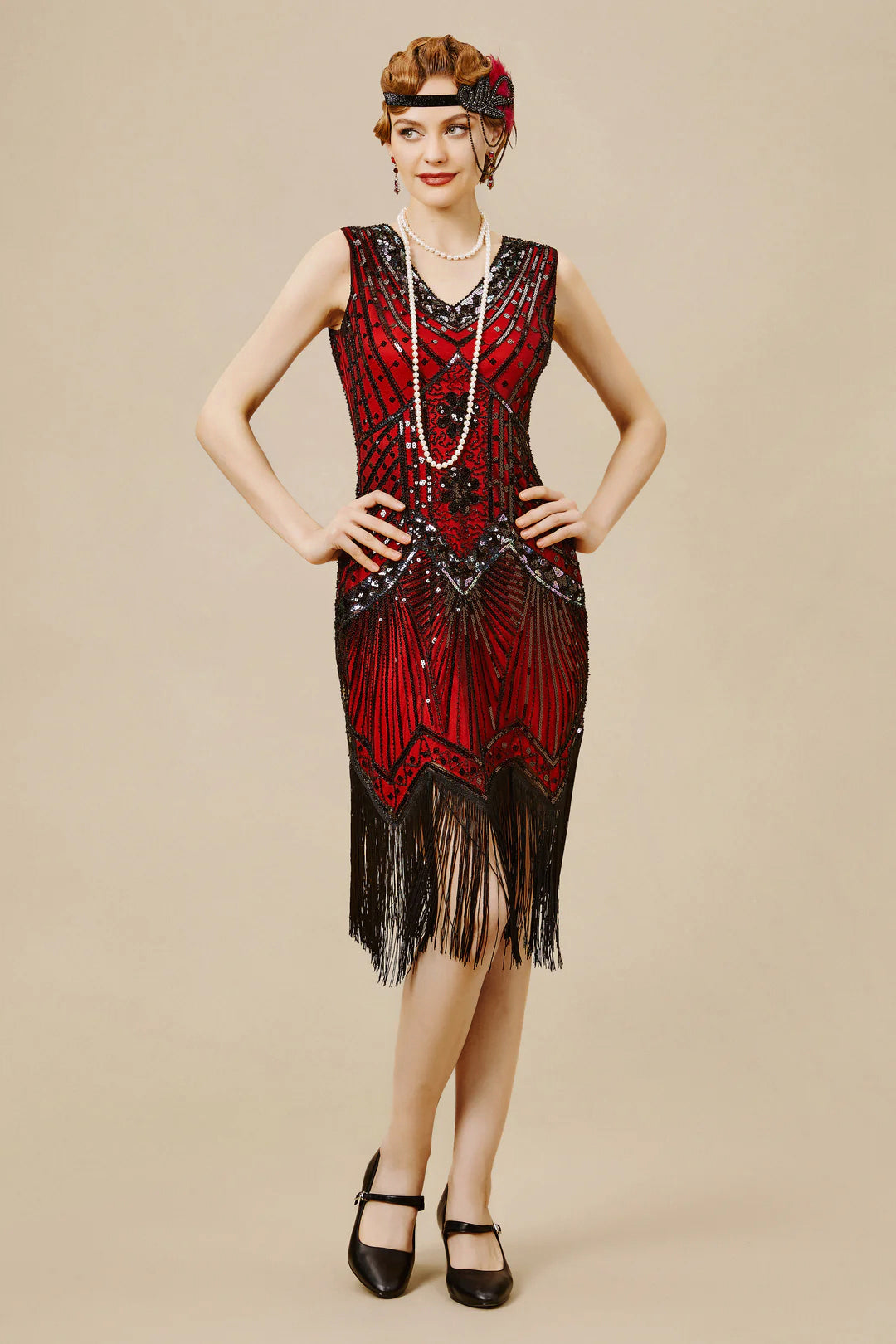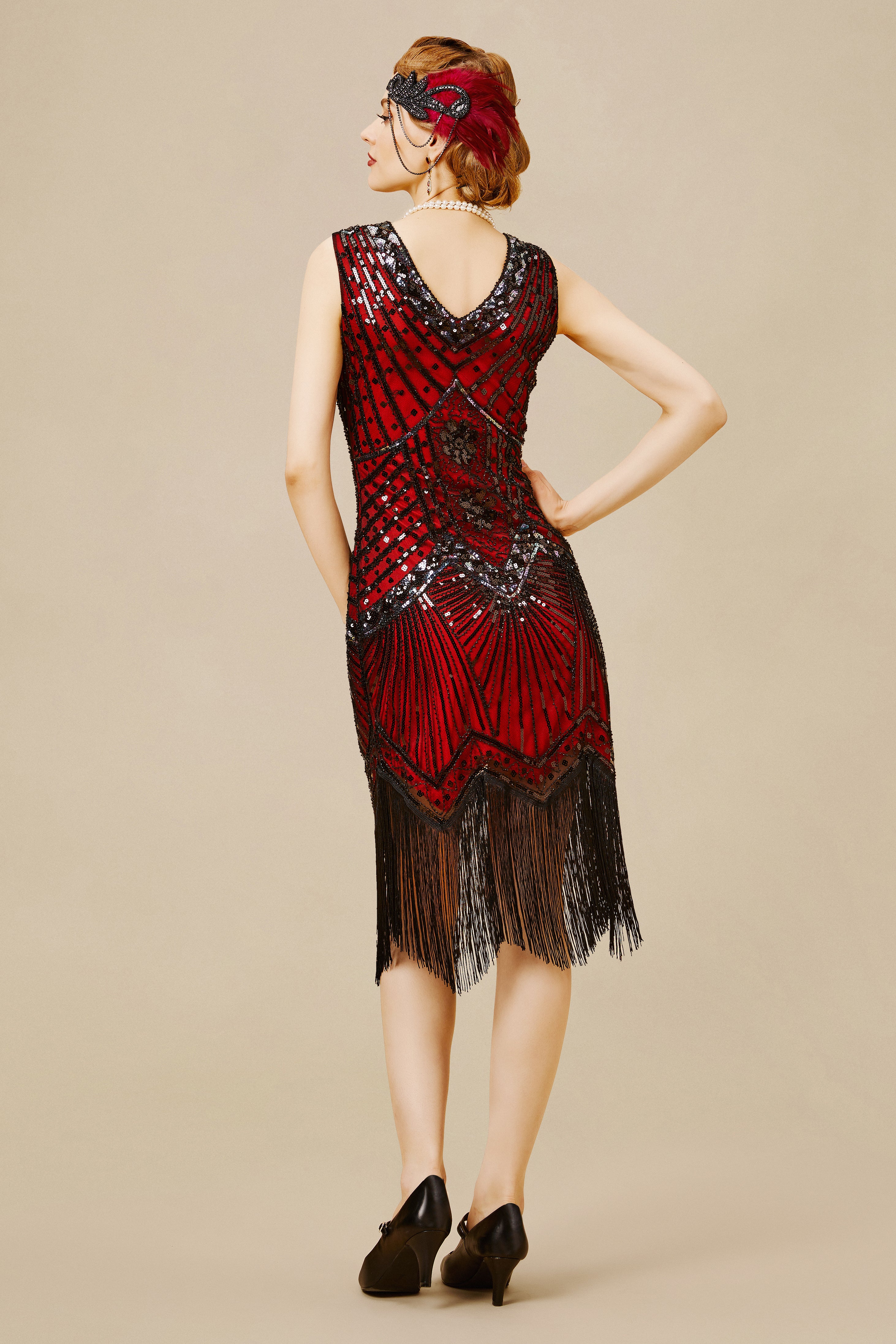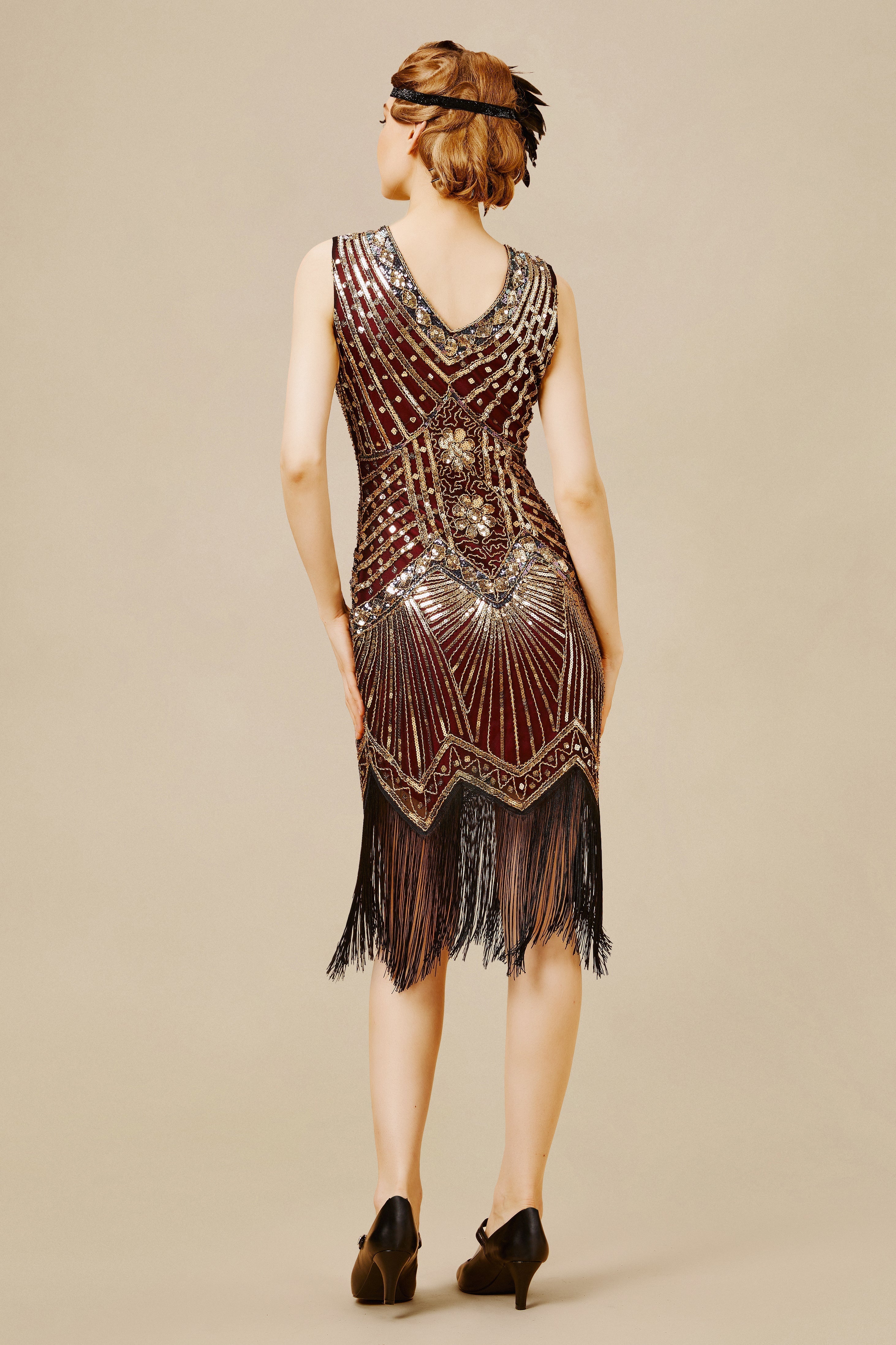This fringed dress is classic vintage look for a modern woman. The eyecatching design features art deco print and unique vintage style which bring you back to the roaring twenties.