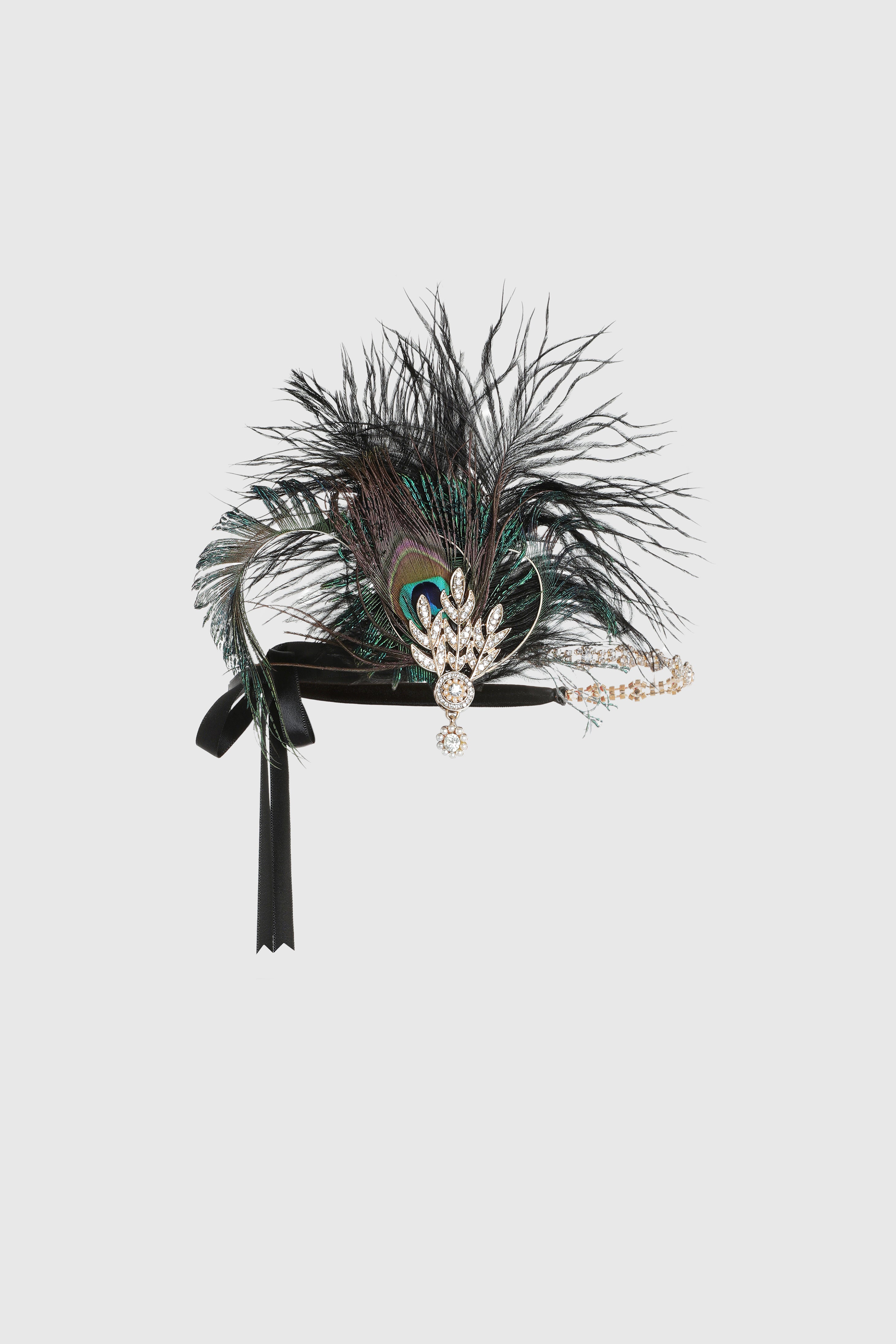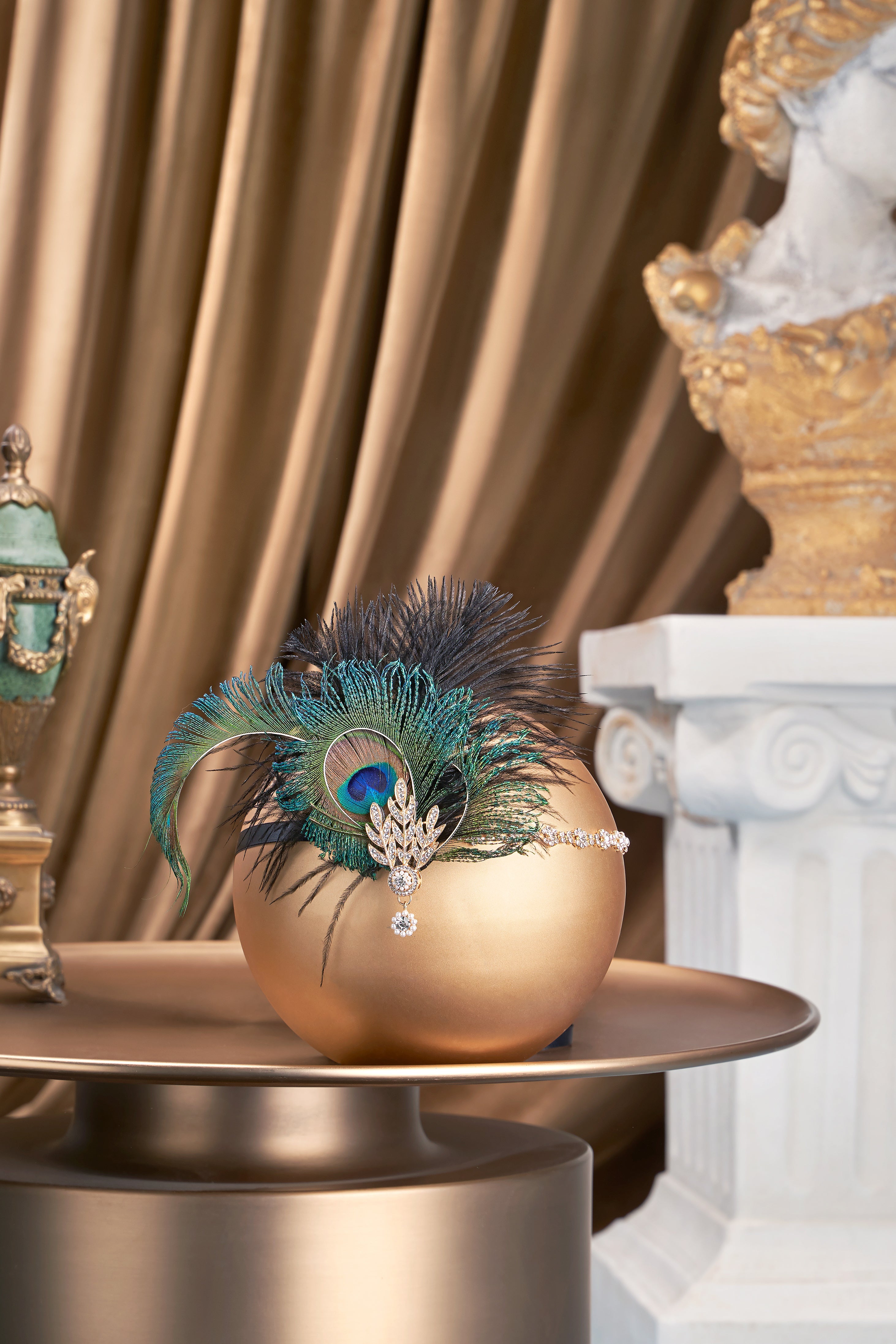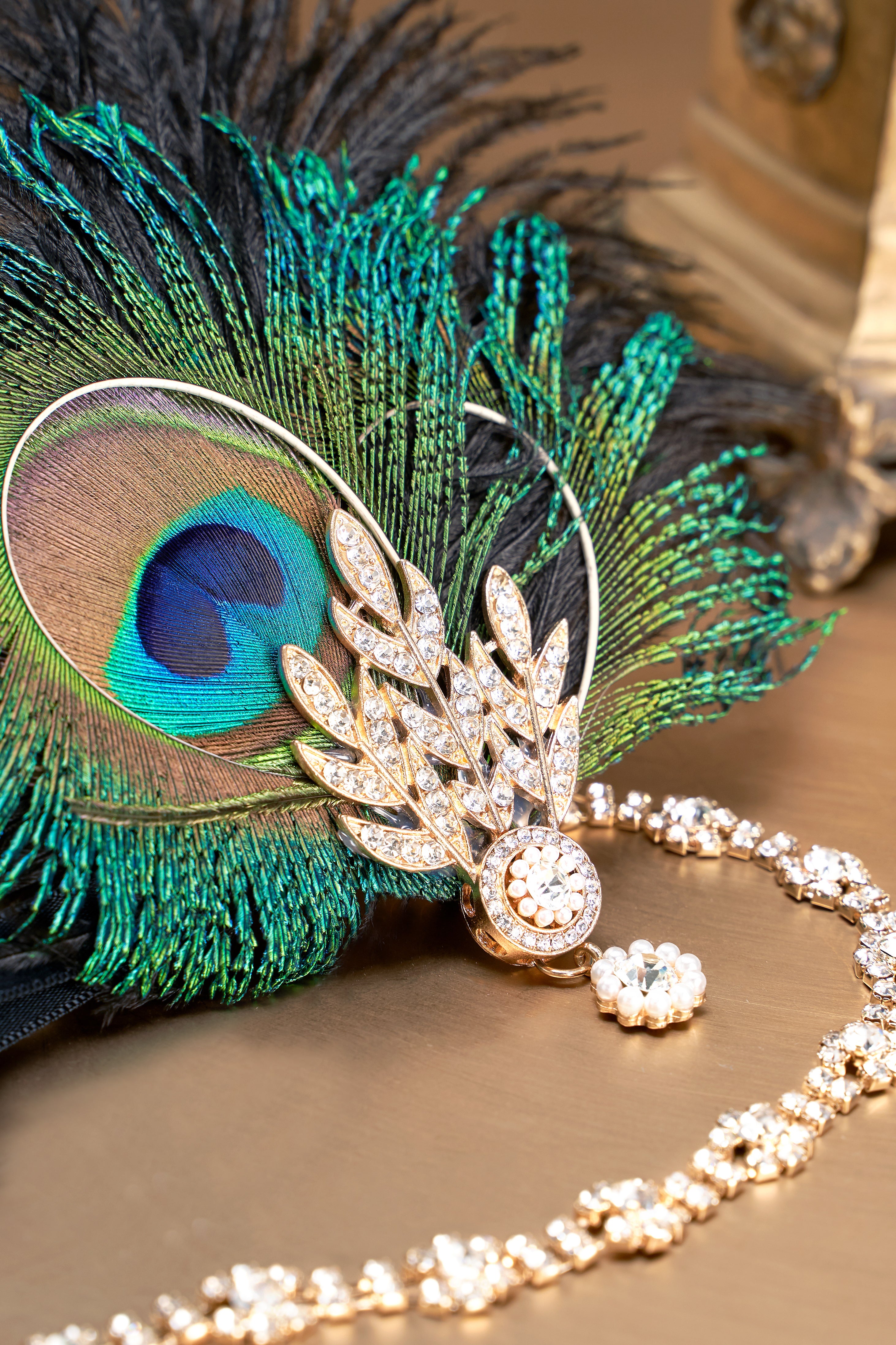 Art Deco Leaf Peacock Feather Headband