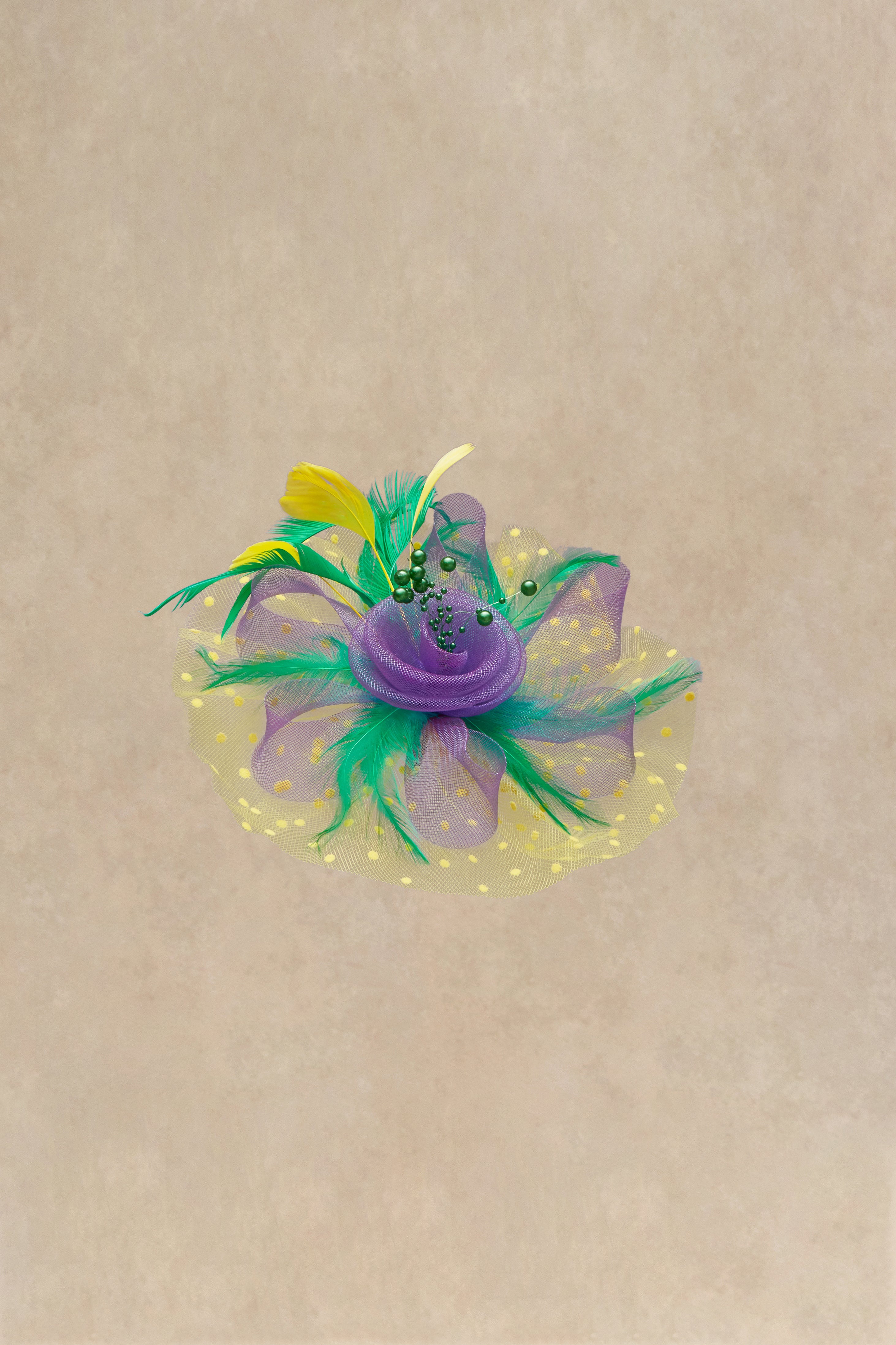 Mesh, feathers and imitation pearls