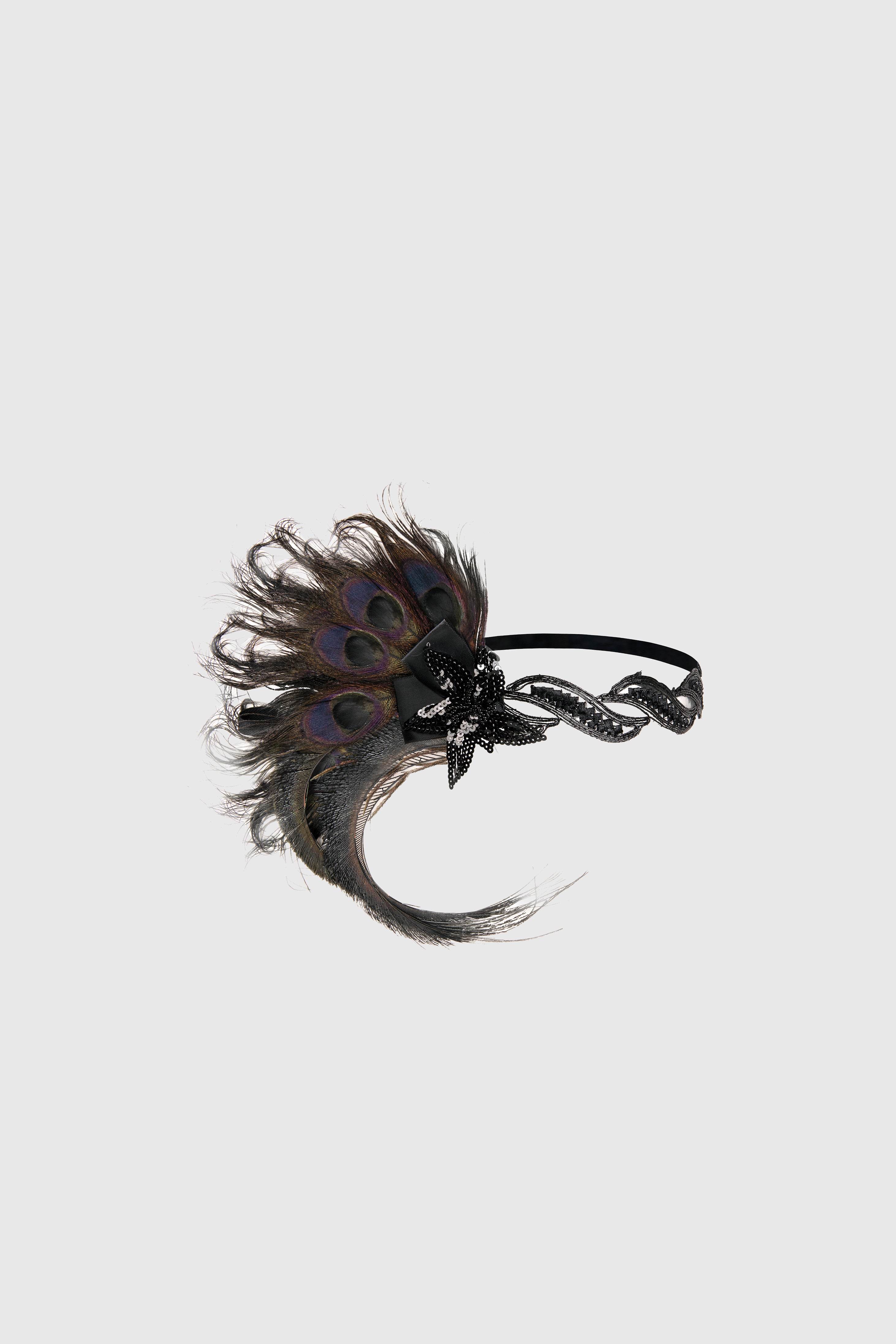 Art Deco Beaded Peacock Feather Headpiece