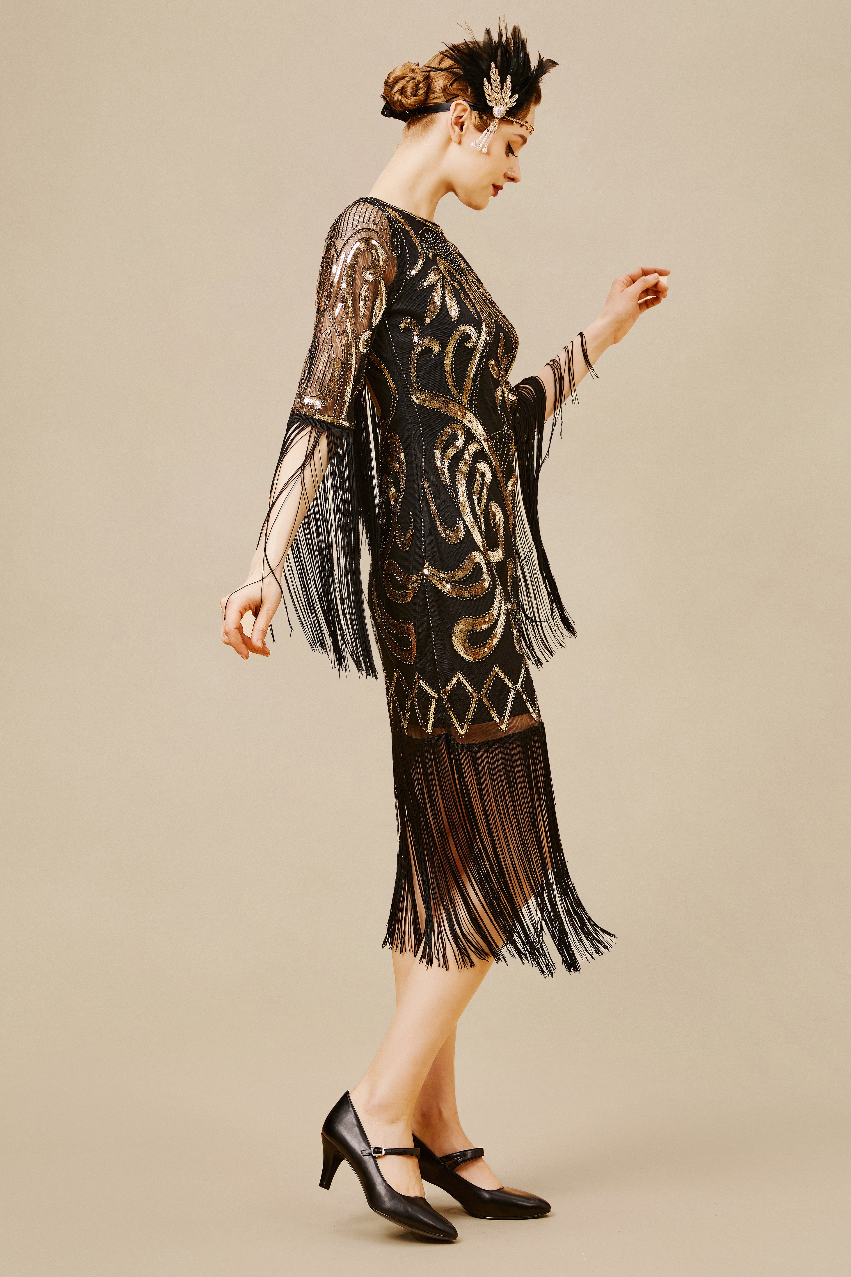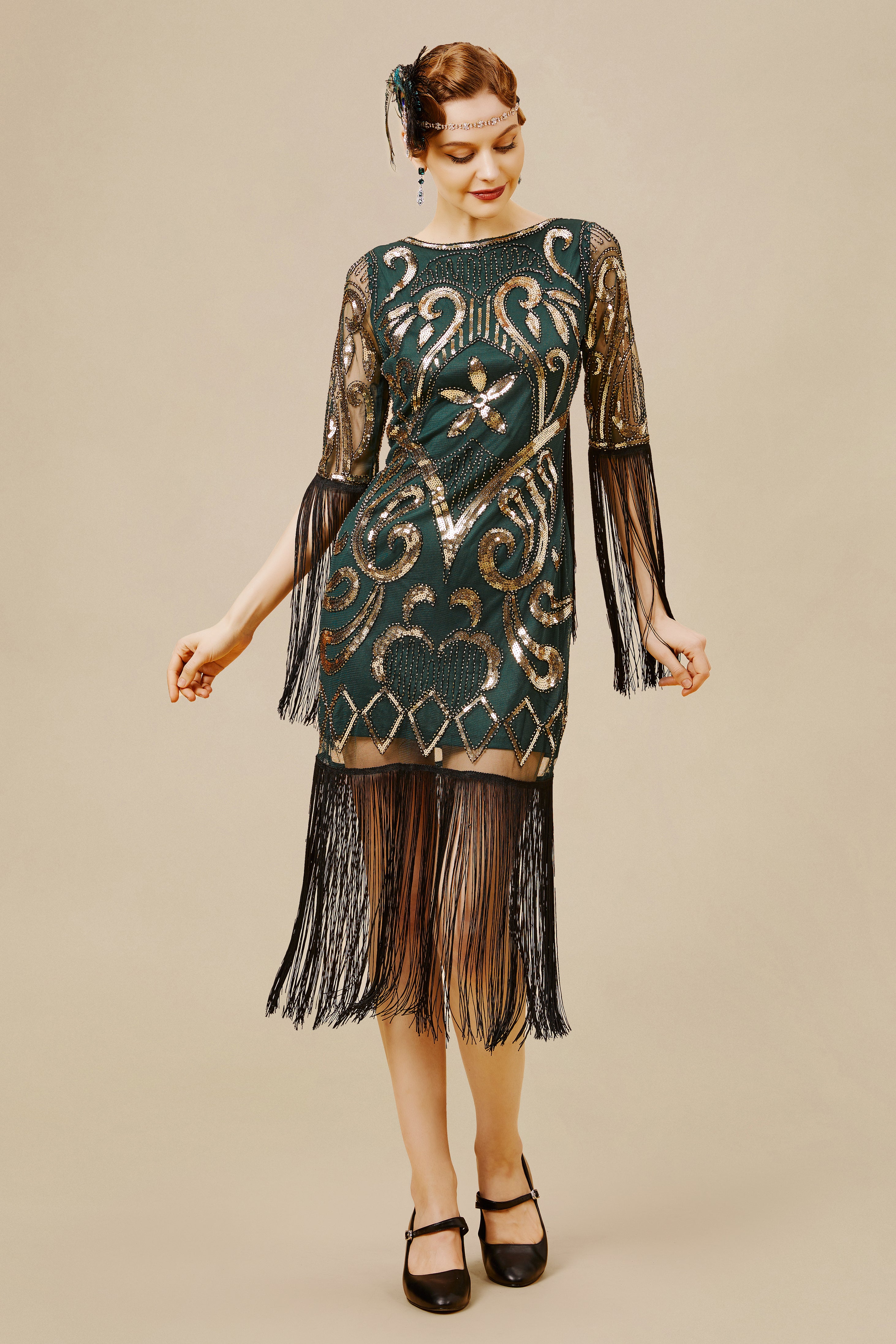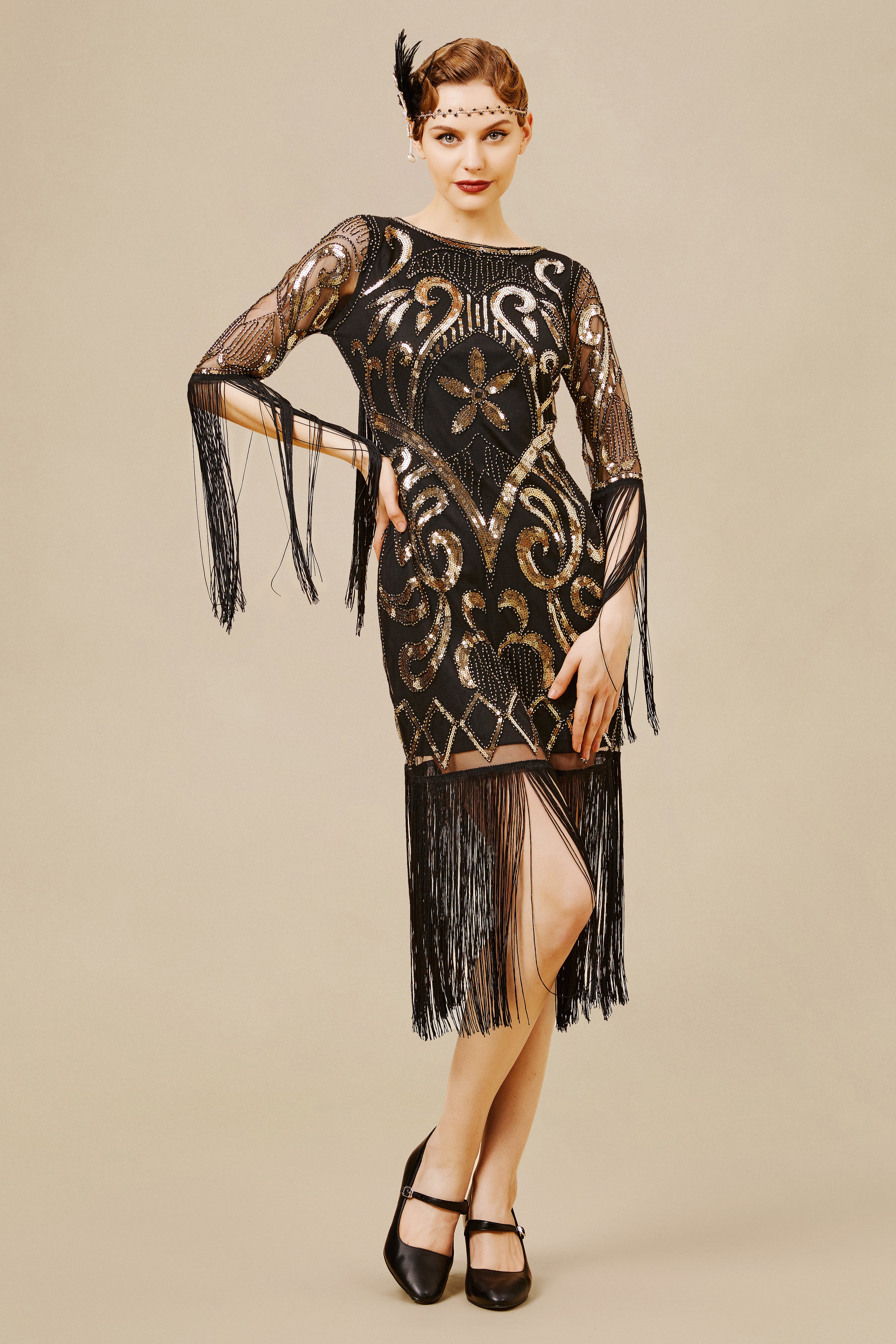 - Long fringed sleeves