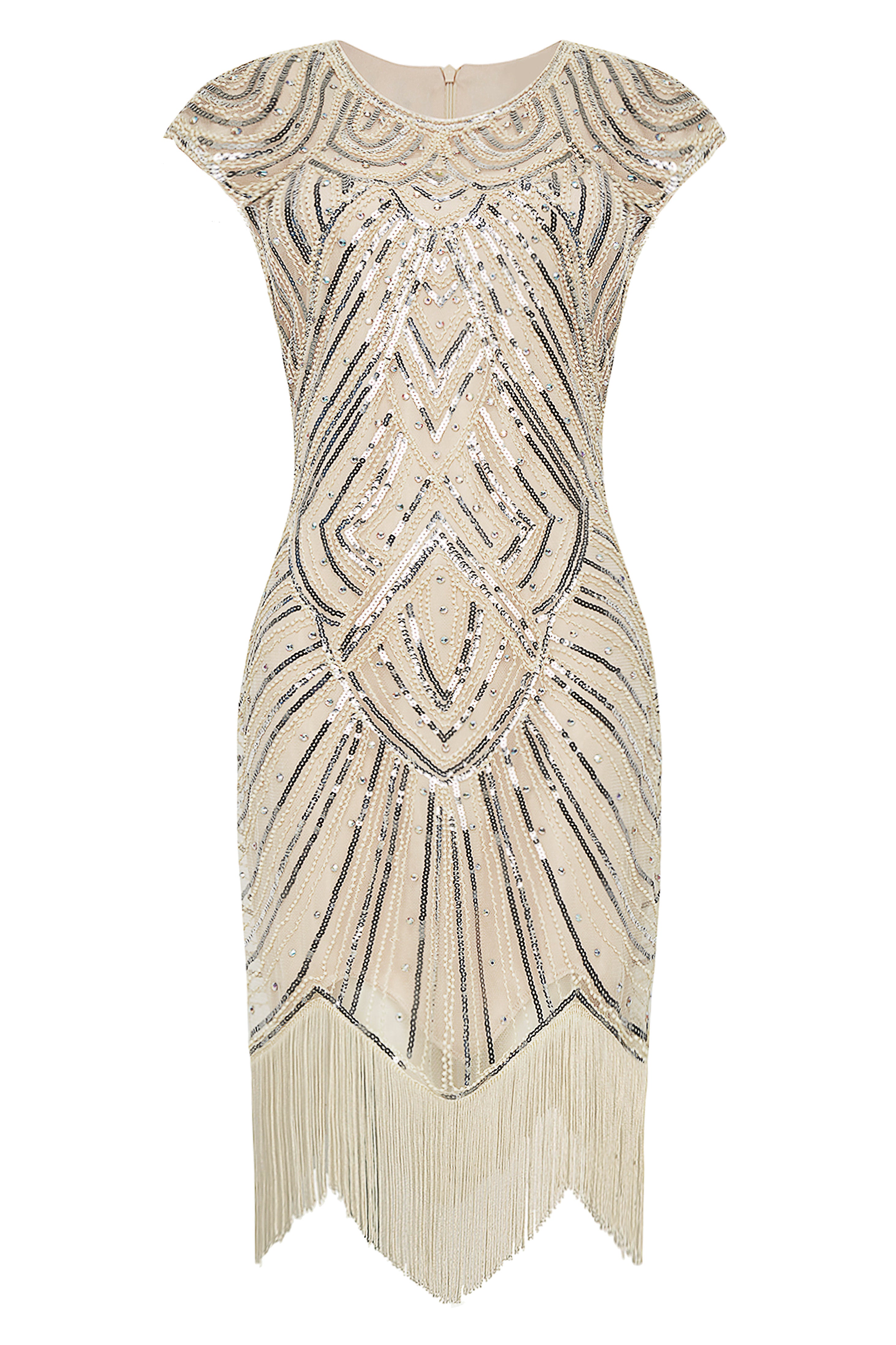 This elegant dress is classic vintage look for a modern woman. The eyecatching design features art deco print and unique vintage style which bring you back to the roaring twenties.