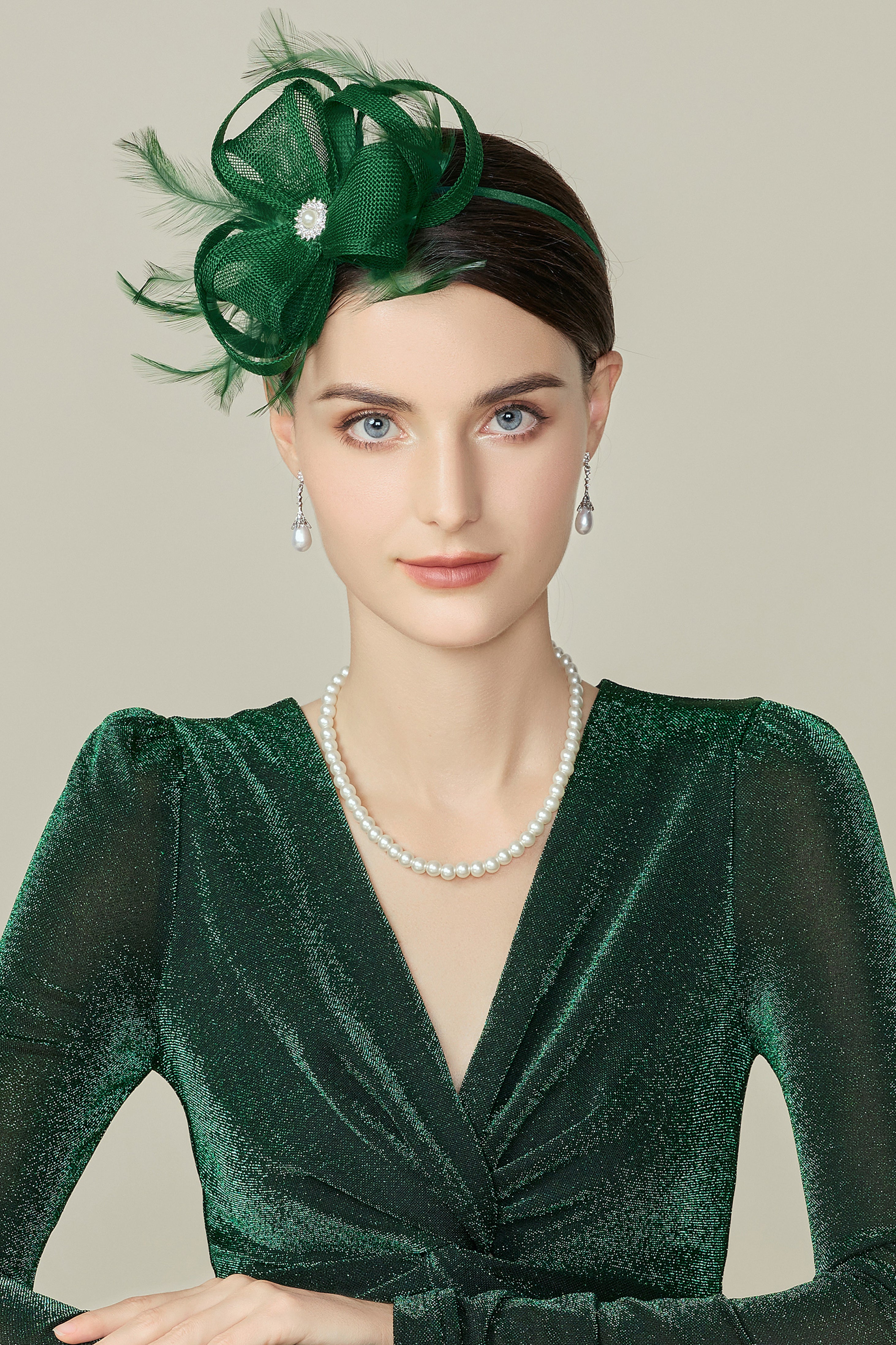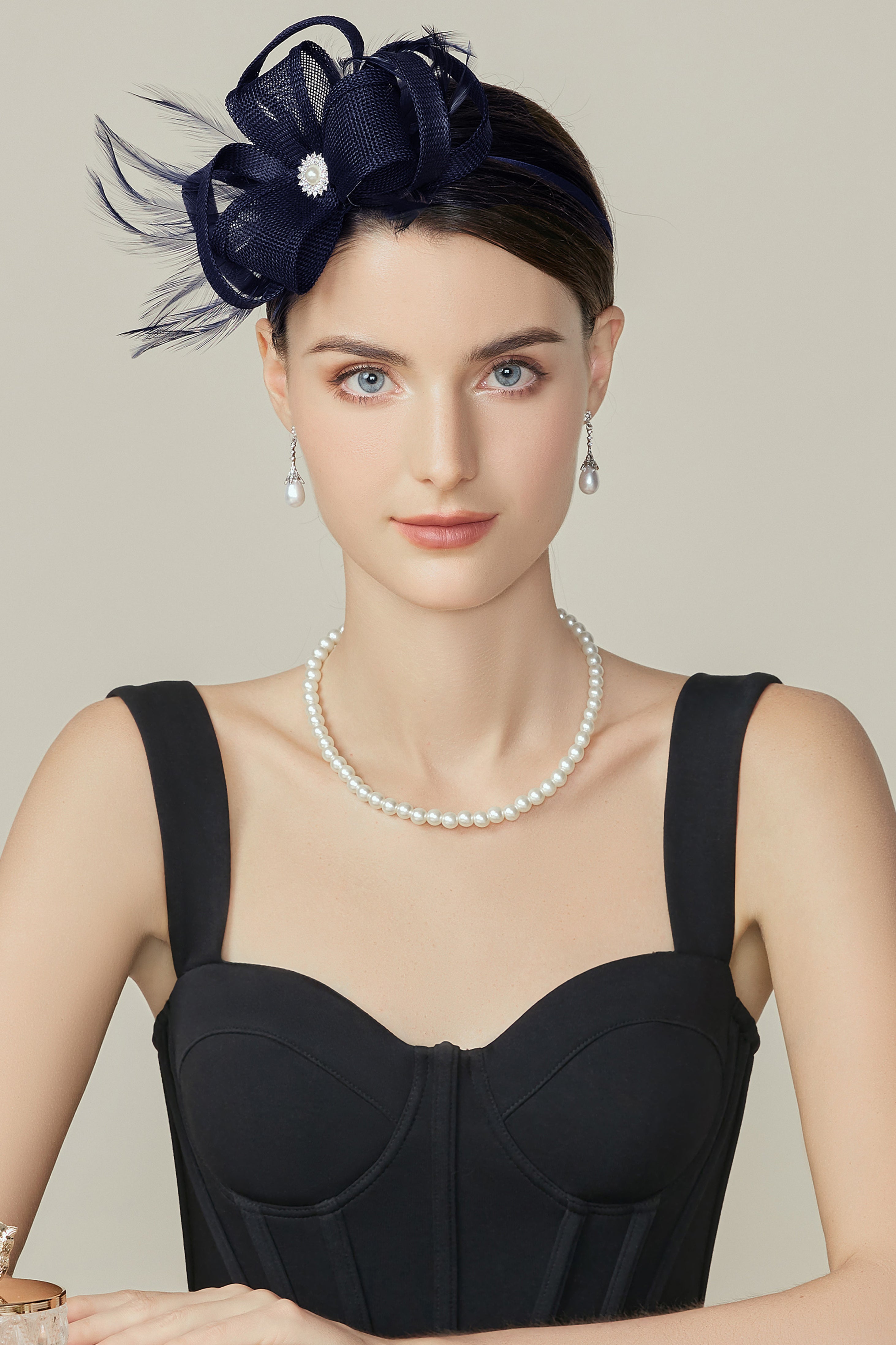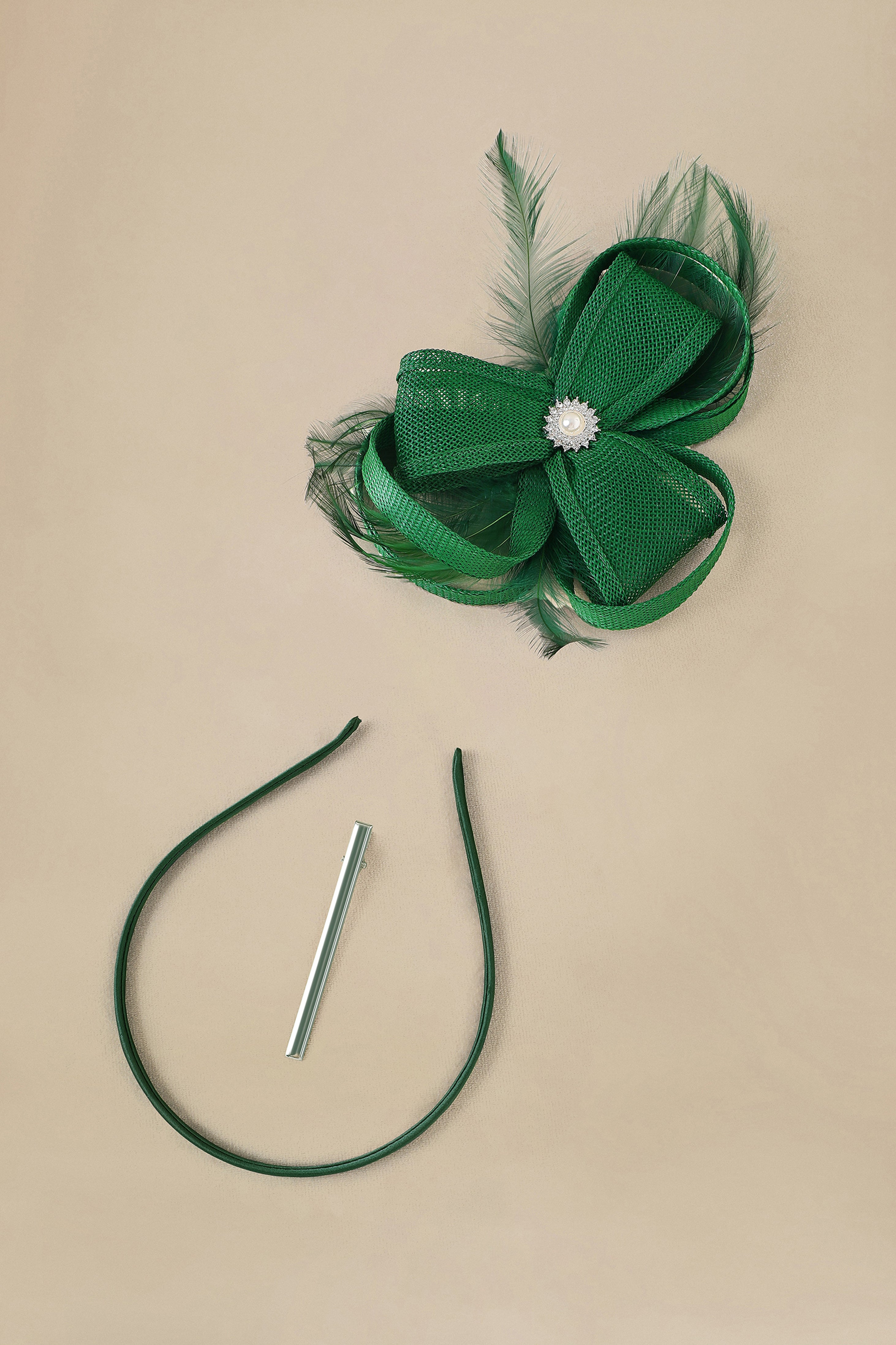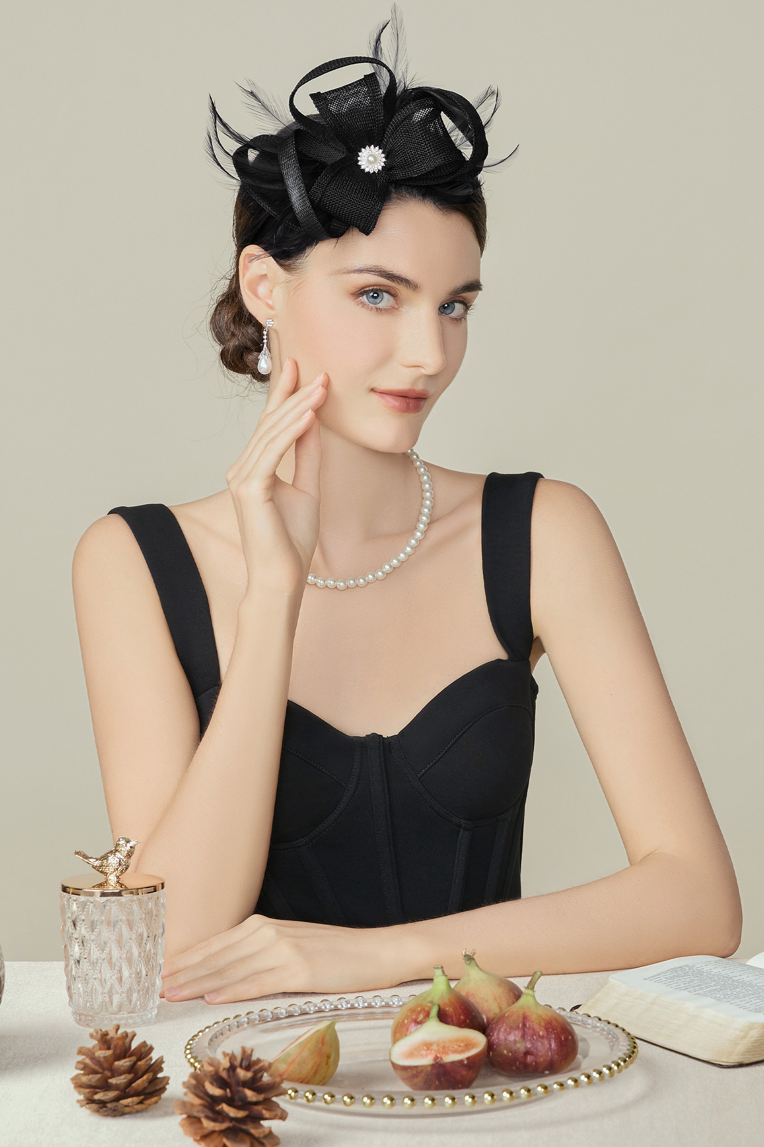 Step into elegance with this chic floral fascinator, combining a romantic ribbon rose, feather accents, and a statement bow.