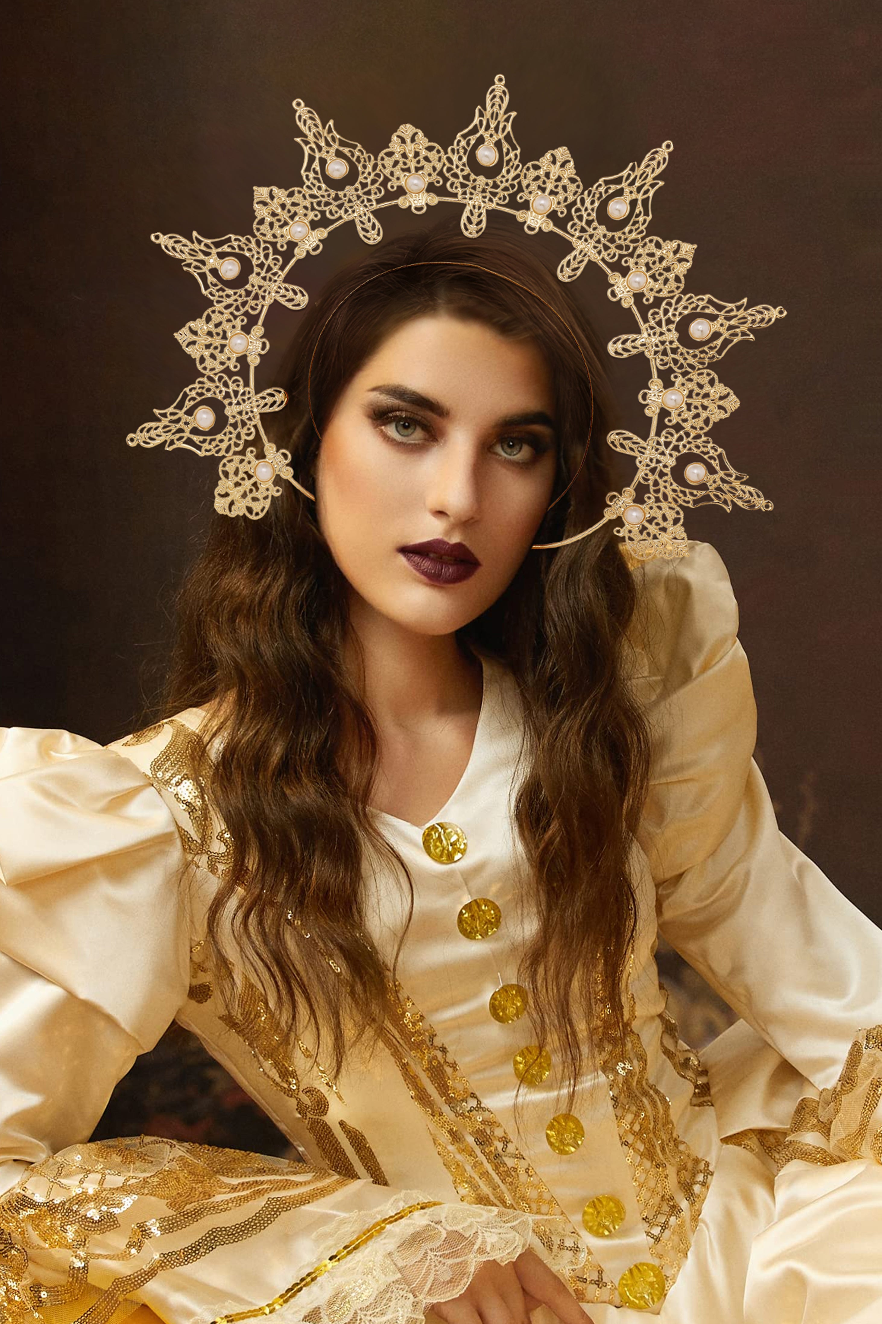 Dazzling and divine, this Mary Halo Crown has extraordinary flair, which will be an optimum embellishment to any gorgeous looks.