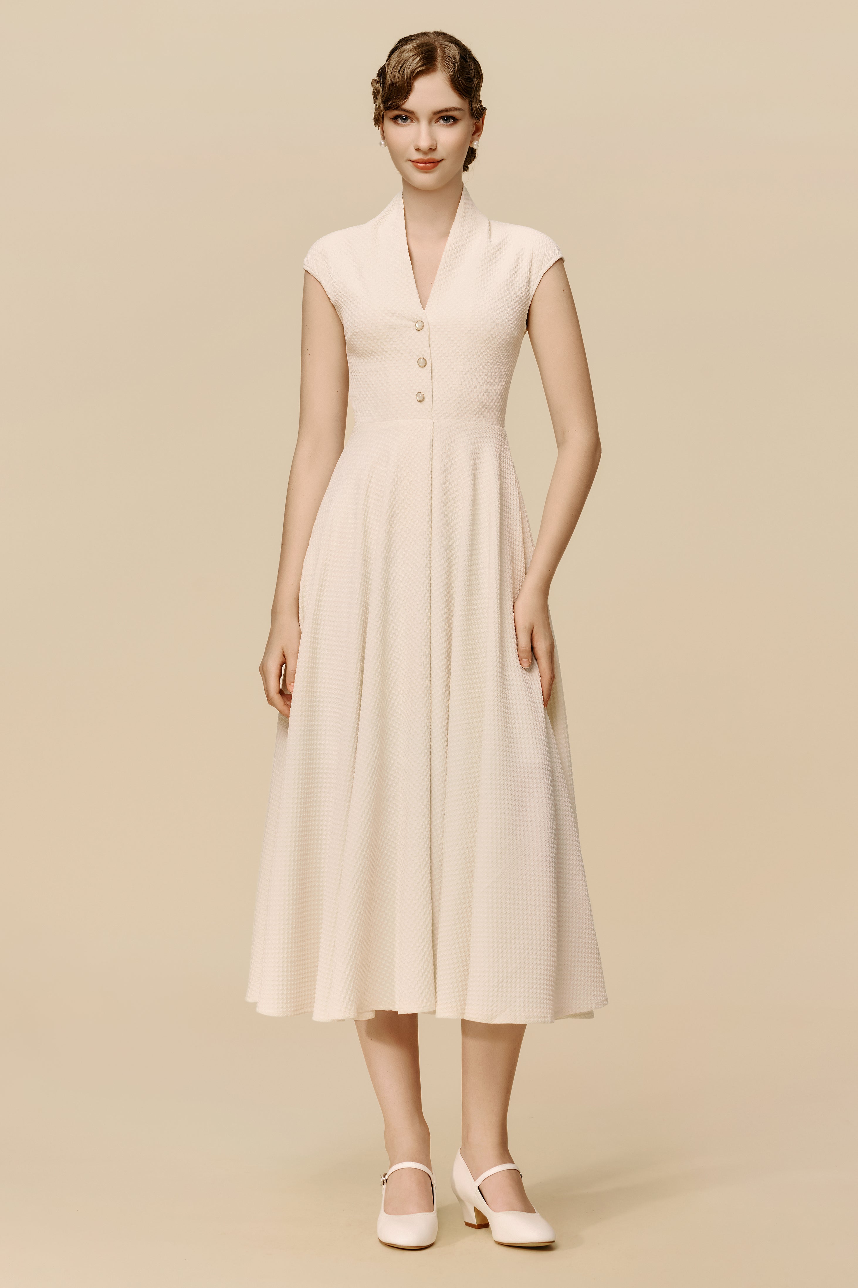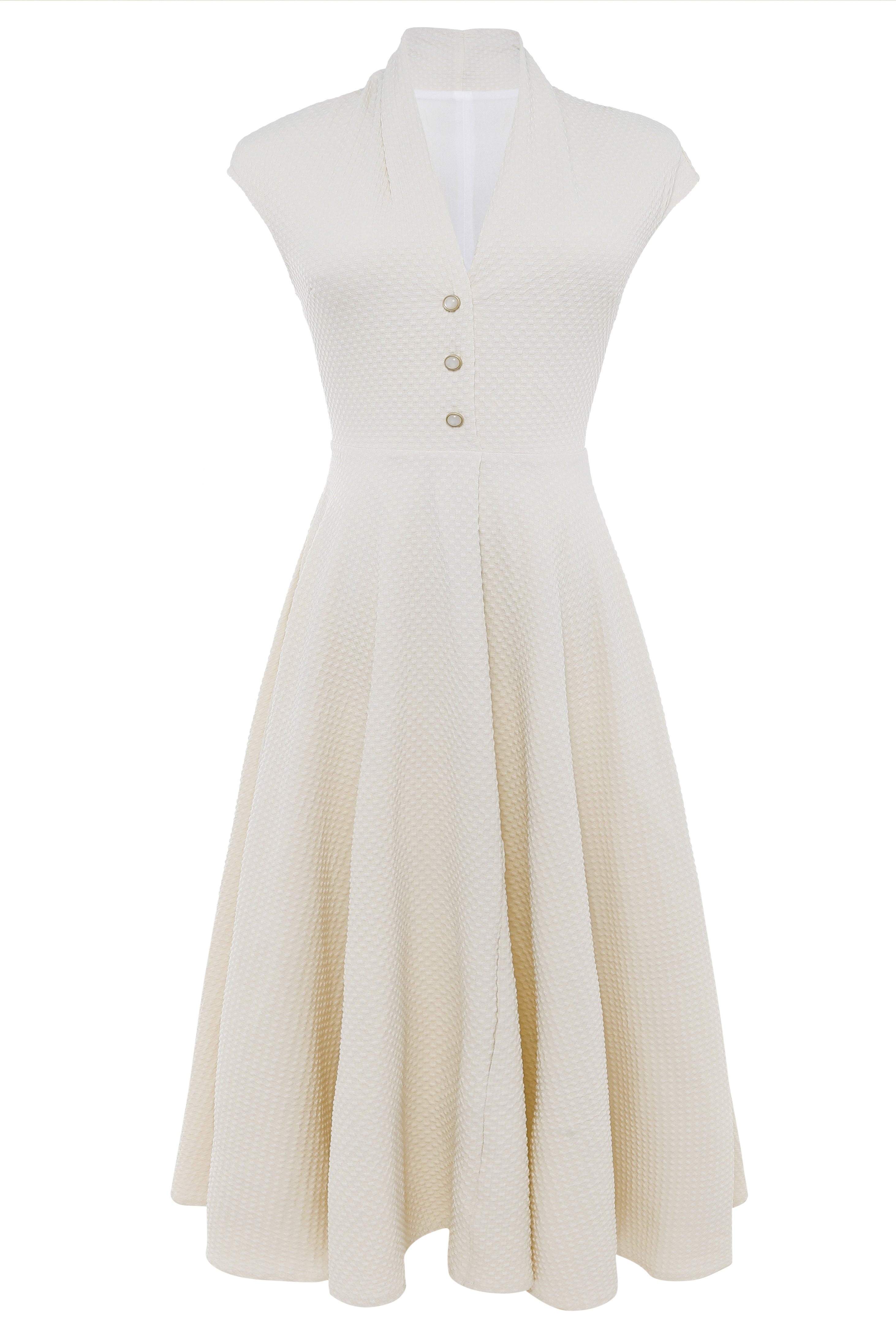 Cap Sleeve Shirtwaist V Neck Dress