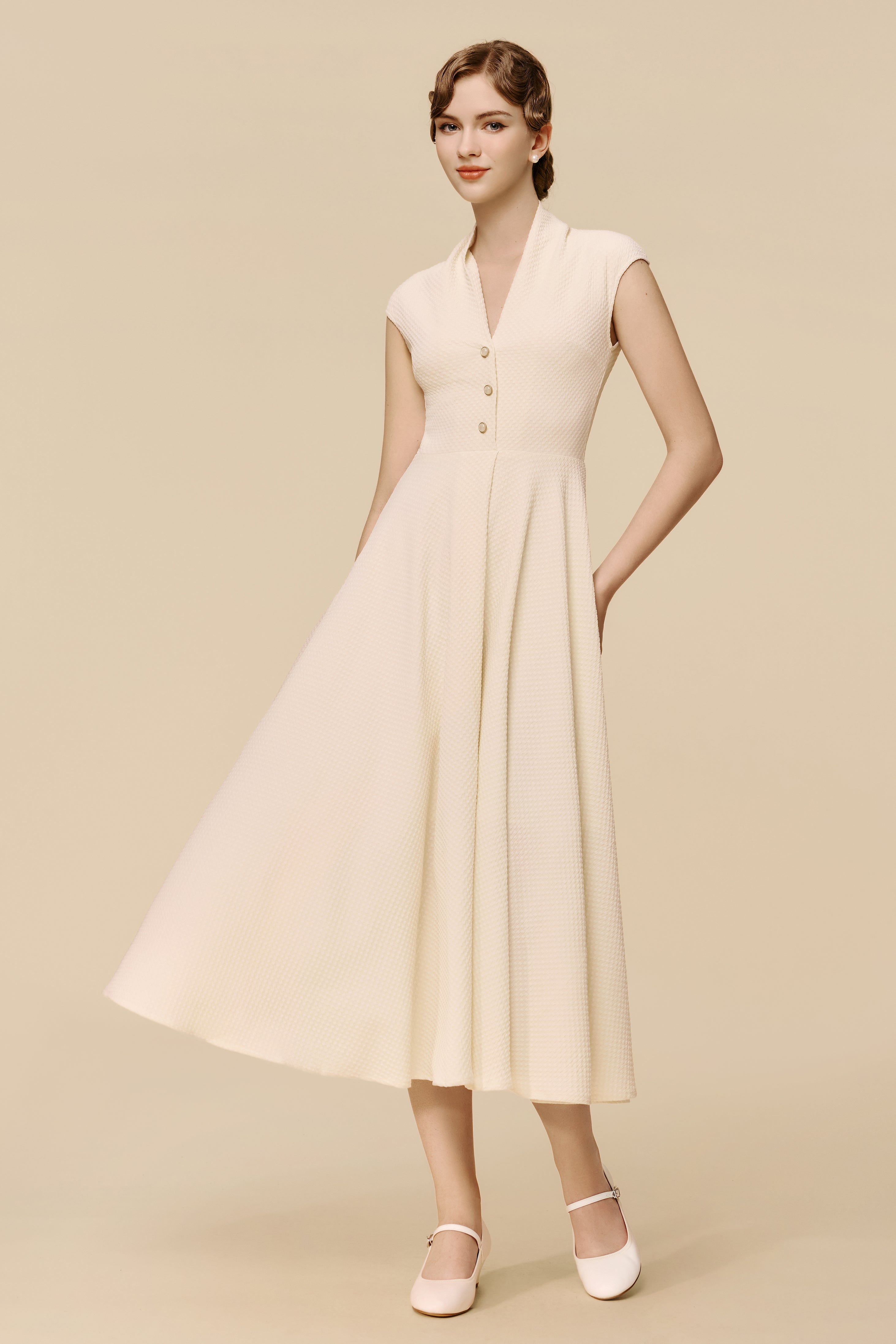 Tea Hour Ripple Pleated Day Dress