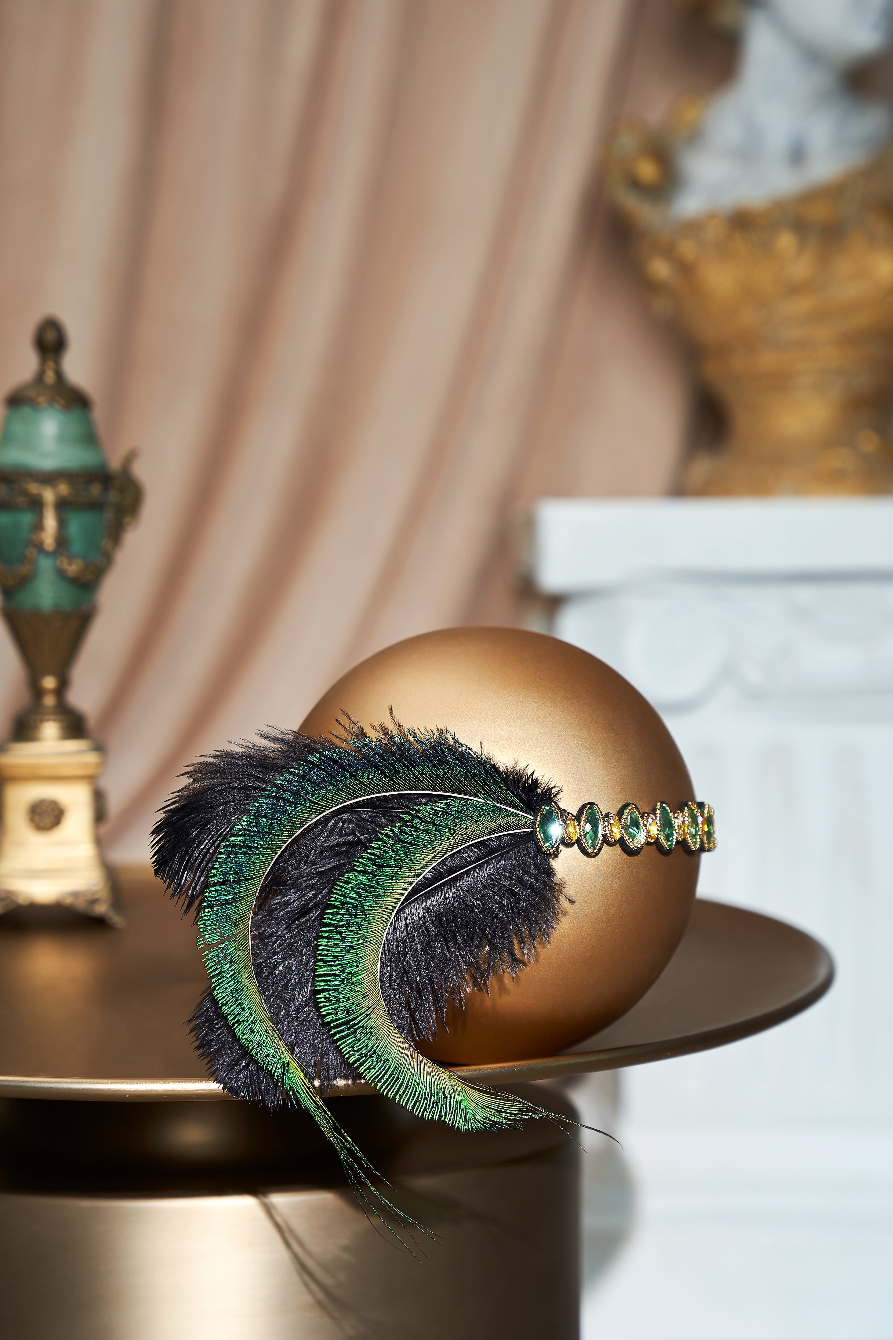 - Gorgeous peacock feather and rhinestone