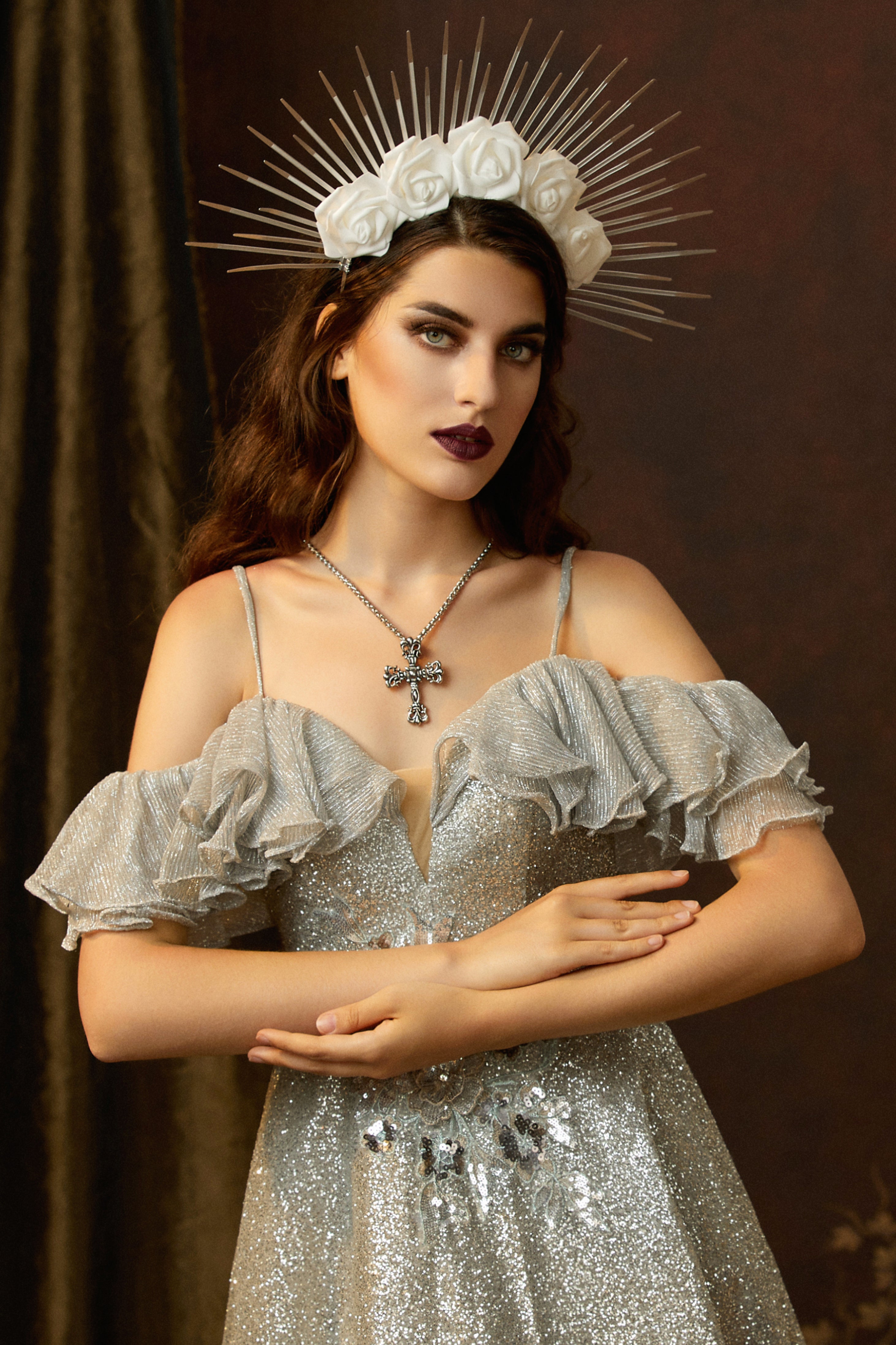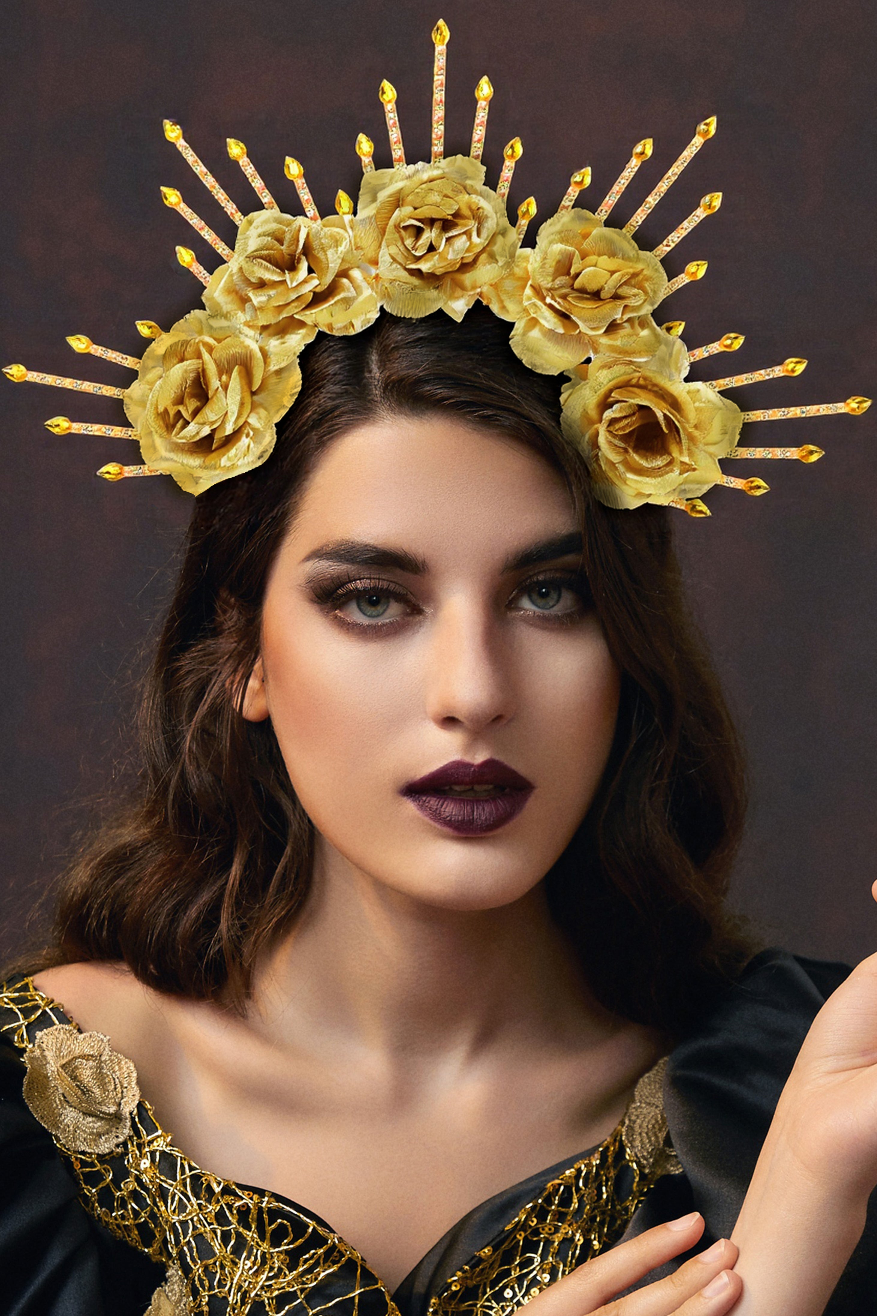 Classy Rose Spiked Sunburst Goddess Halo Crown