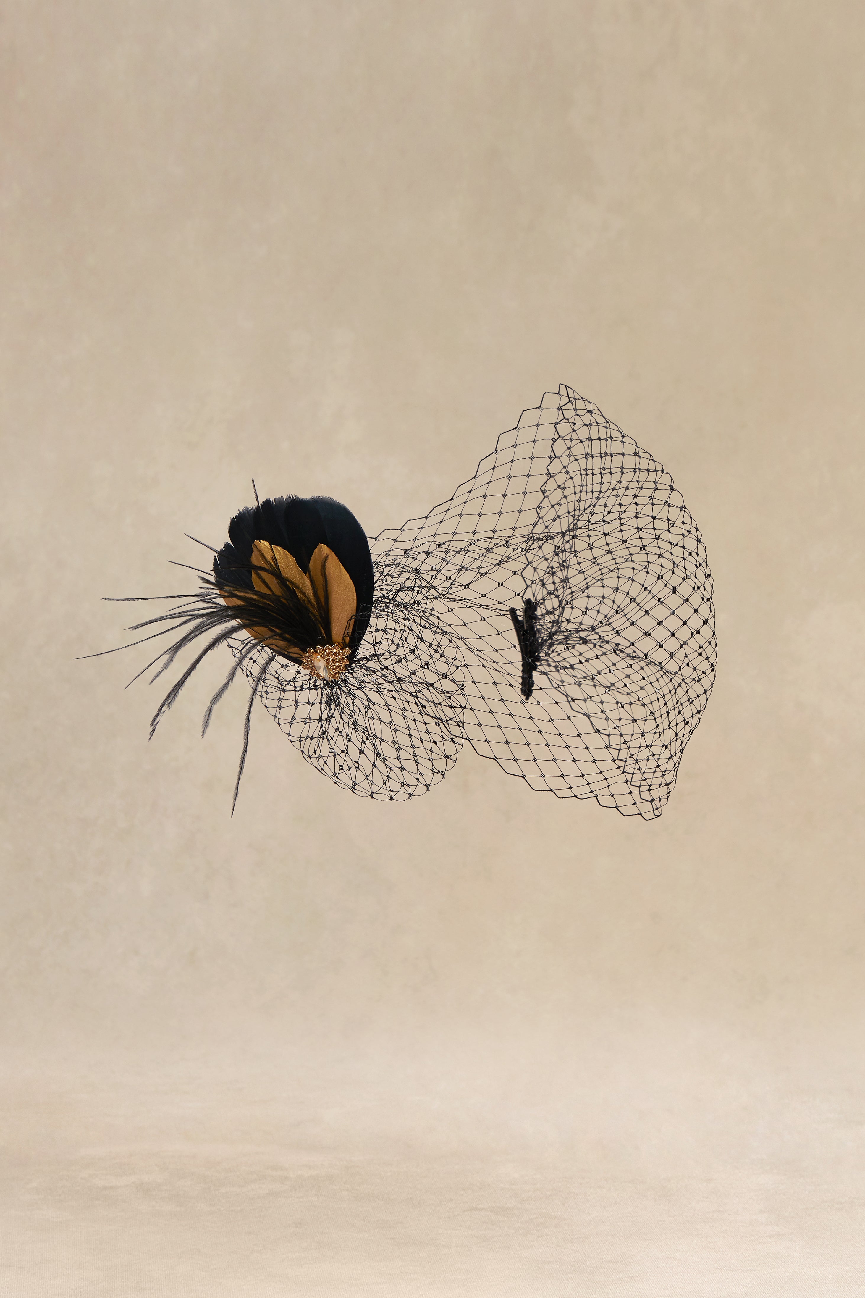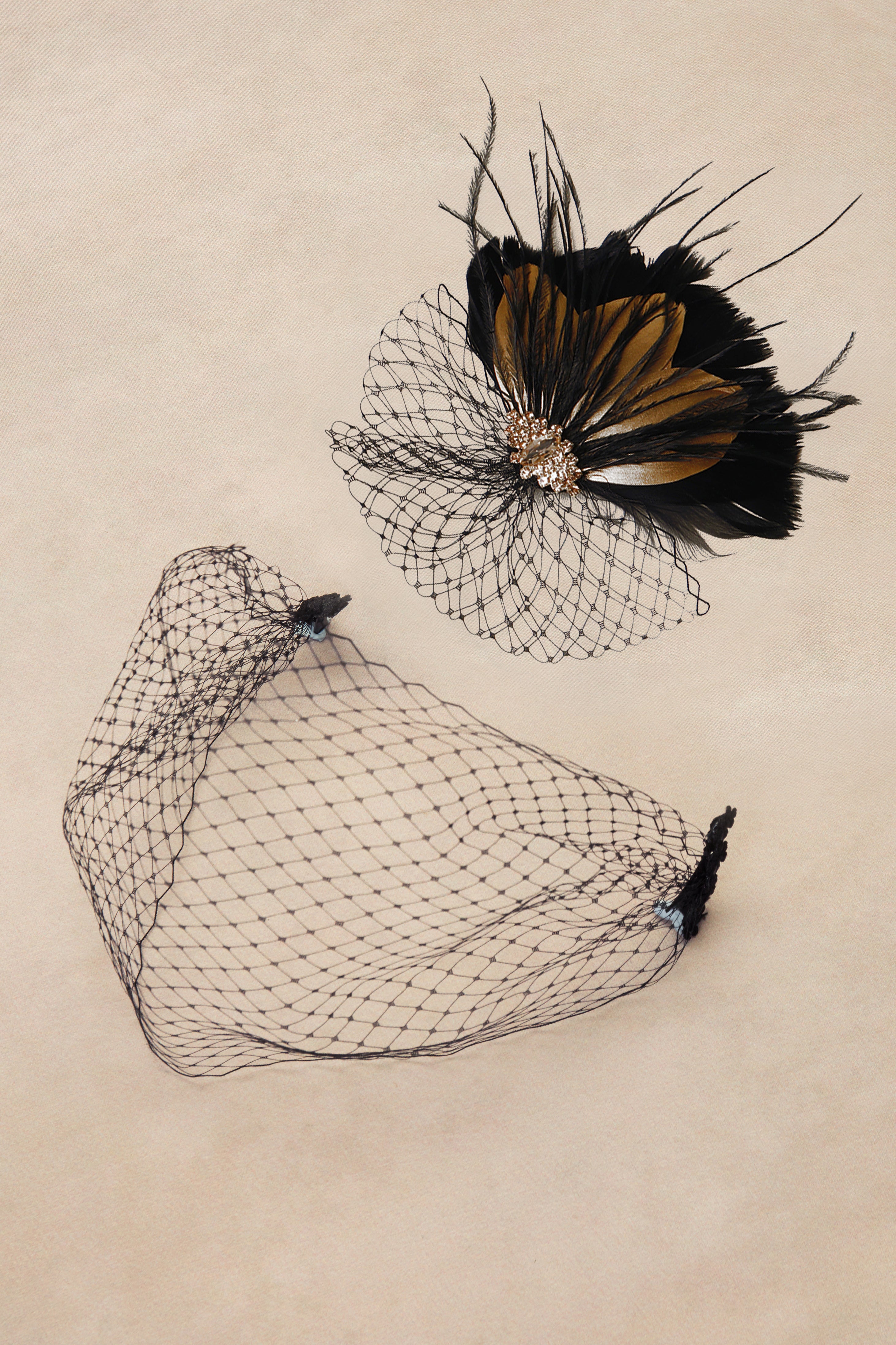 Rhinestone Studded Feather Veil Fascinator