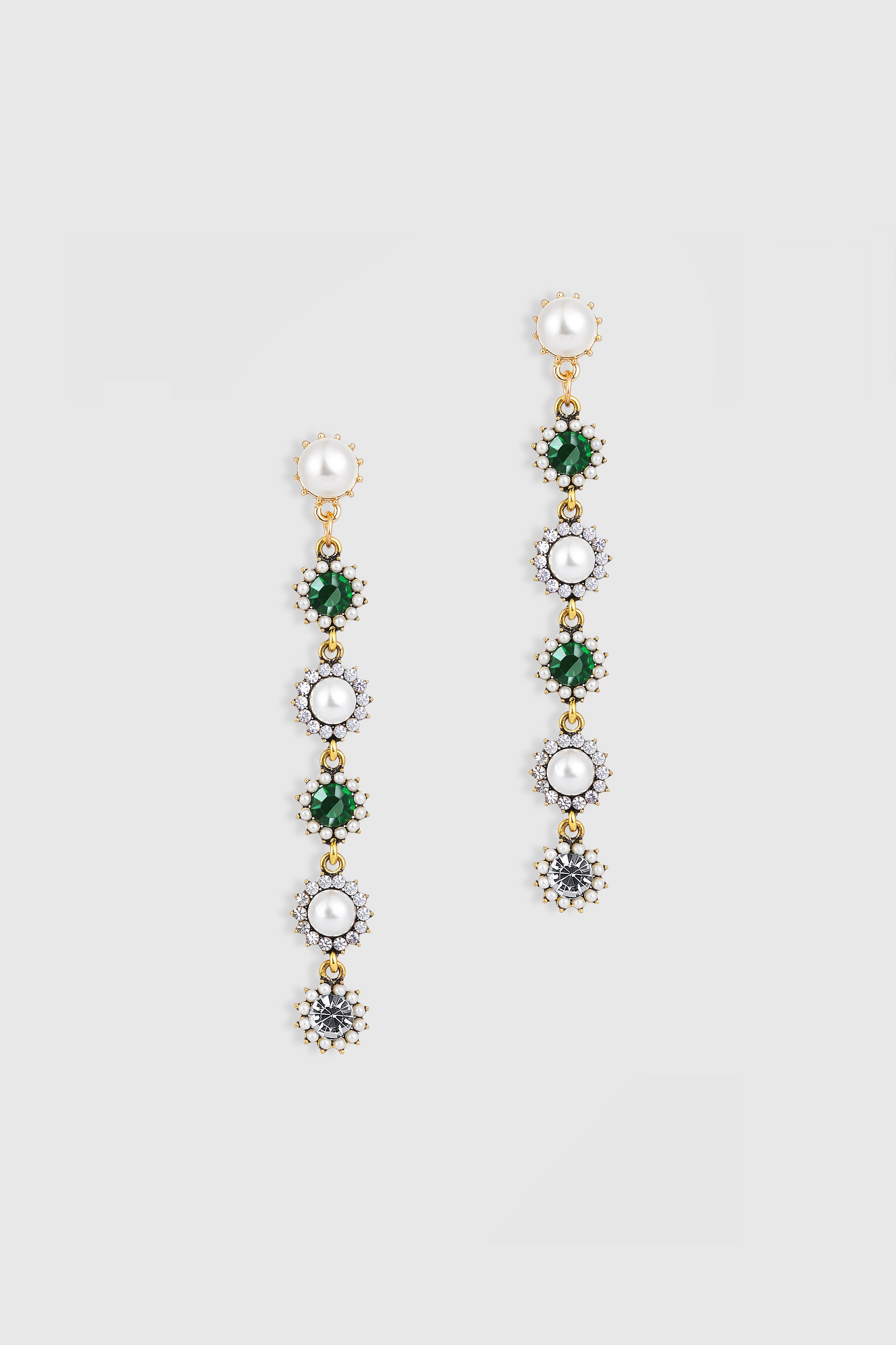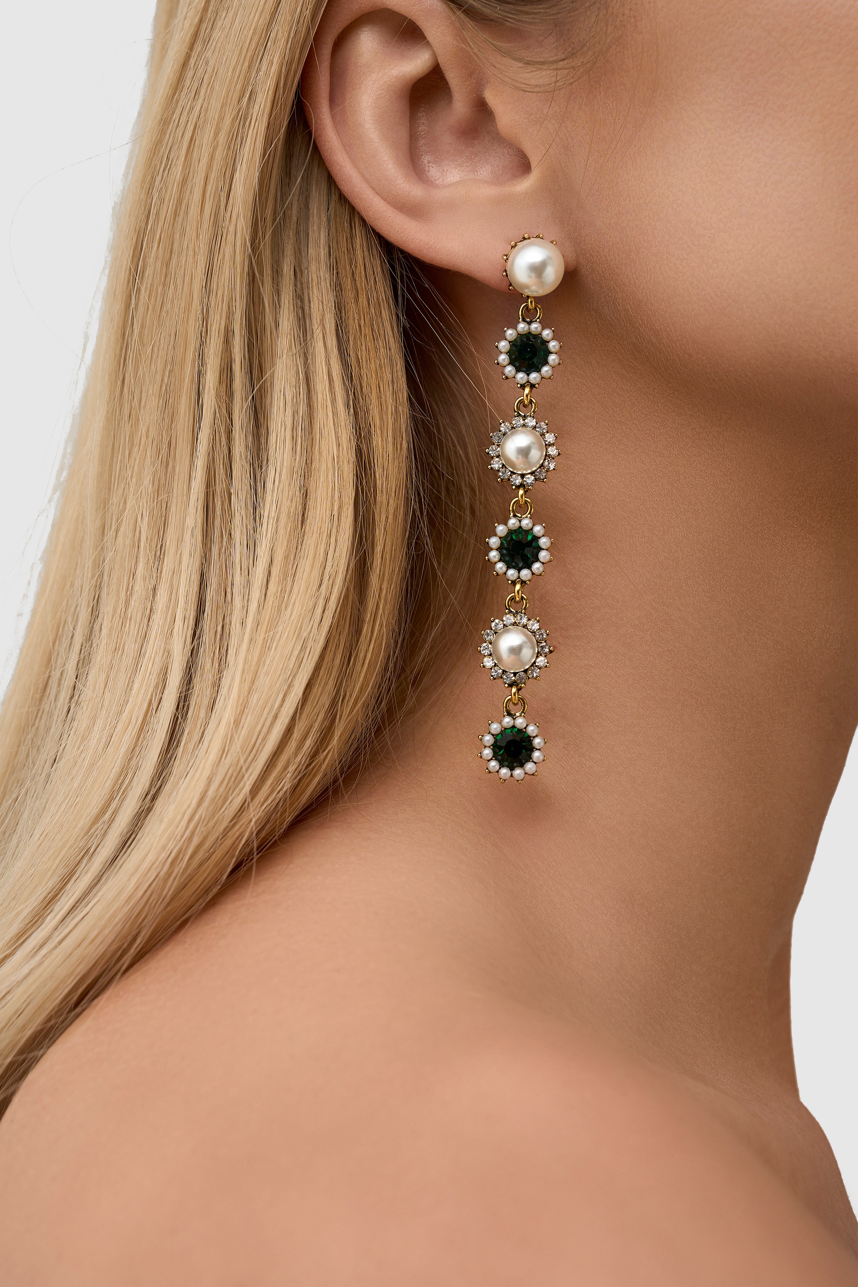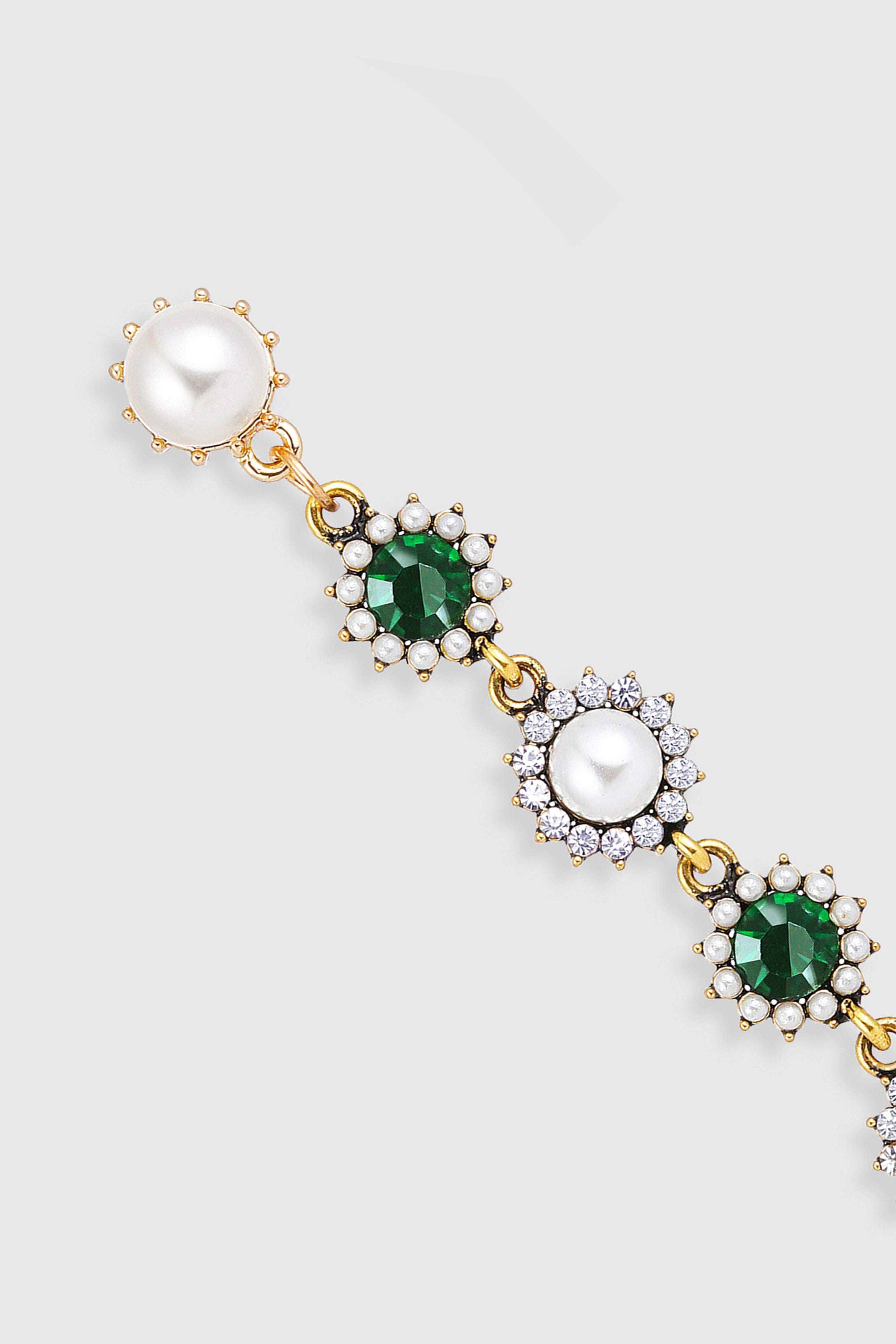 This sumptuous piece of jewelry features a retro-elegant yet slightly modern style that complements the lavish garments, reminiscent of the roaring 1920s.