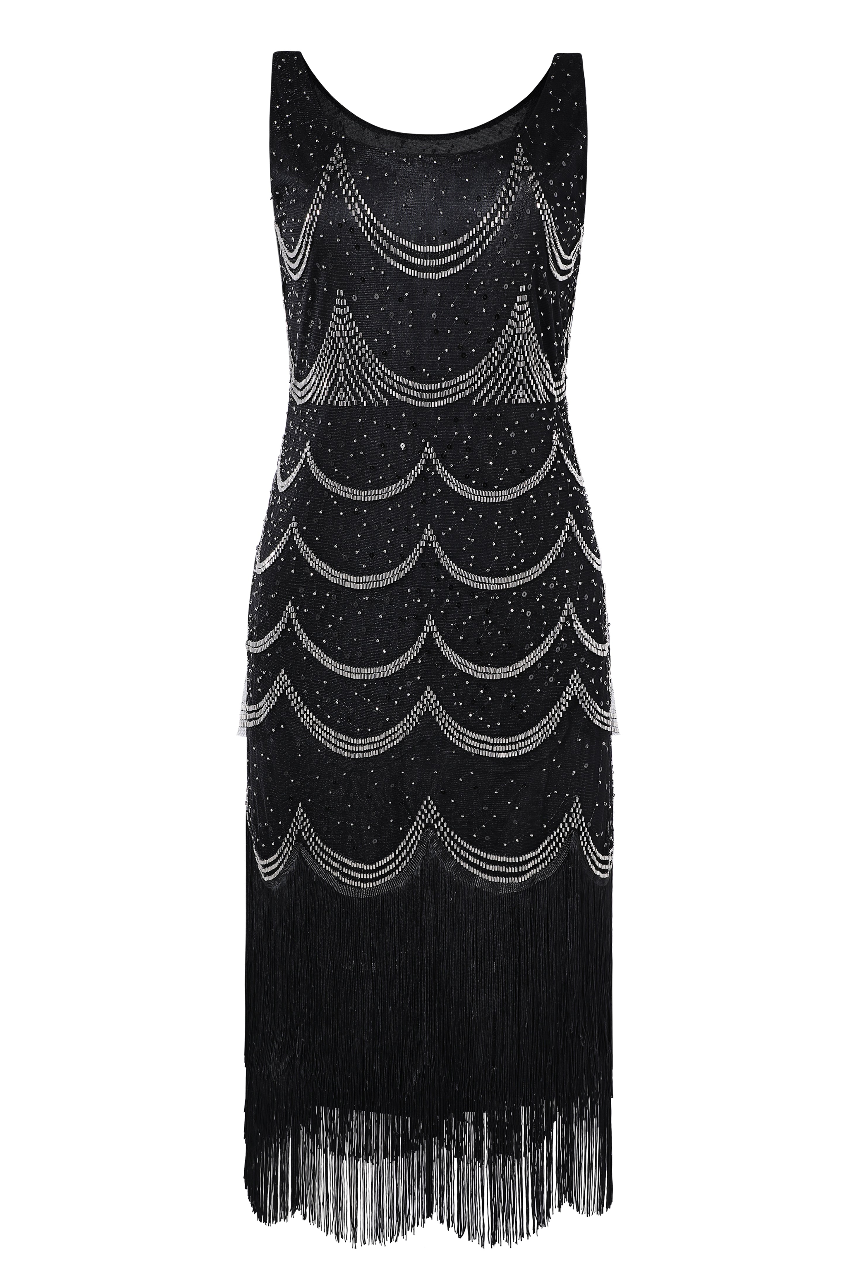 Picture yourself at a glamorous Gatsby-inspired soiree, the air filled with excitement and jazz melodies. The dress's U-shaped neckline exudes sophistication, while its H-line silhouette ensures comfort and style as you dance the night away. The geometric patterns infuse a contemporary flair into this timeless design, ensuring it stands out elegantly for those with a passion for vintage fashion.