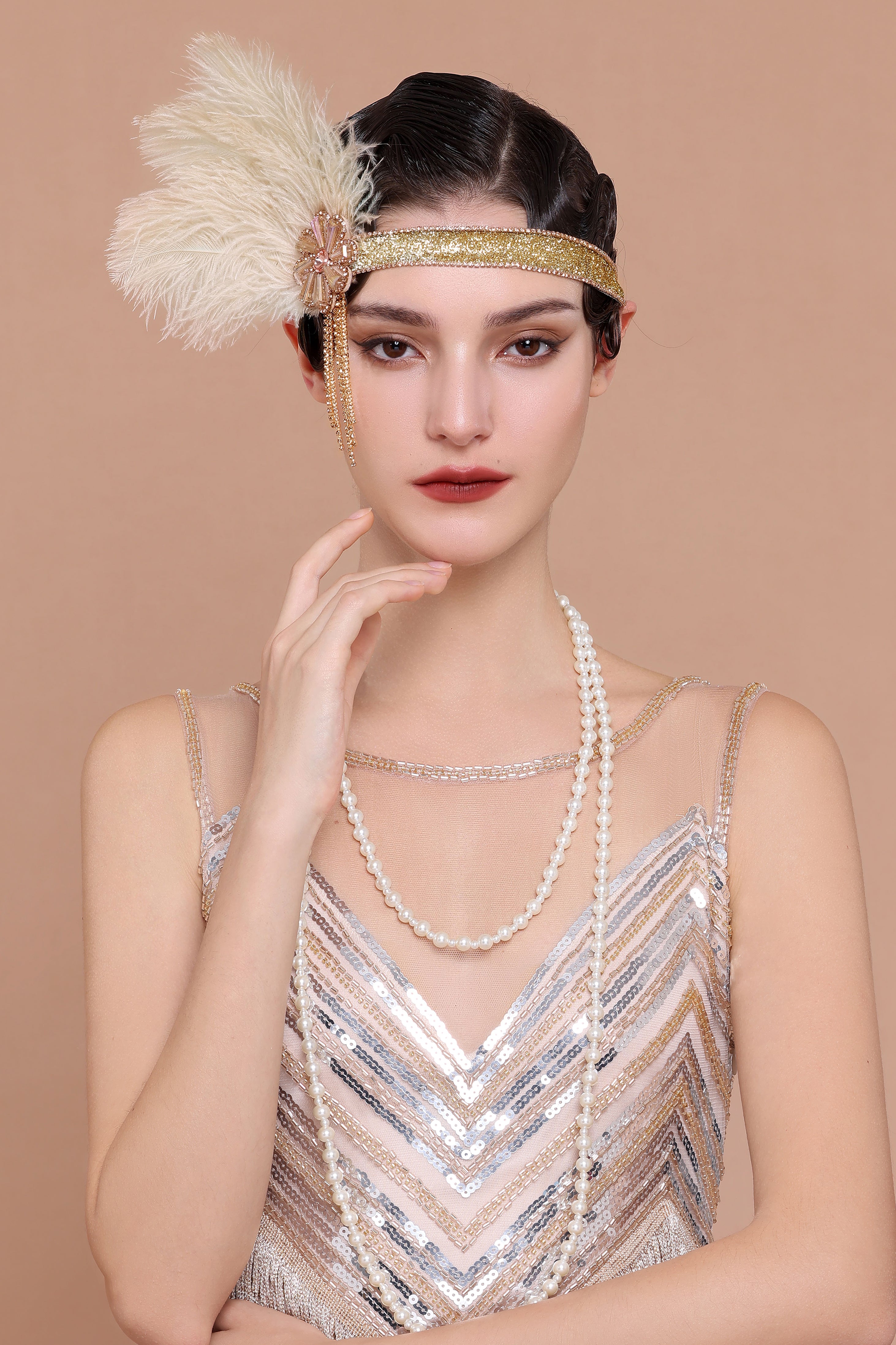 Roar back 100 years to unprecedented golden 20s with this headband, which perfectly create an elegant and sophisticated Gatsby style.