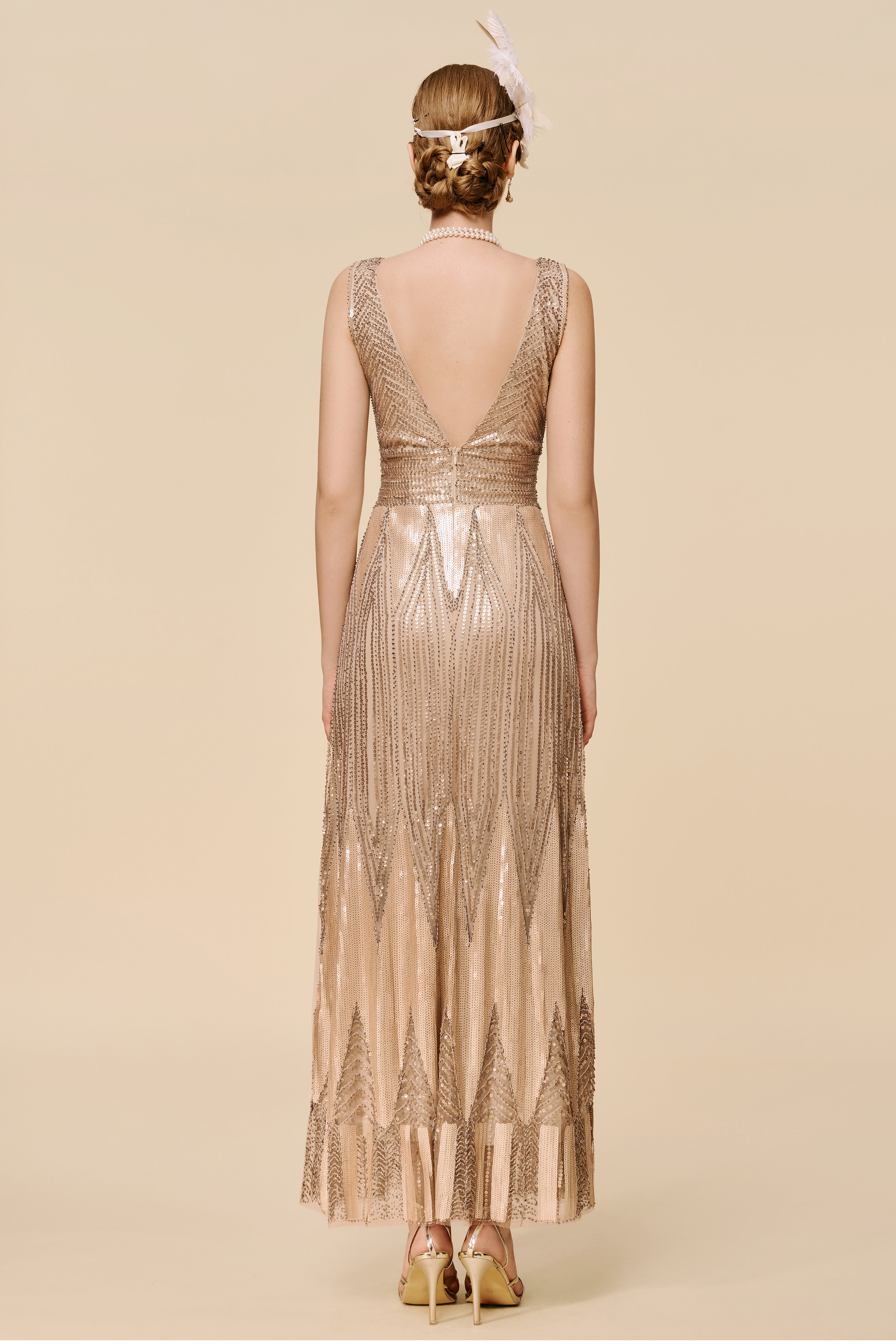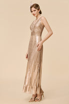 This stunningly gorgeous maxi sequin dress features a sleeveless design and fitted waistline, it's modern yet exudes vintage flair. Prepare to dazzle the room with this elegant dress.