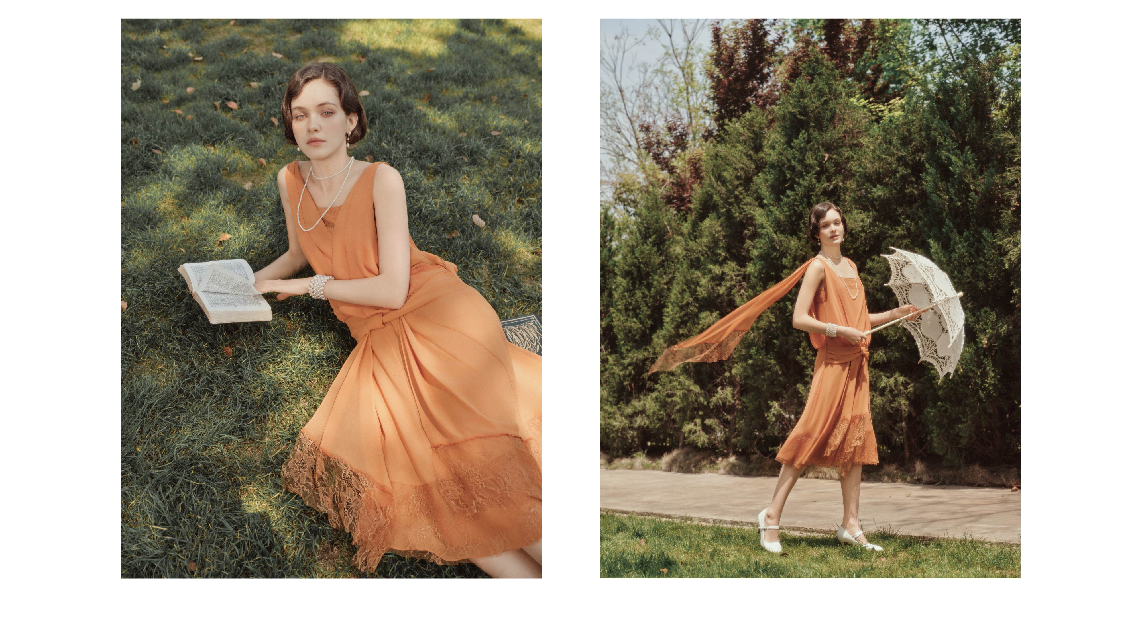 Discover the allure of 1920s day dresses in our latest collection "The Secret Paradise Behind Time".