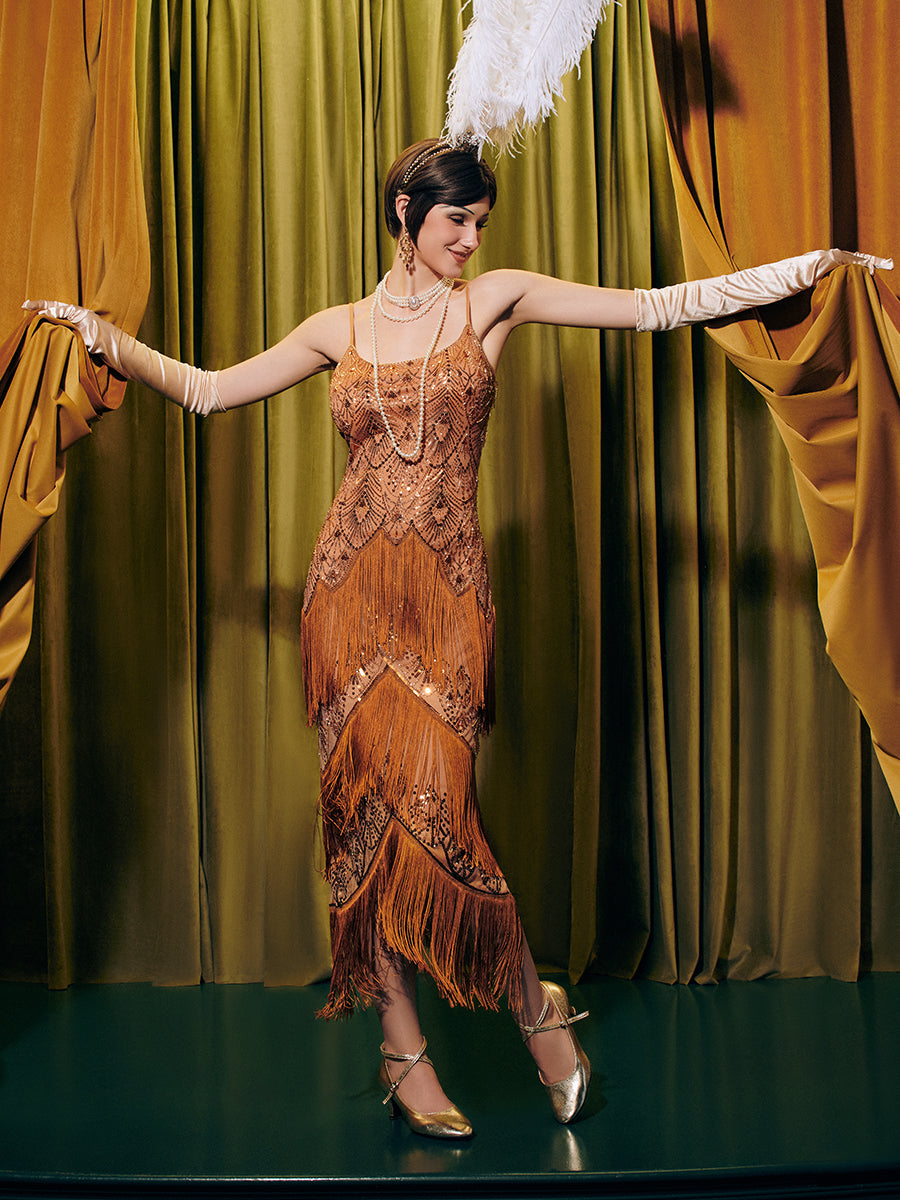 Golden Echo Fringe Flapper Dress
