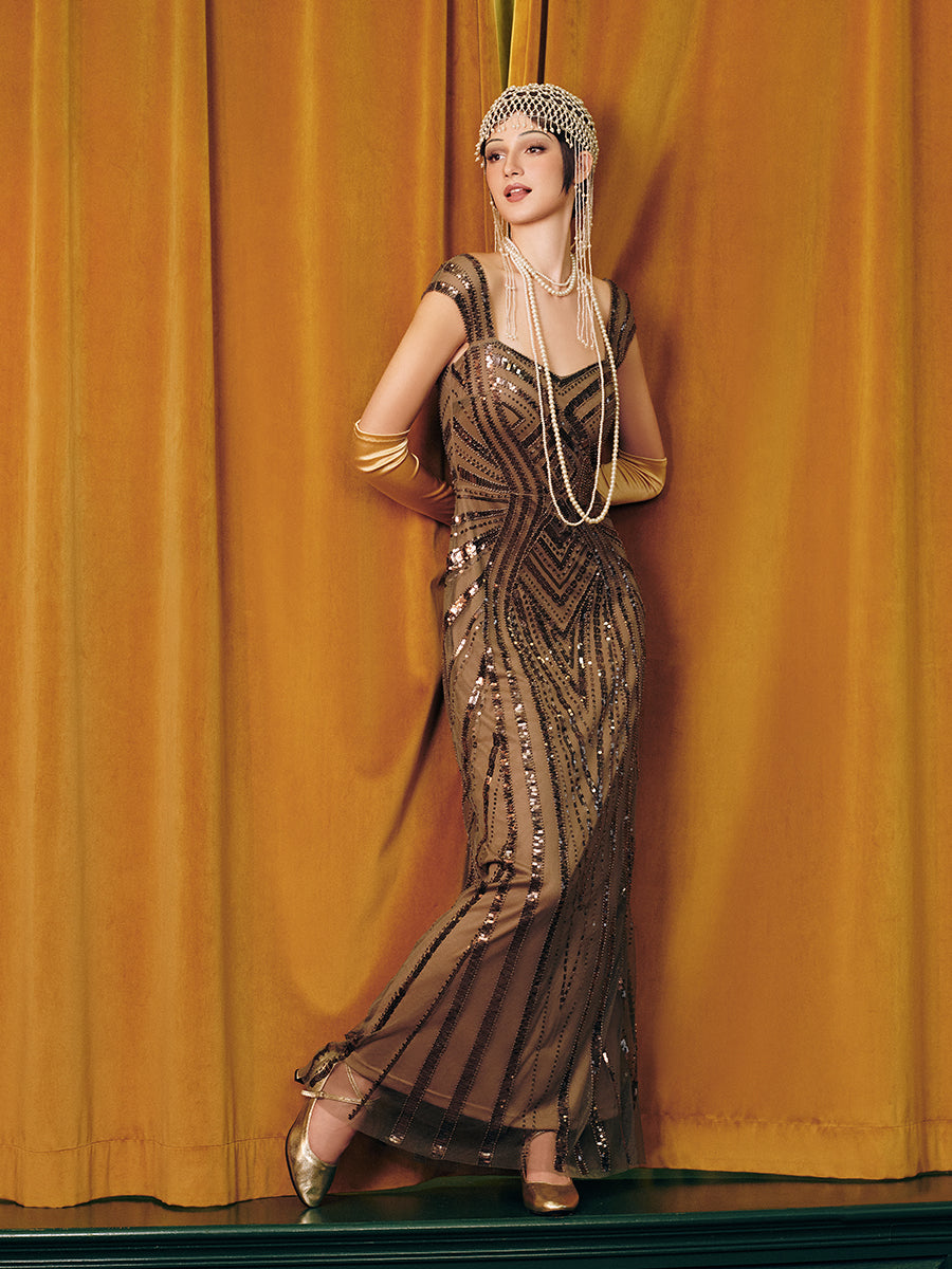 Retro Batwing Sleeve Sequin Evening Gown