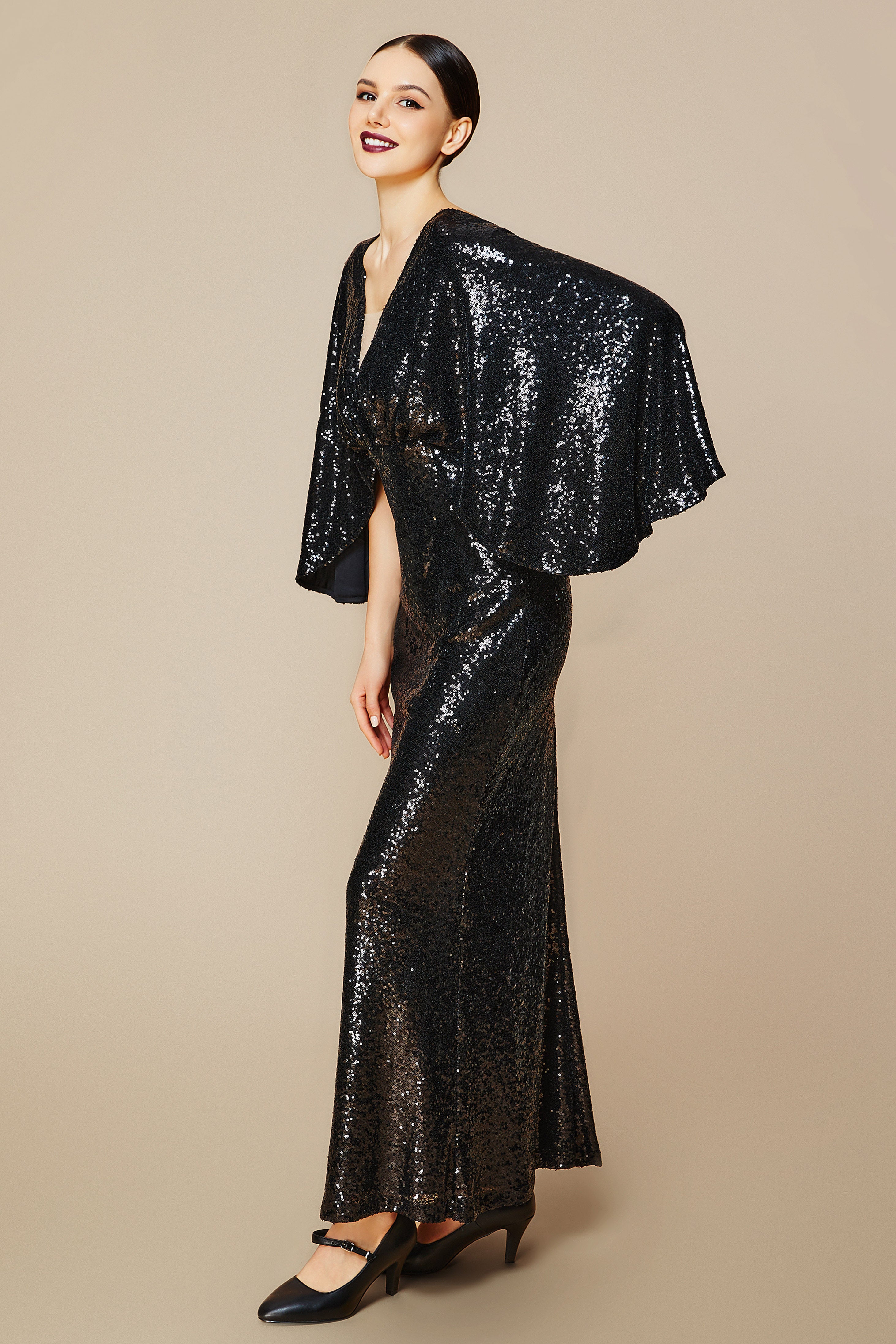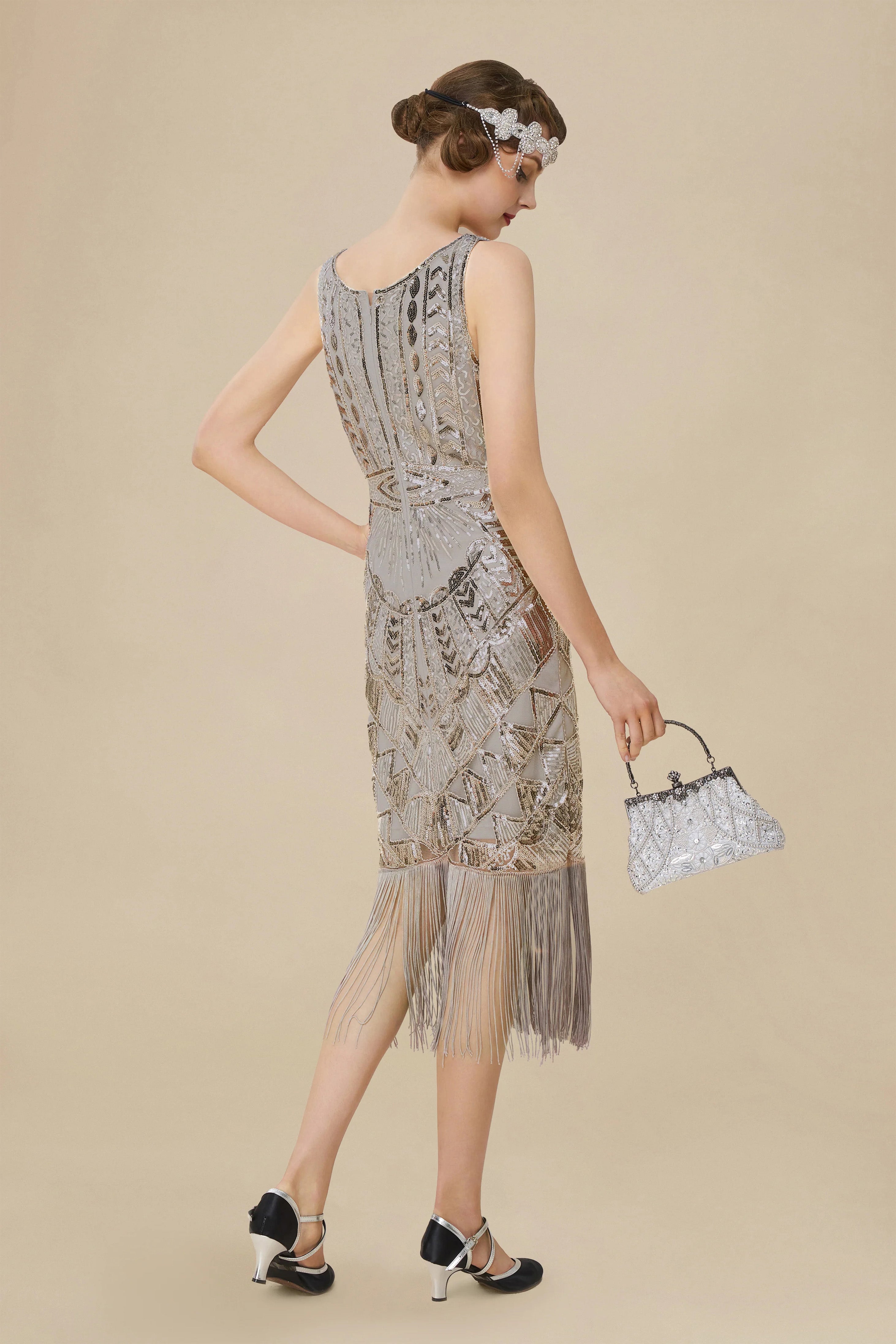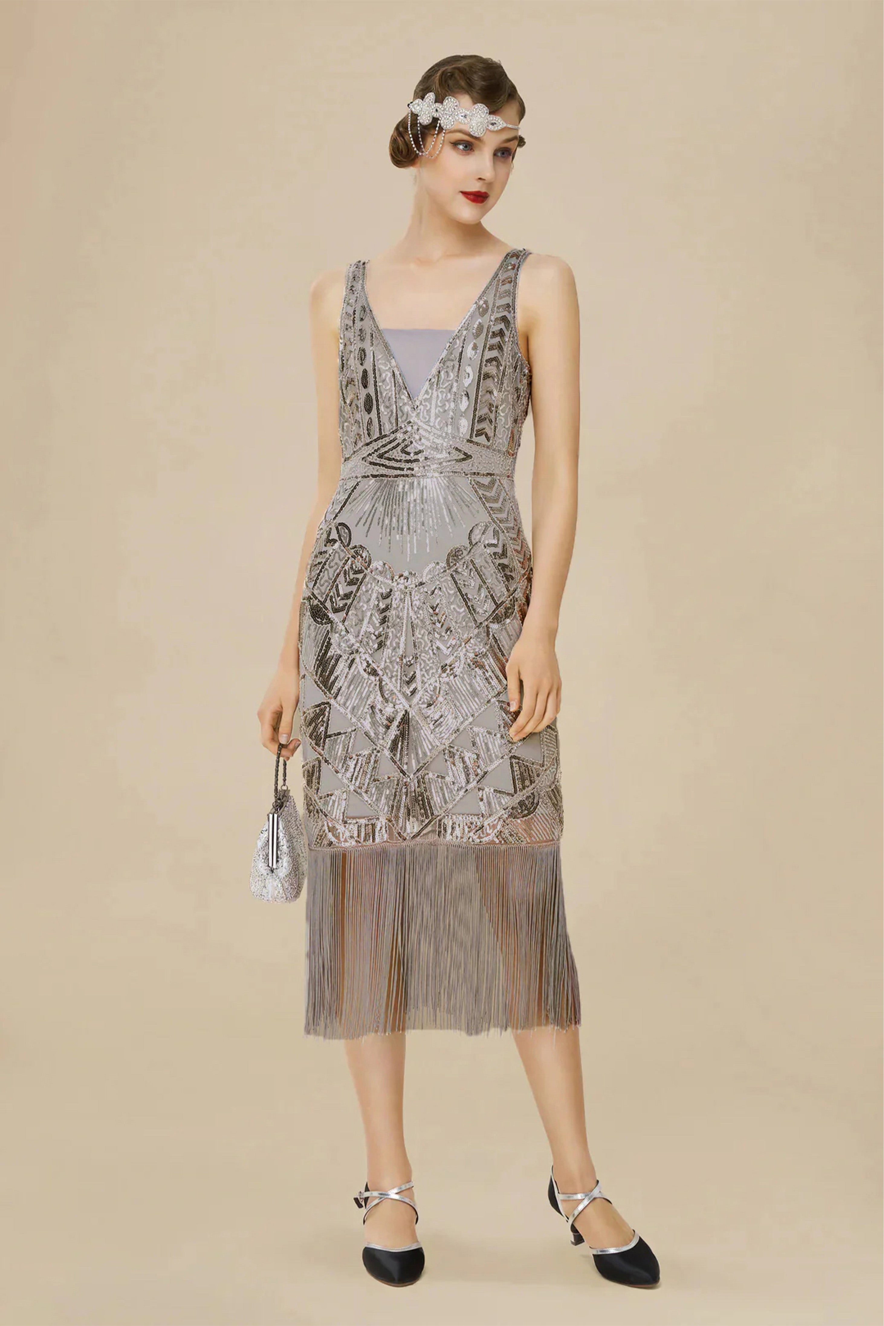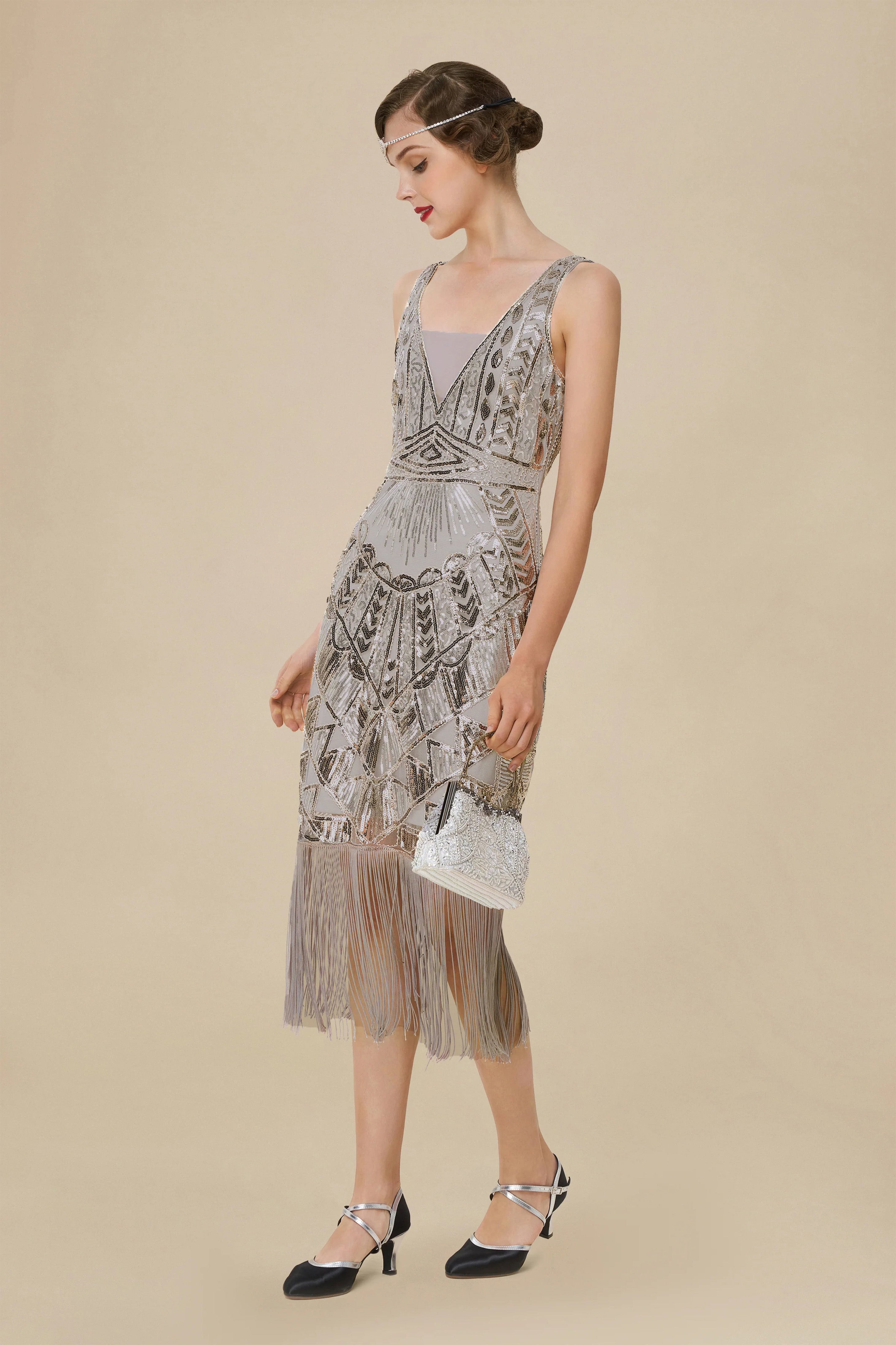 Glitter Sequin V-Neck Art Deco Slip Dress
