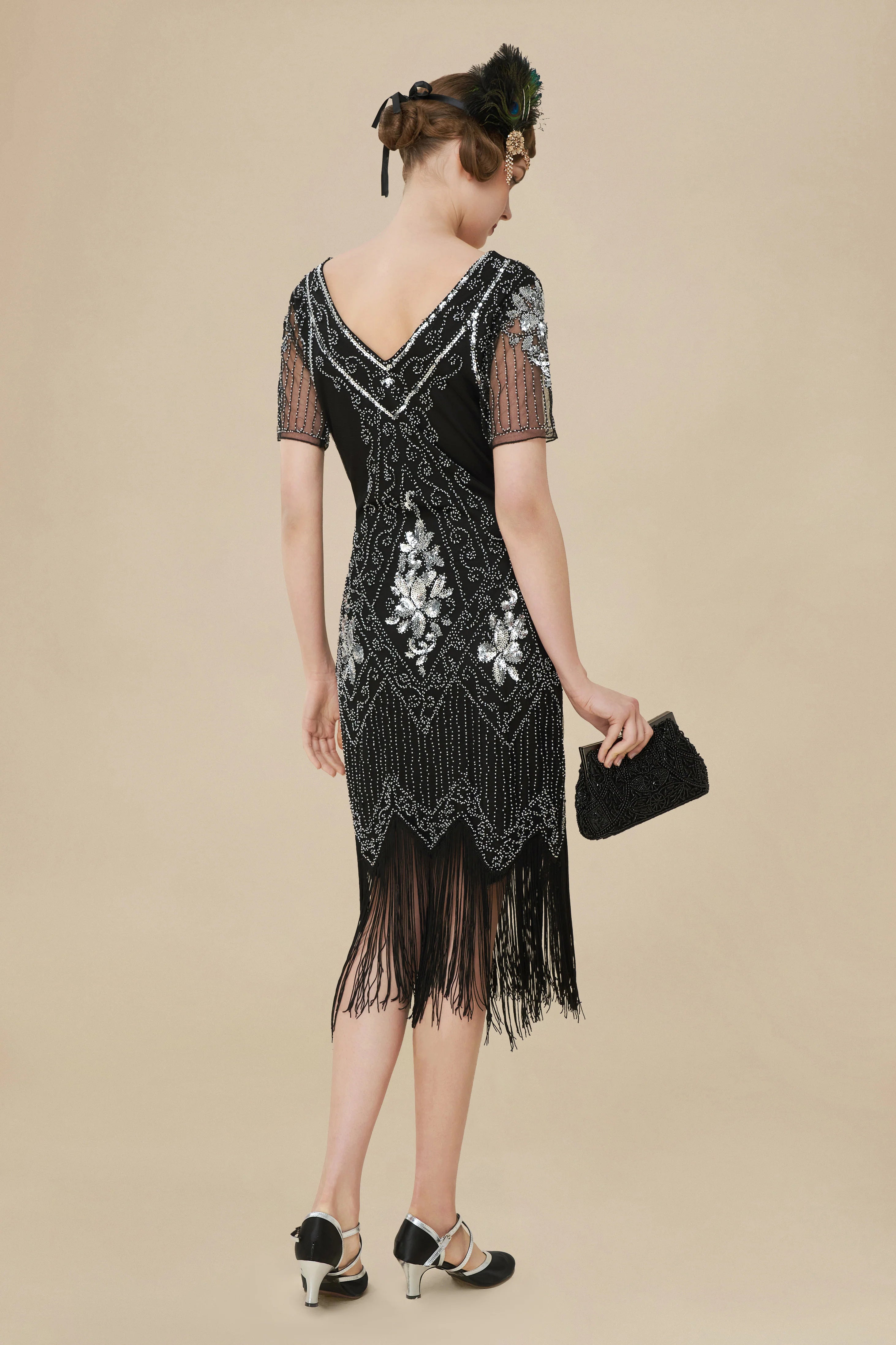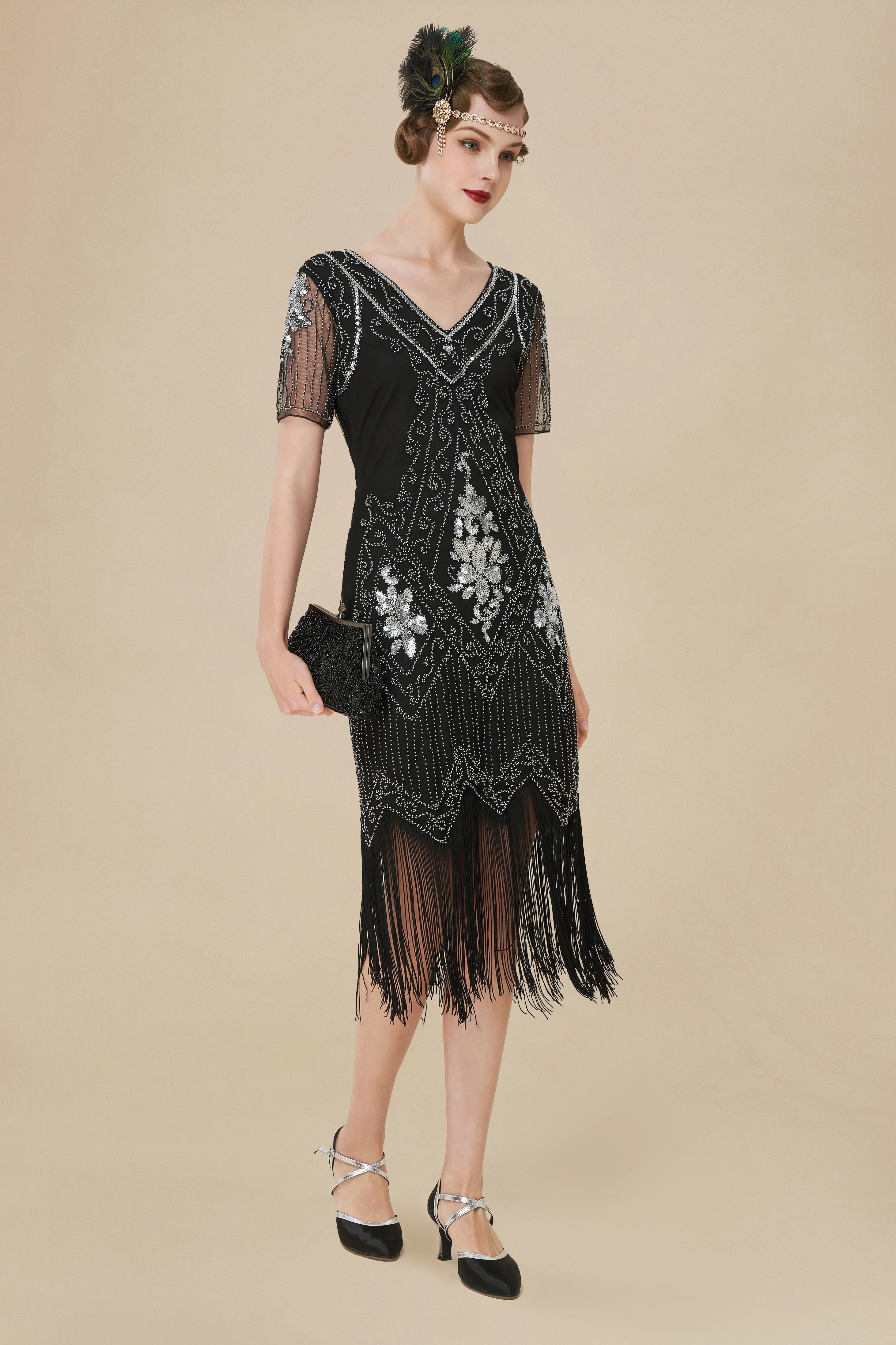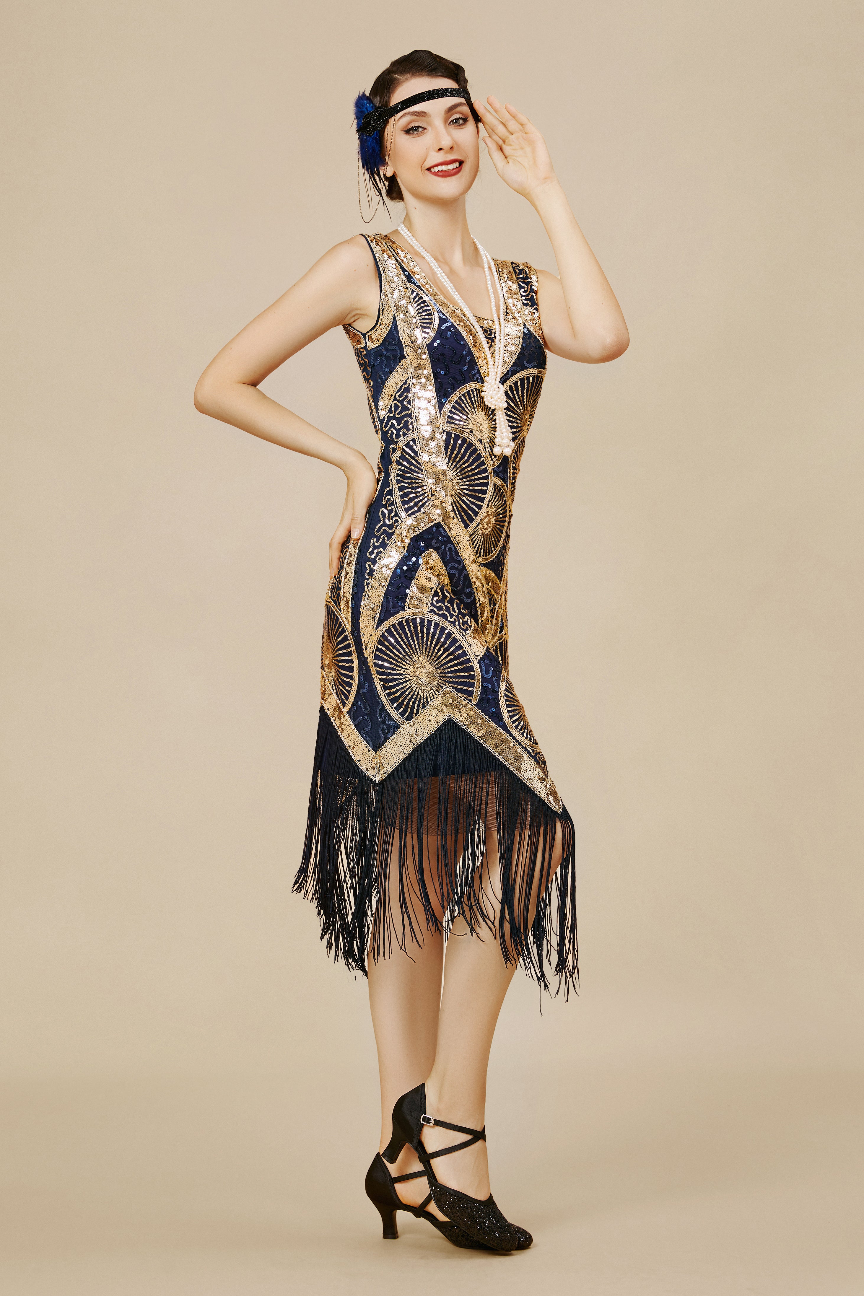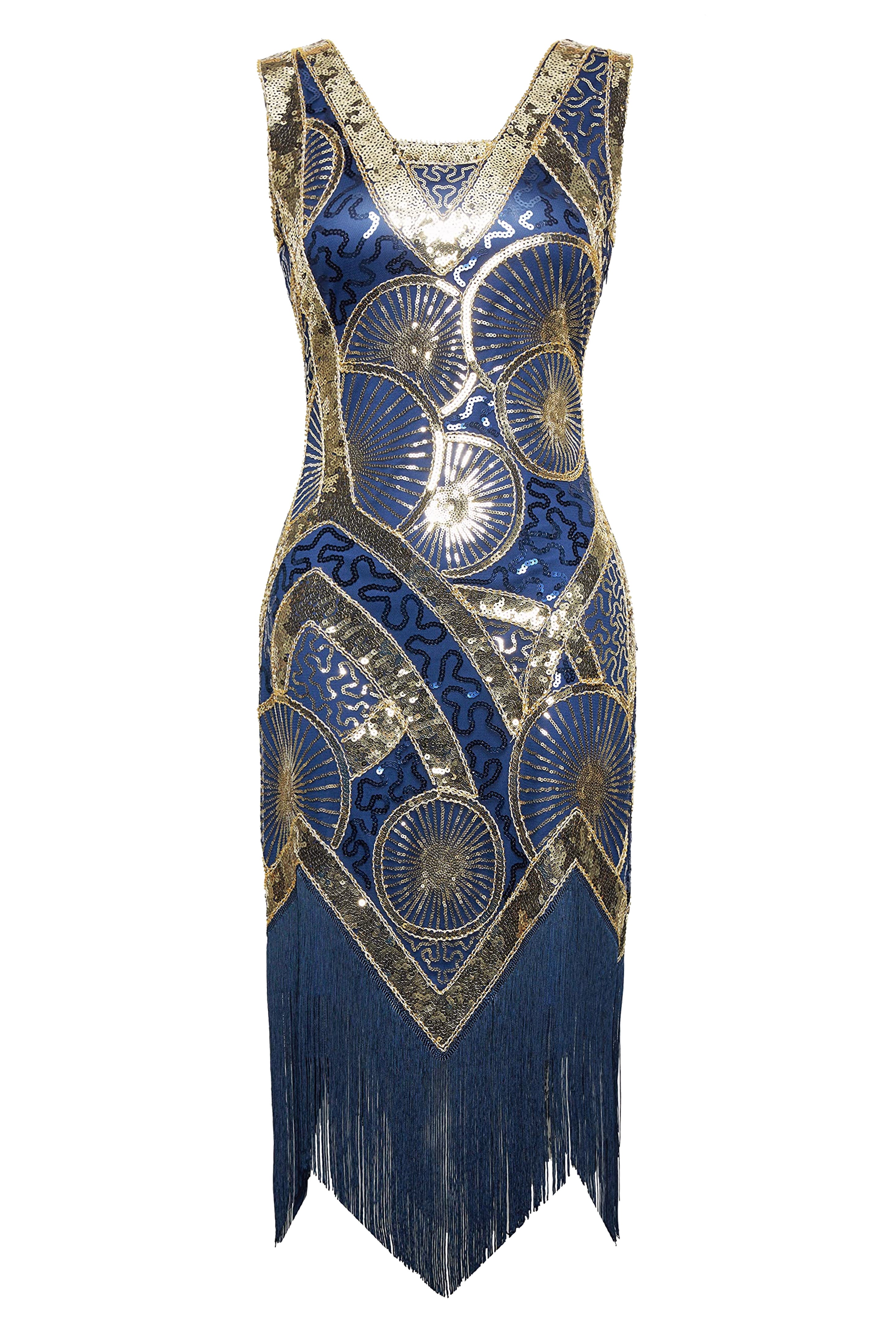 Glitter Sequin V-Neck Art Deco Slip Dress