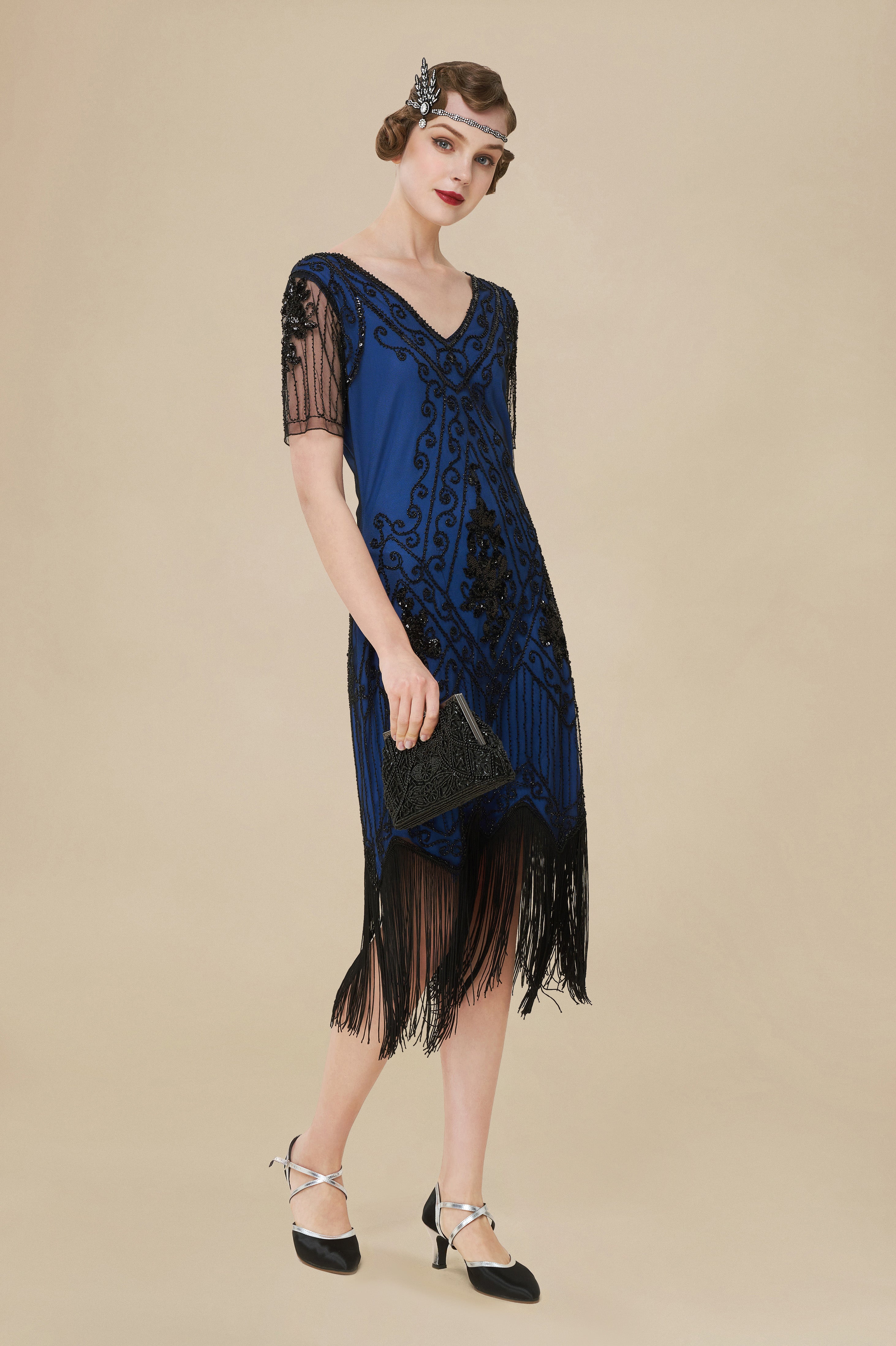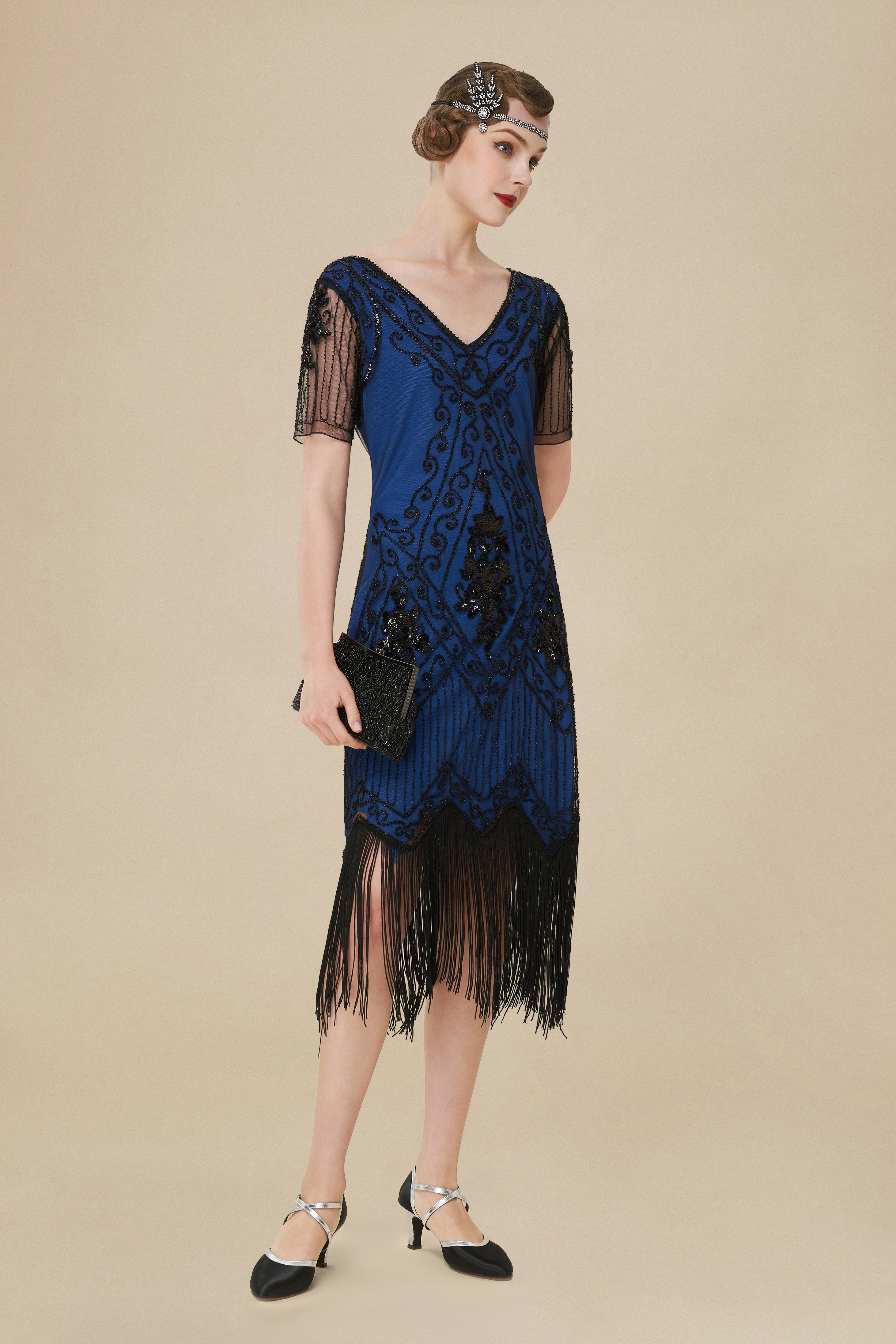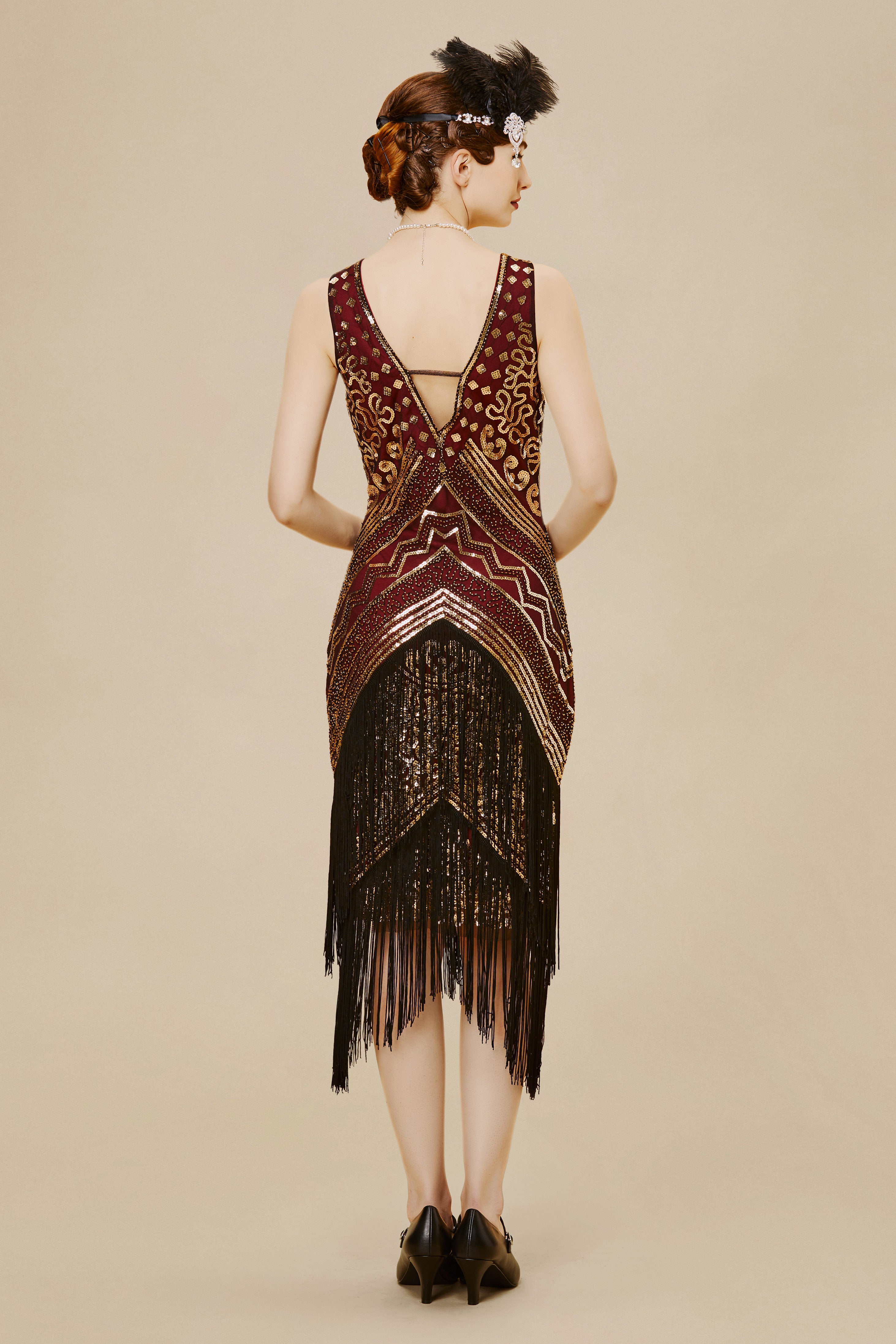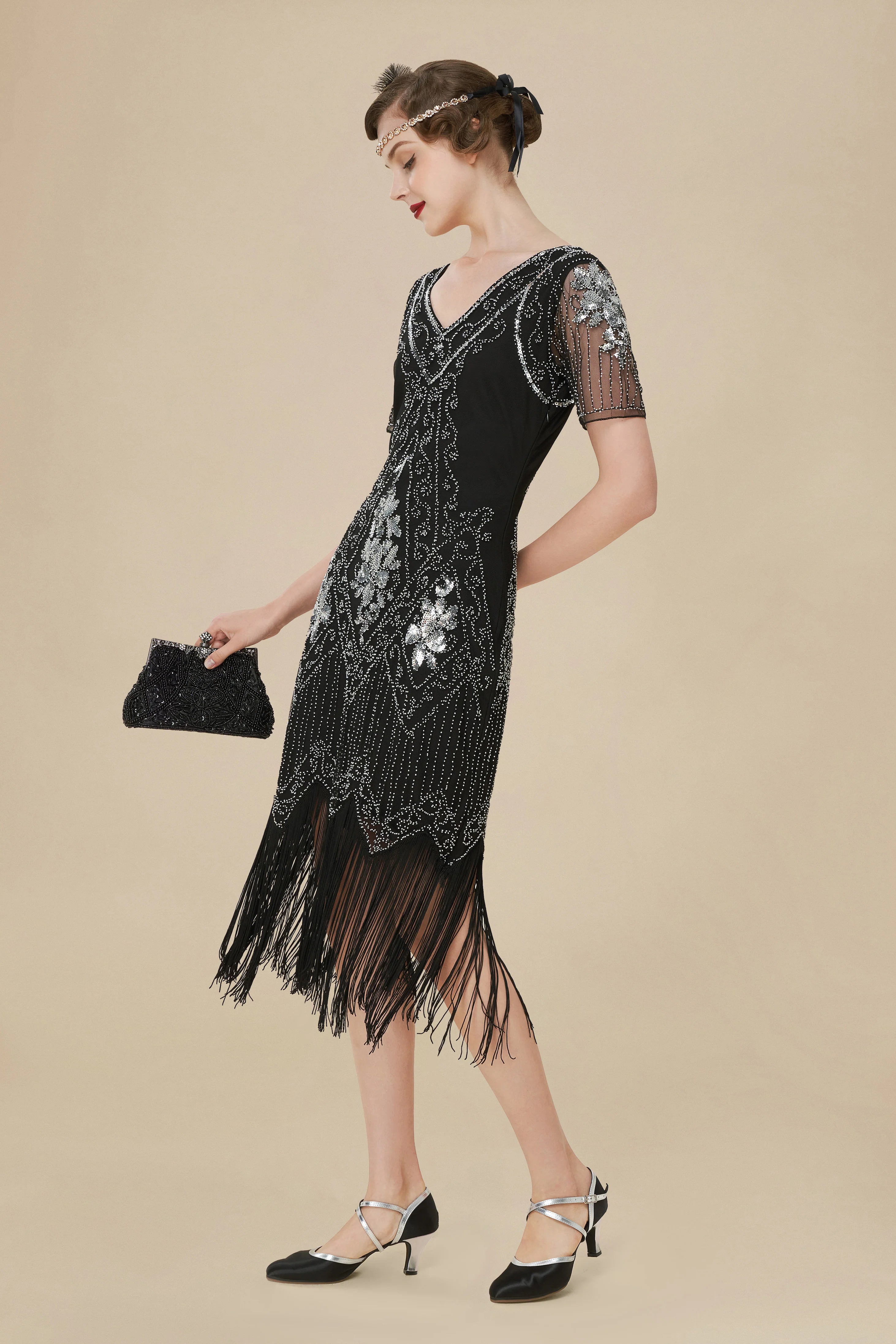 Glitter Sequin V-Neck Art Deco Slip Dress