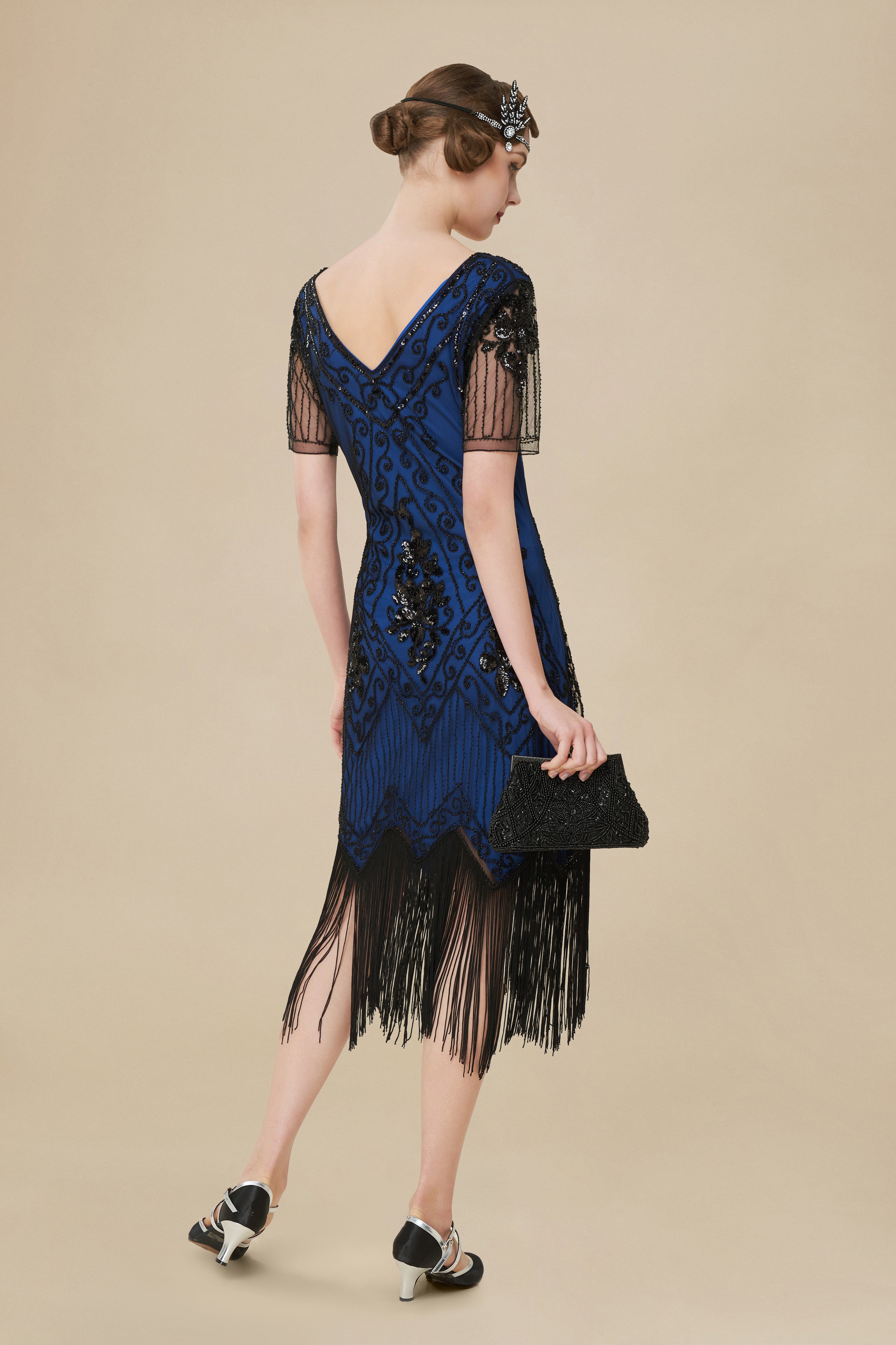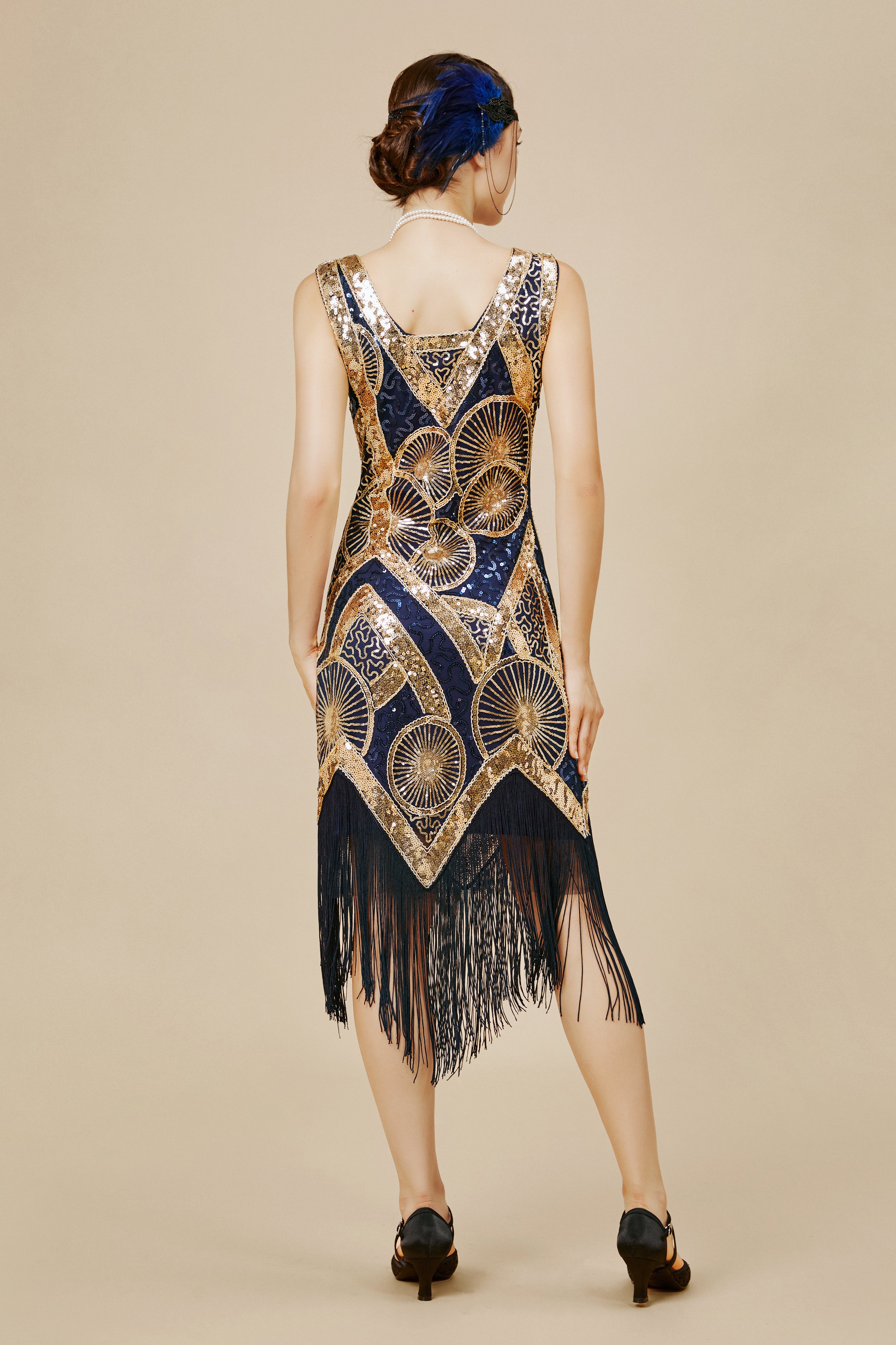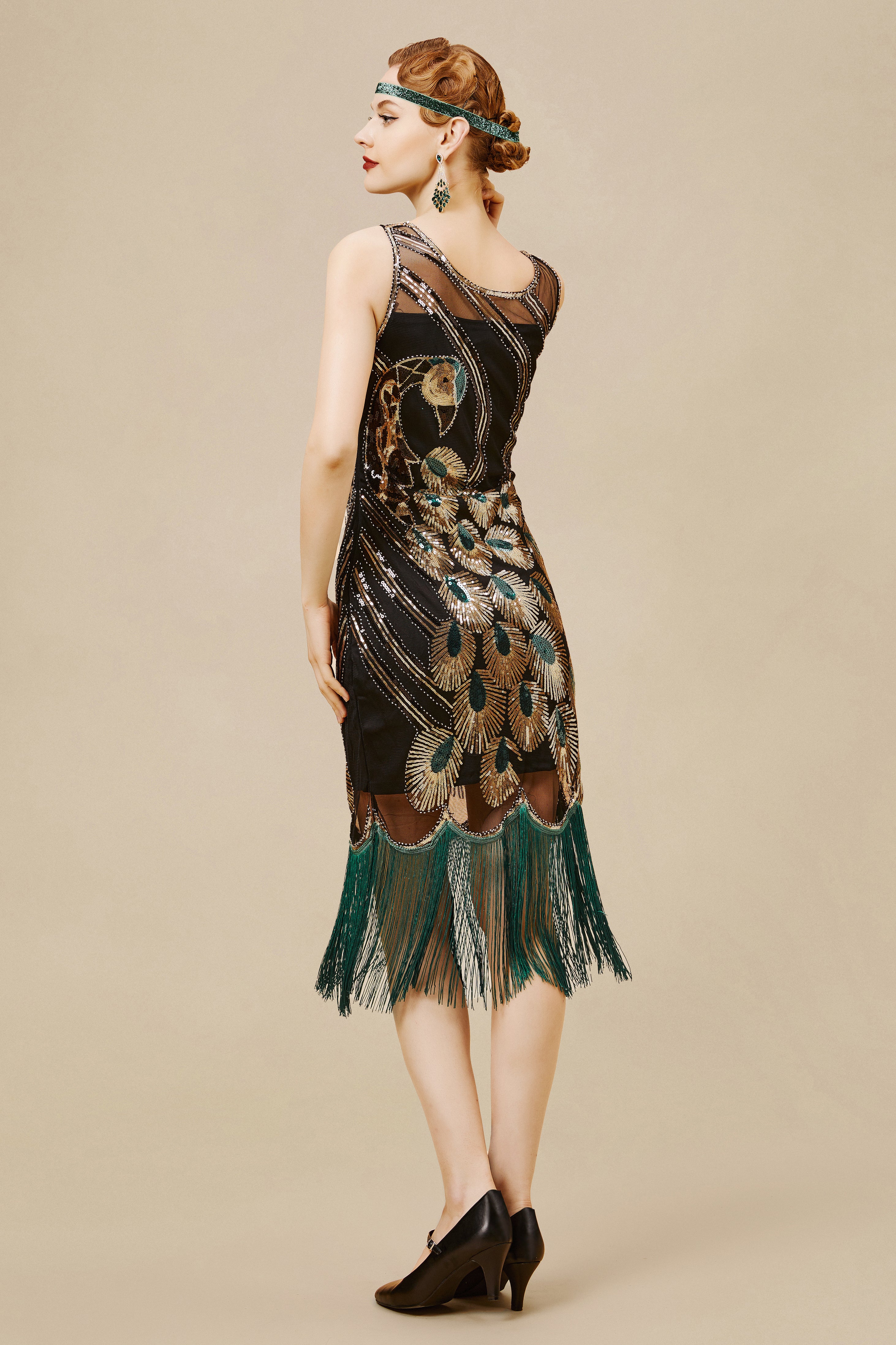 1920s Glitter Sequin Peacock Scoop Neck Dress
