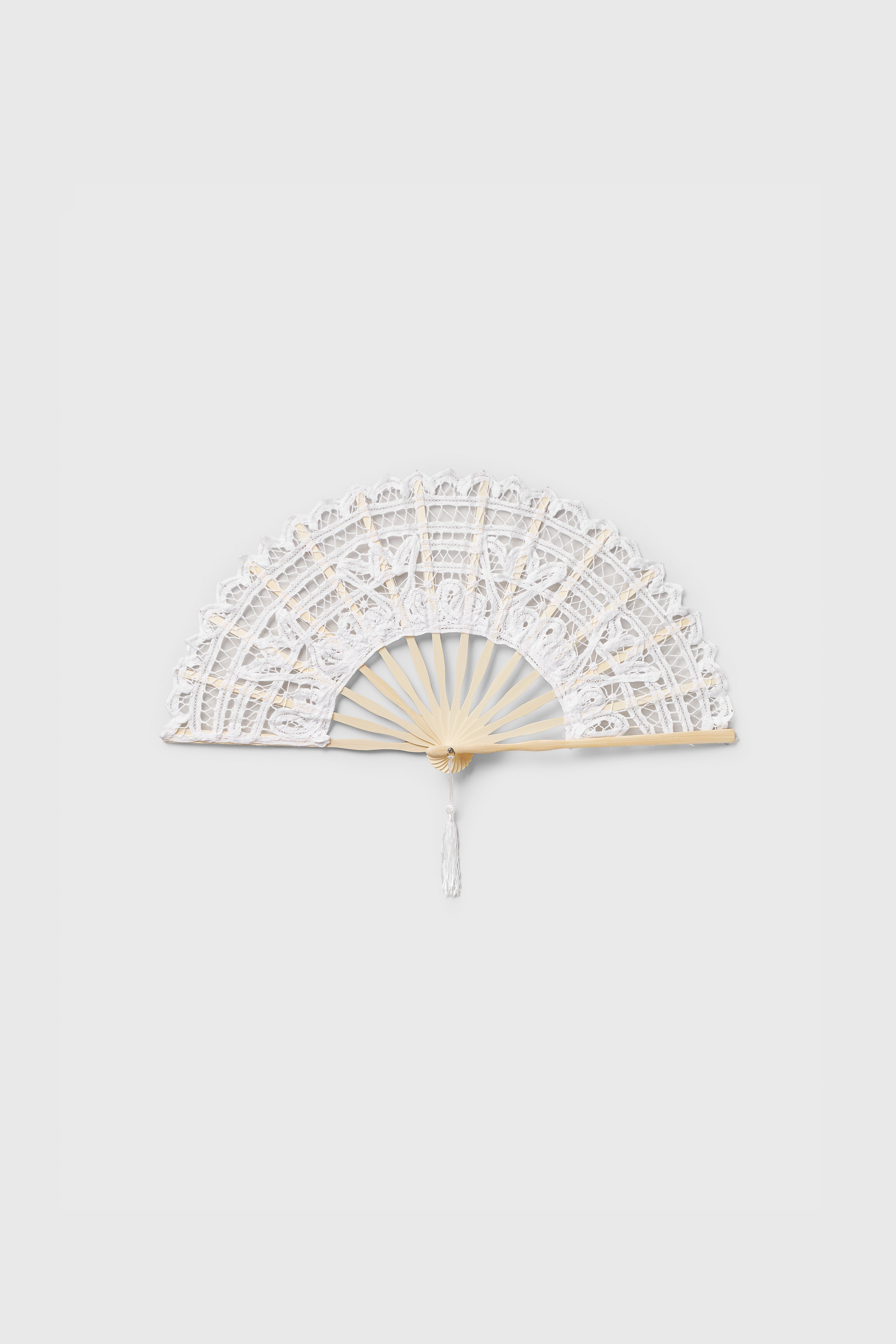 Classy and glamorous folding embroidered cotton lace fan with unique bamboo fan staves. Hold it and be the showstopper of the party.