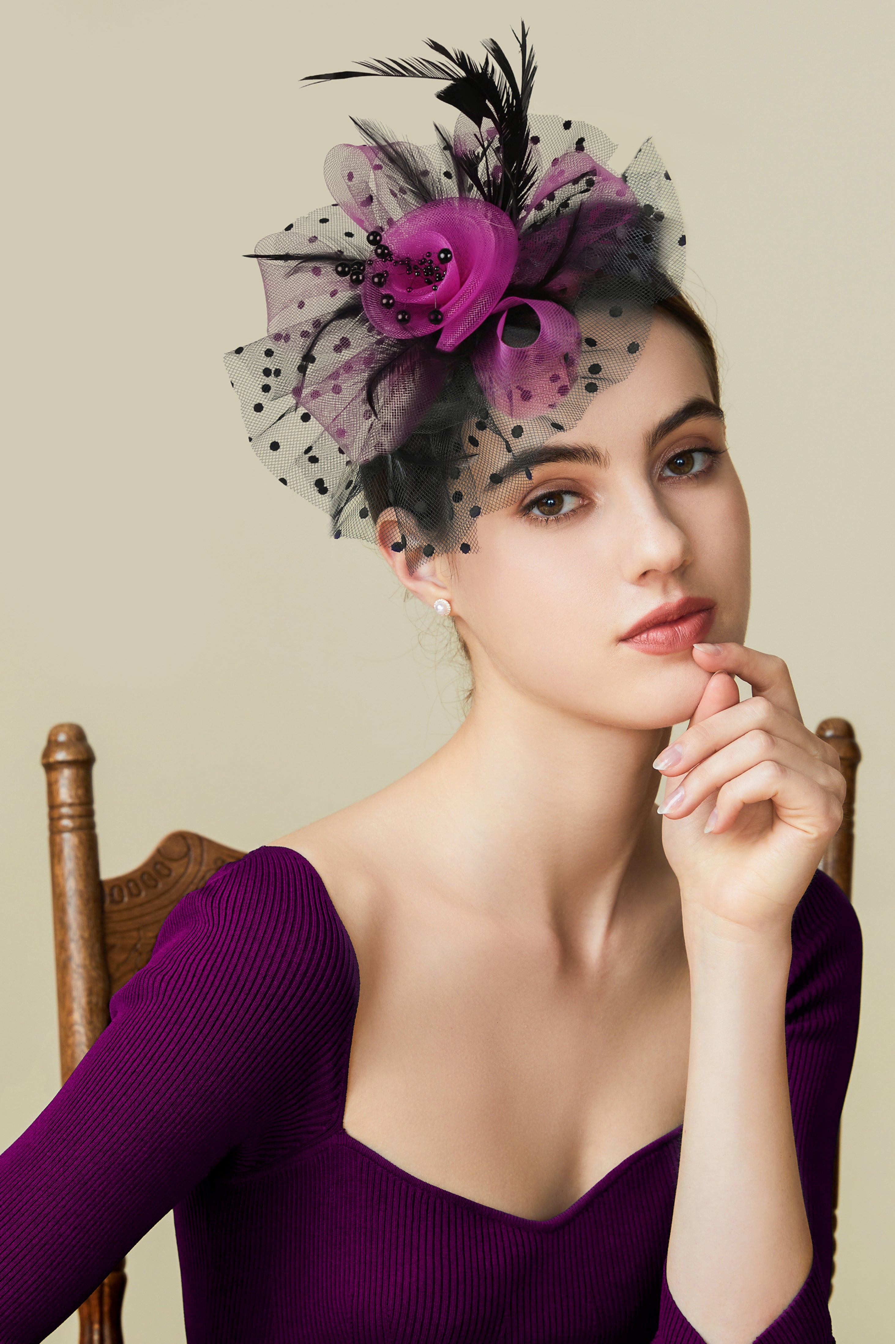 Retro Polka Dot Veil Derby Fascinator