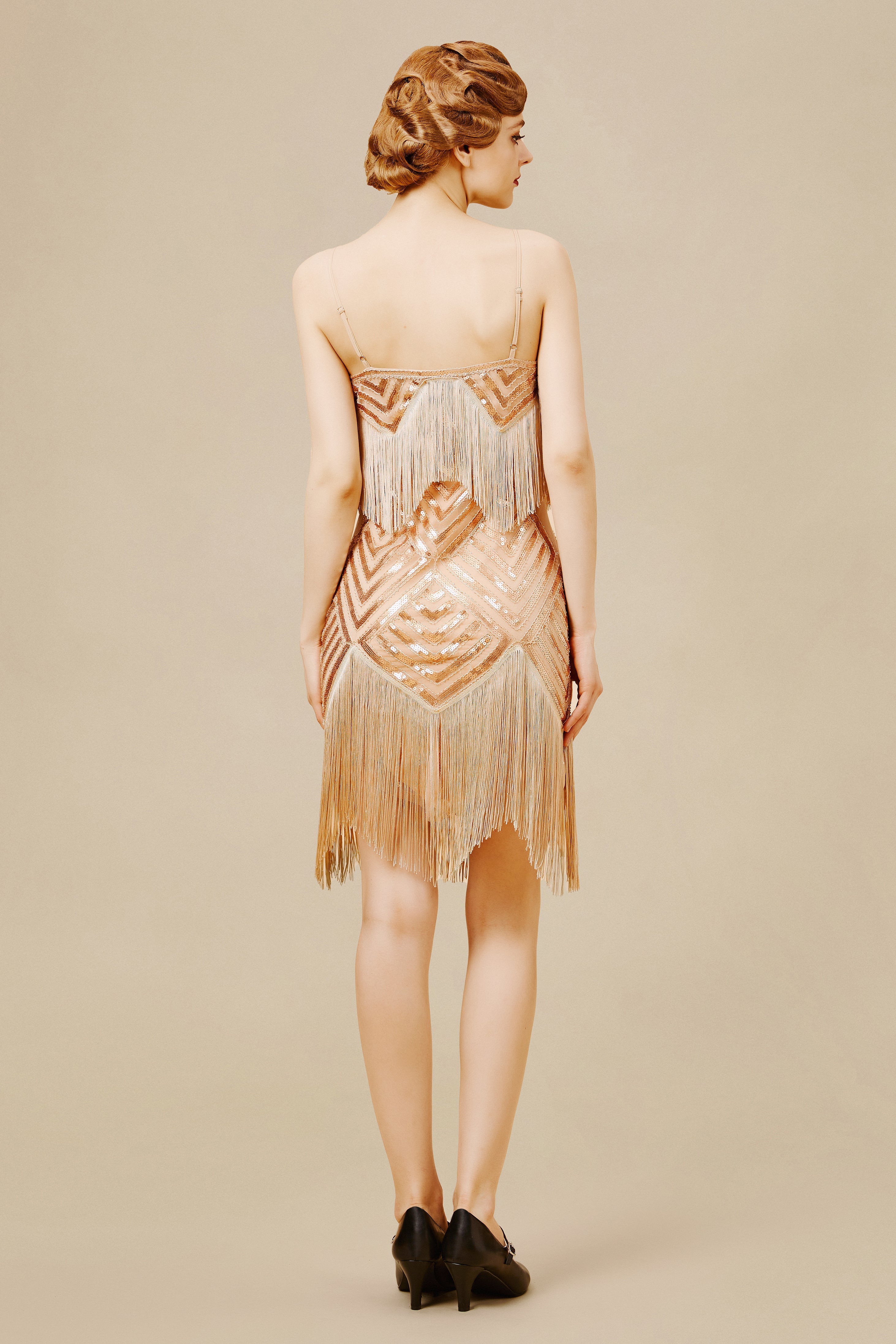 This elegant dress is classic vintage look for a modern woman. The eyecatching design features art deco print and unique vintage style which bring you back to the roaring twenties.