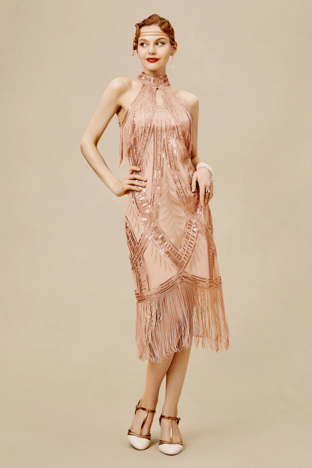 This fringed dress is classic vintage look for a modern woman. The eyecatching design features art deco print and unique vintage style which bring you back to the roaring twenties.