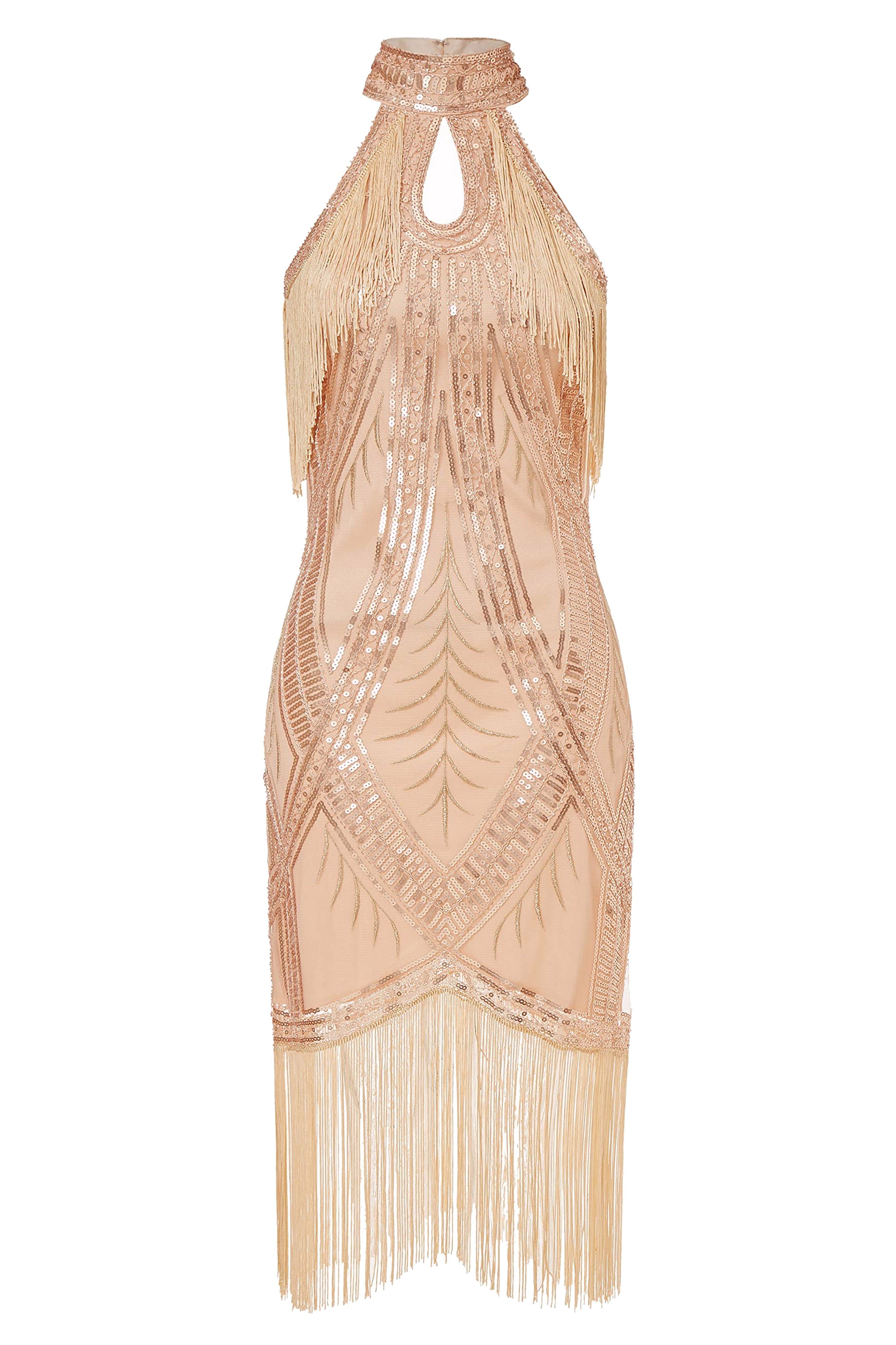 Cutout Crew Neck Fringe Flapper Dress