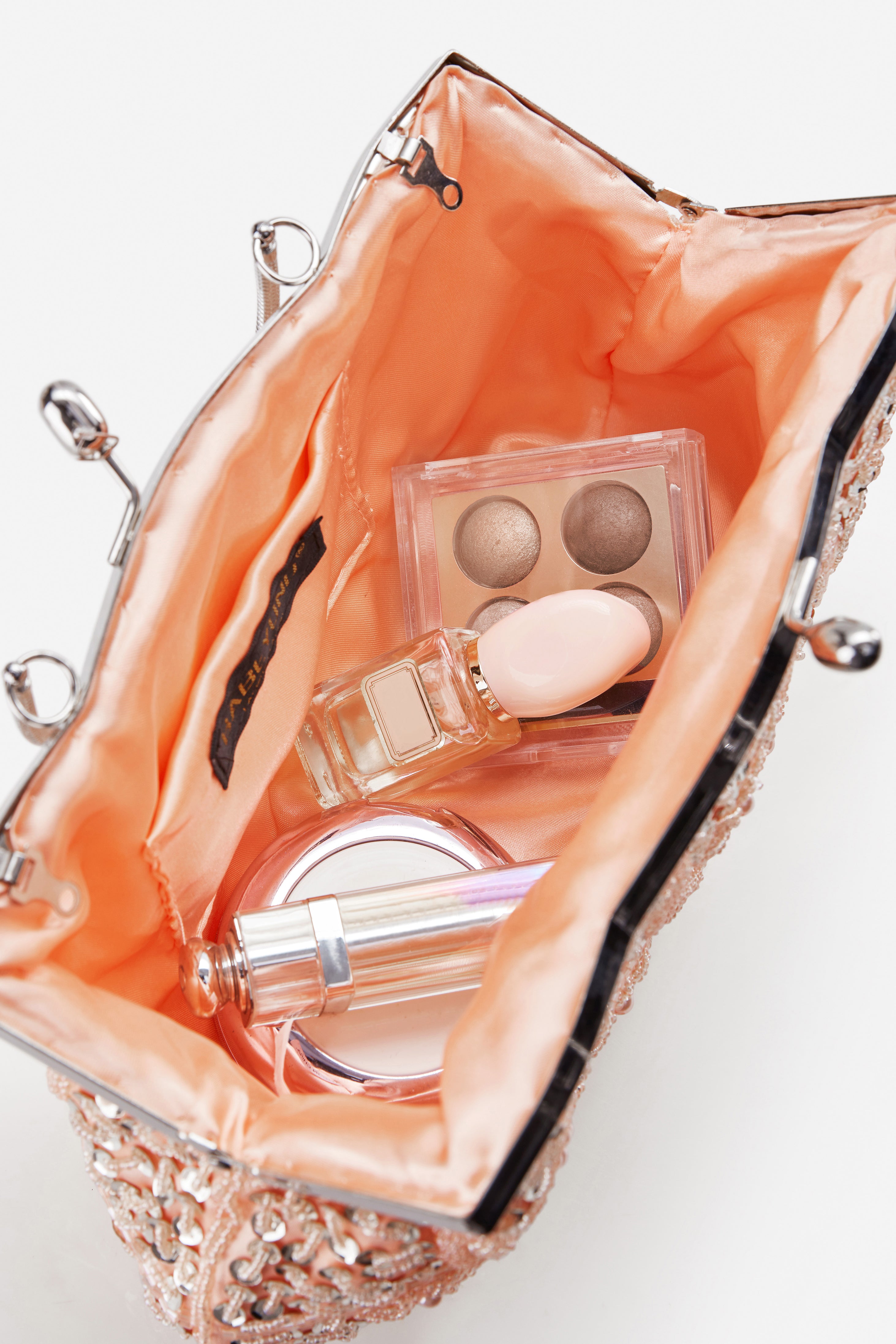 This regal and elegant clutch is completely wrapped in party-ready embellished beads detailing, which sets the stage for a Roaring 20s party.