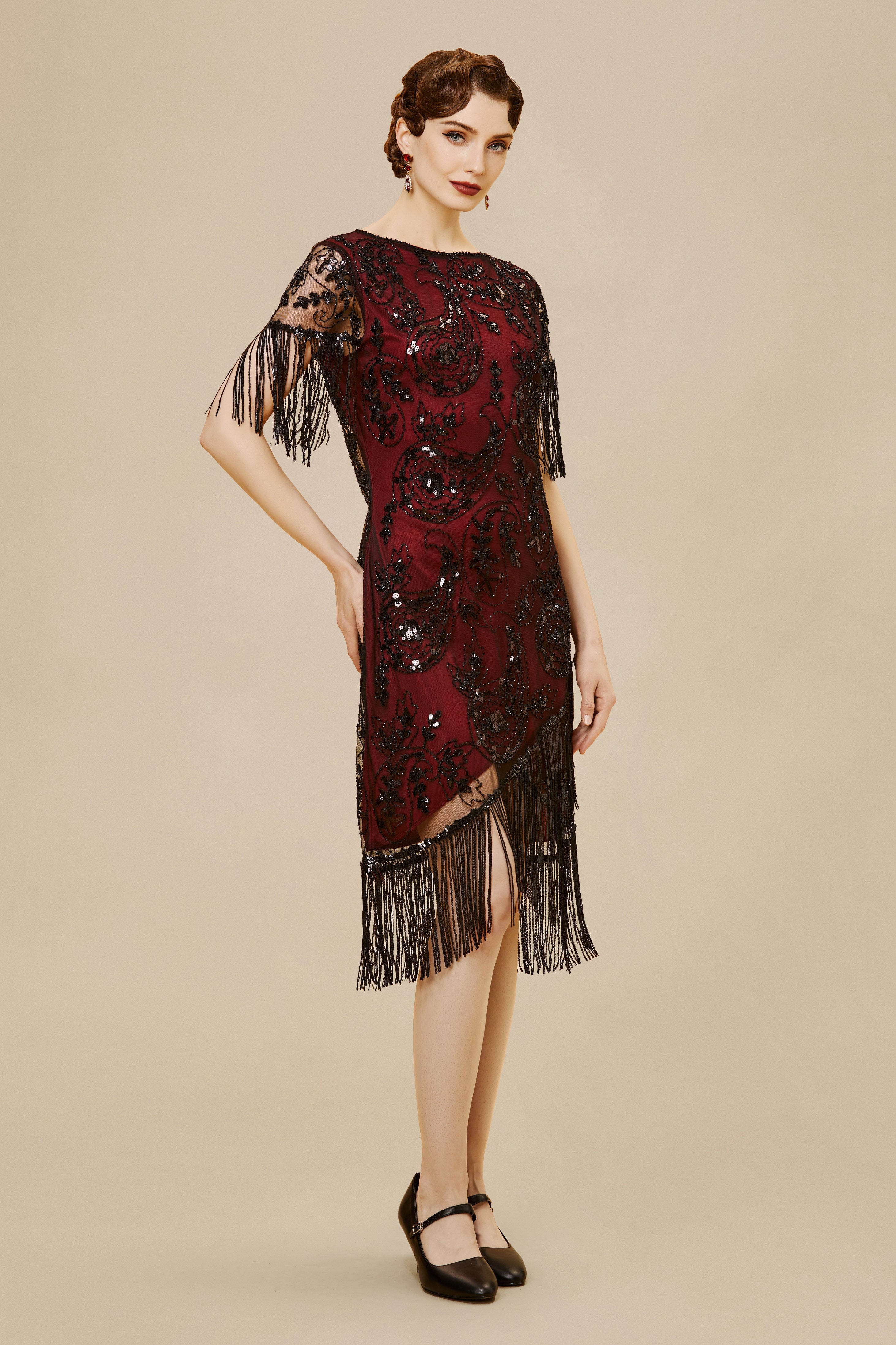 Embellished Sequin Fringe Art Deco Dress