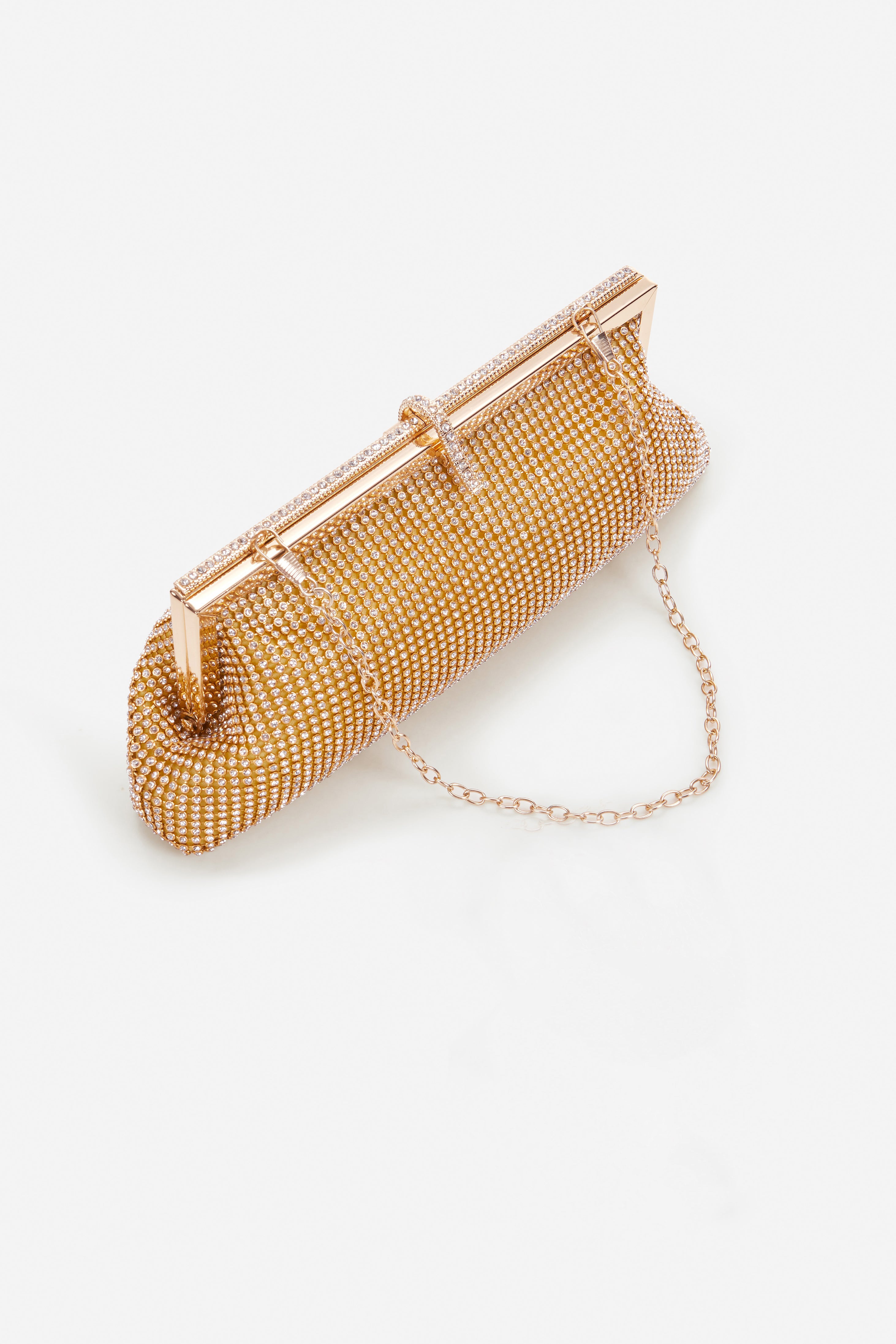 This regal and elegant clutch is completely wrapped in party-ready embellished rhinestones detailing, which sets the stage for a Roaring 20s party.