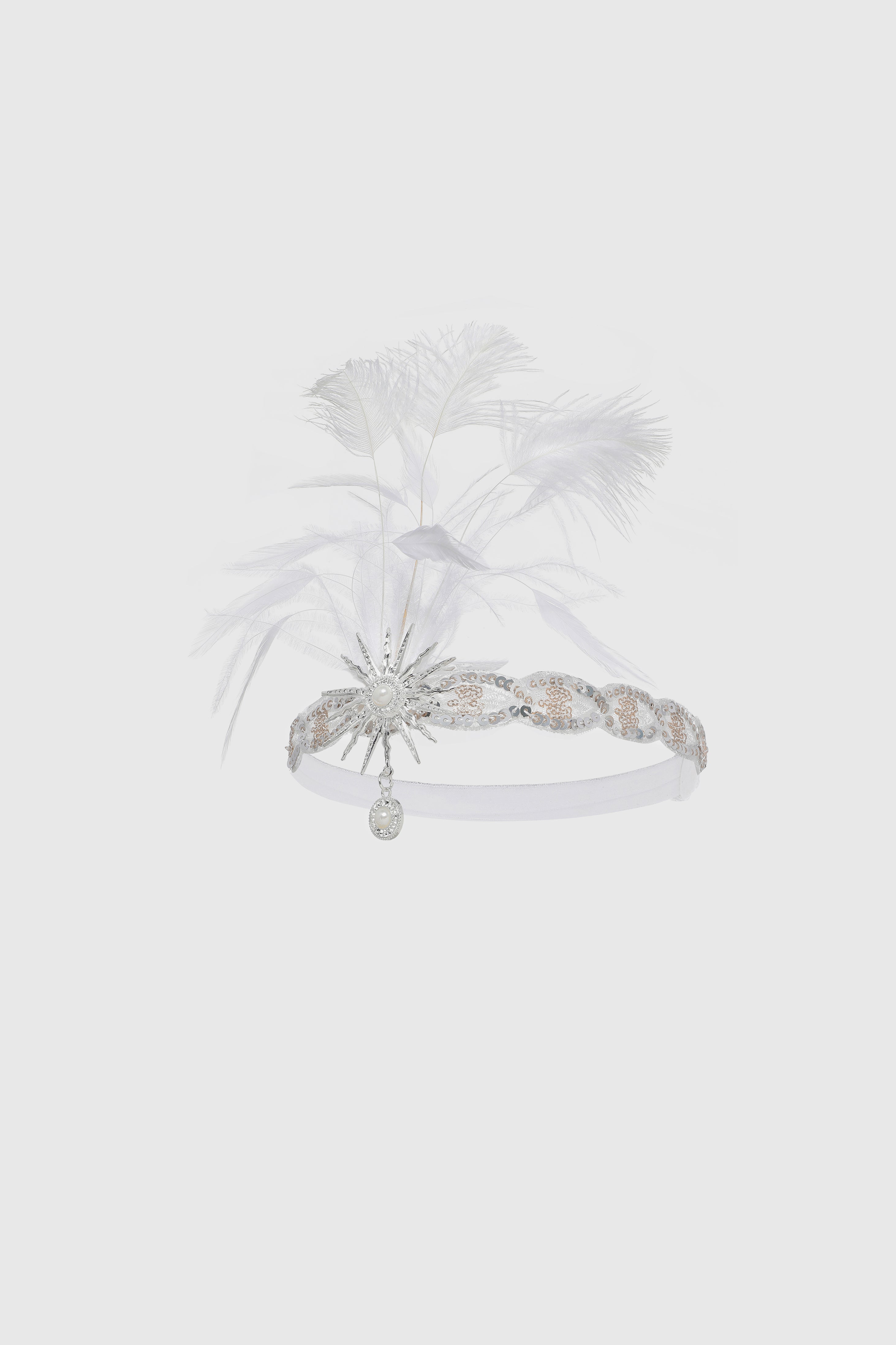 Perfect mix and match of feather, rhinestone, and beads. Let's roar back 100 years to the golden 20s with this stunning rhinestone feather headband.
