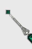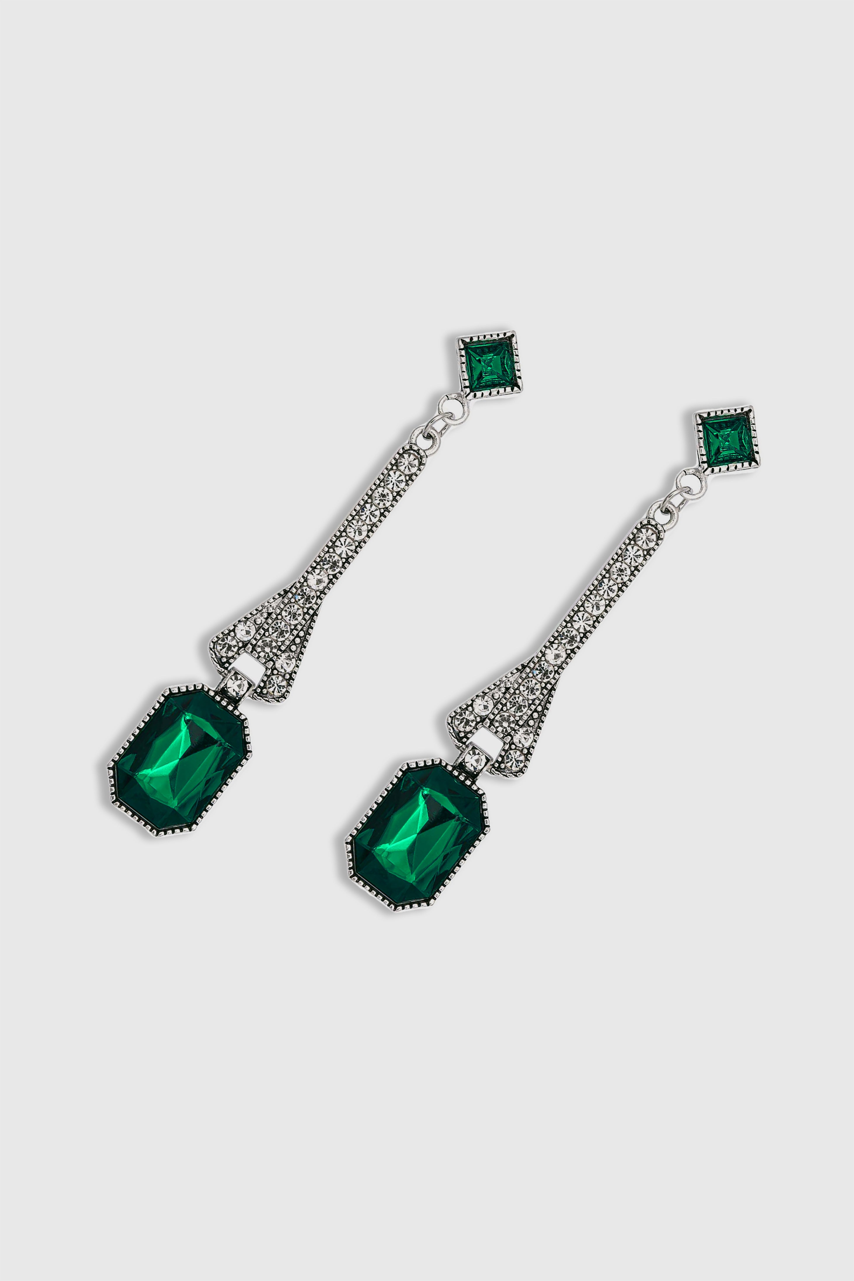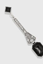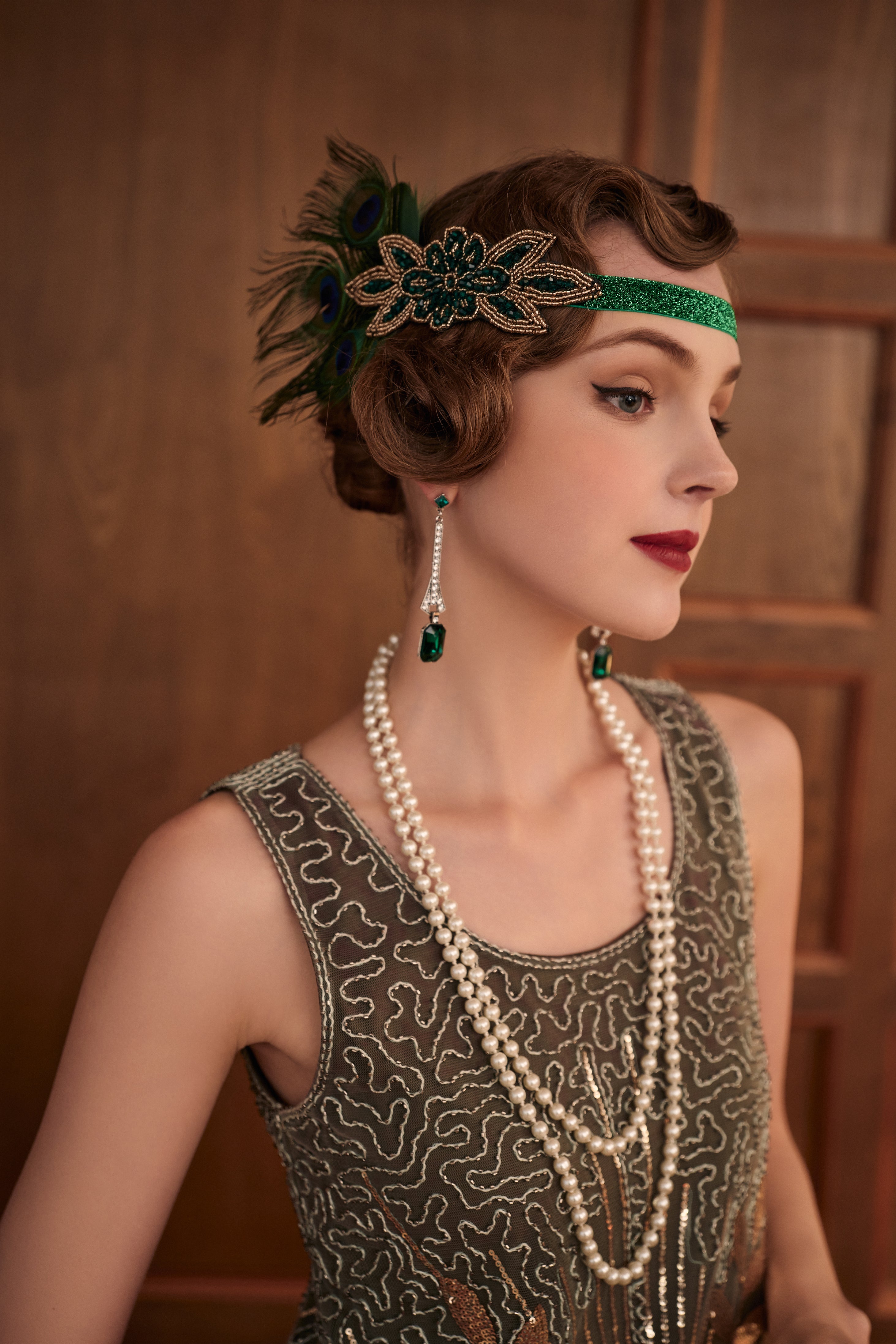 This sumptuous piece of jewelry features a retro-elegant yet slightly modern style that complements the lavish garments, reminiscent of the roaring 1920s.