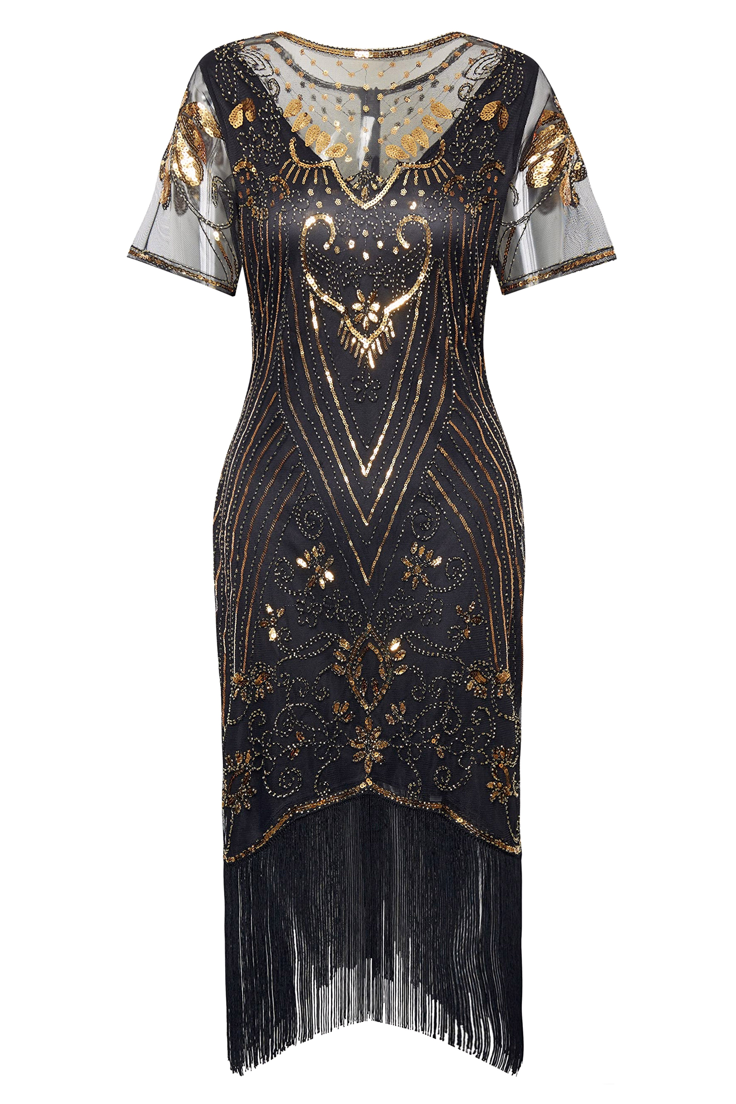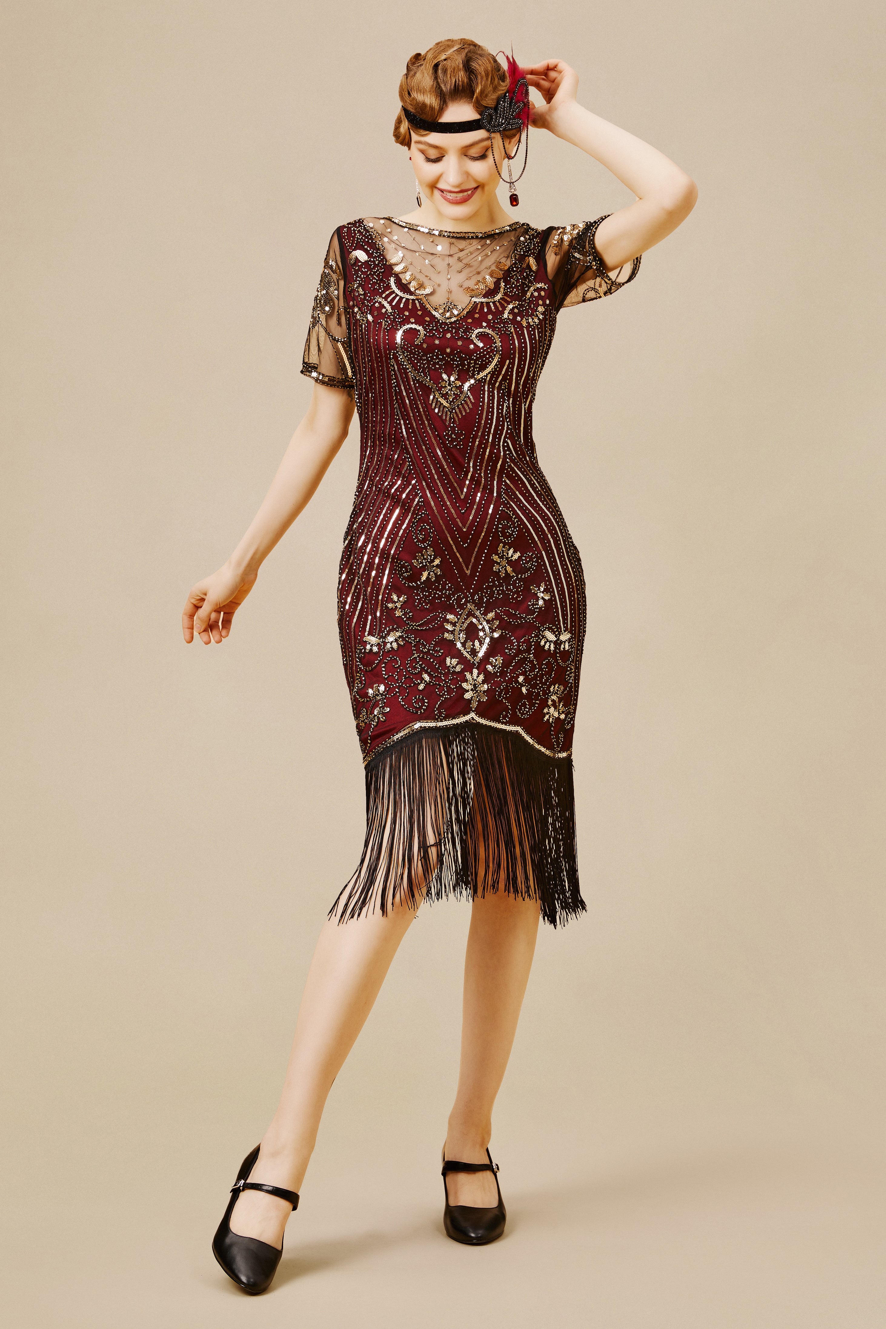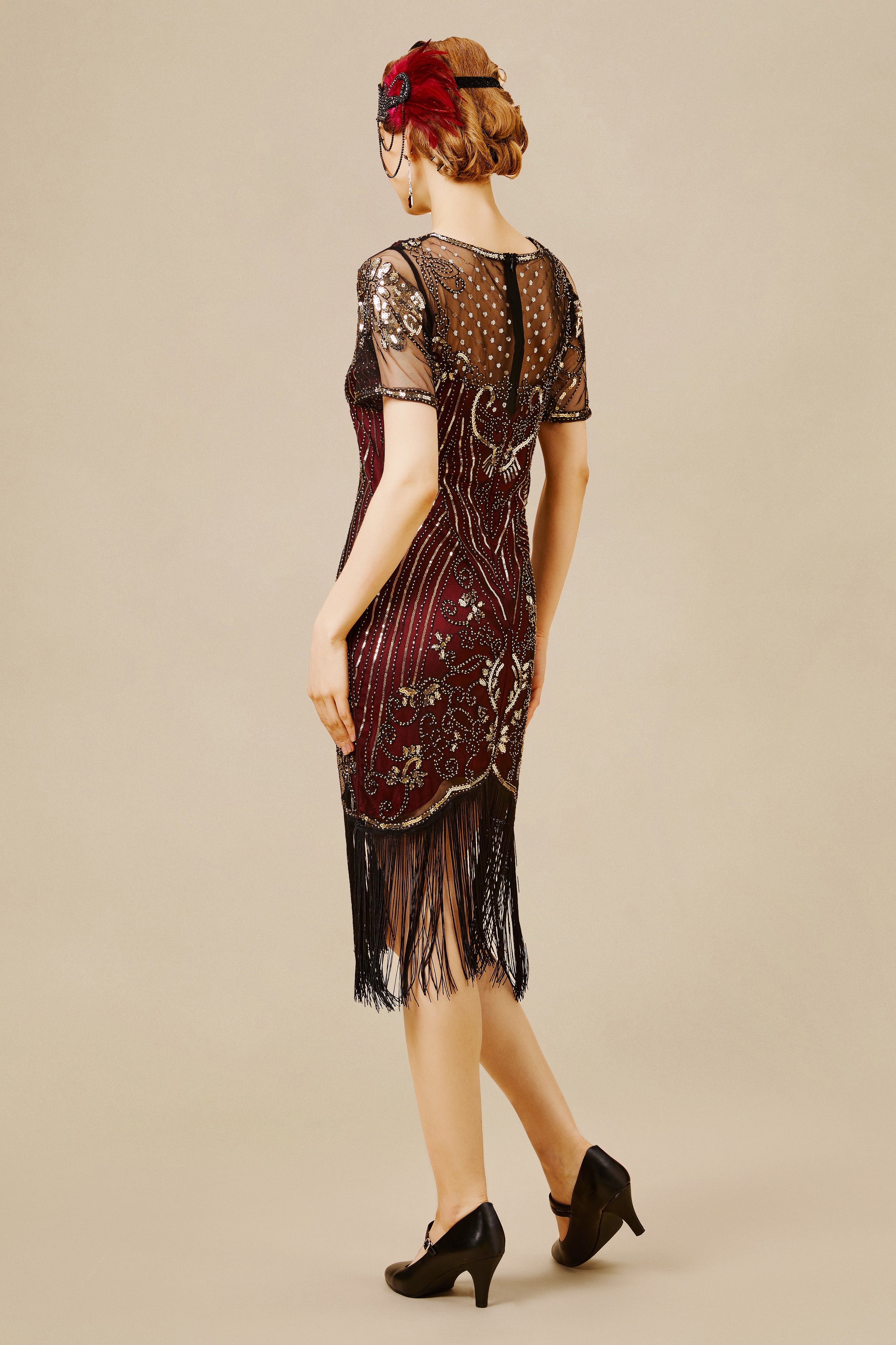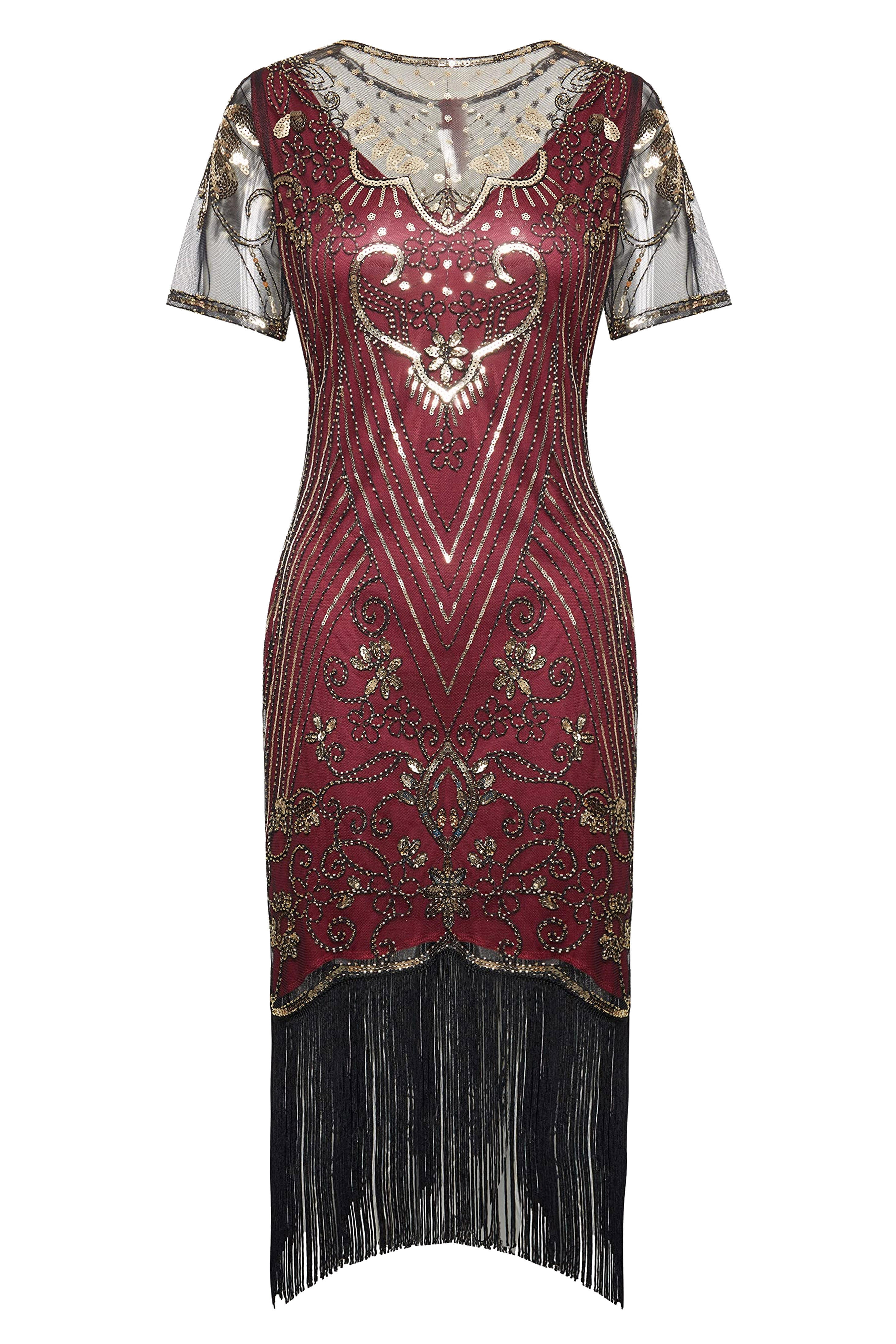 This fringed dress is classic vintage look for a modern woman. The eyecatching design features art deco print and unique vintage style which bring you back to the roaring twenties.