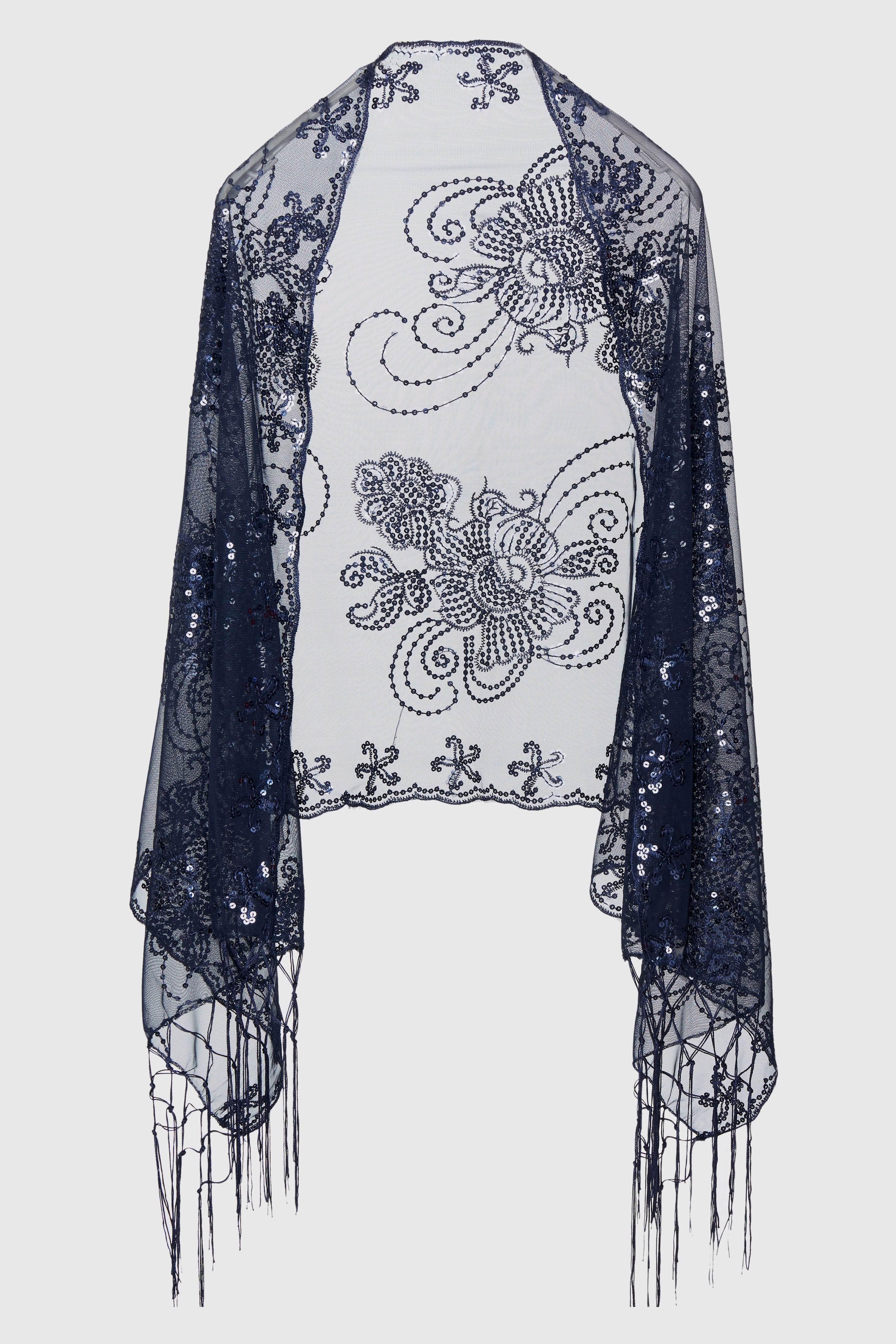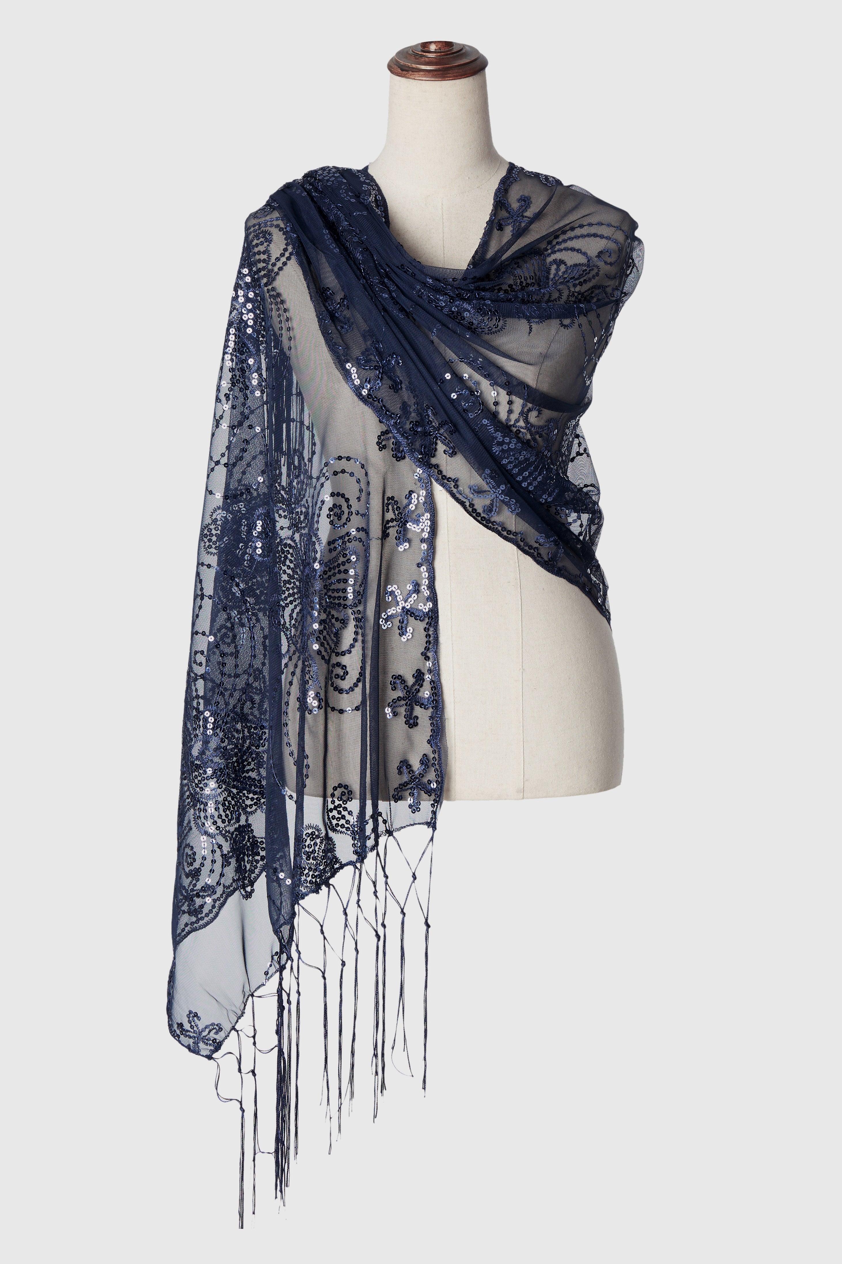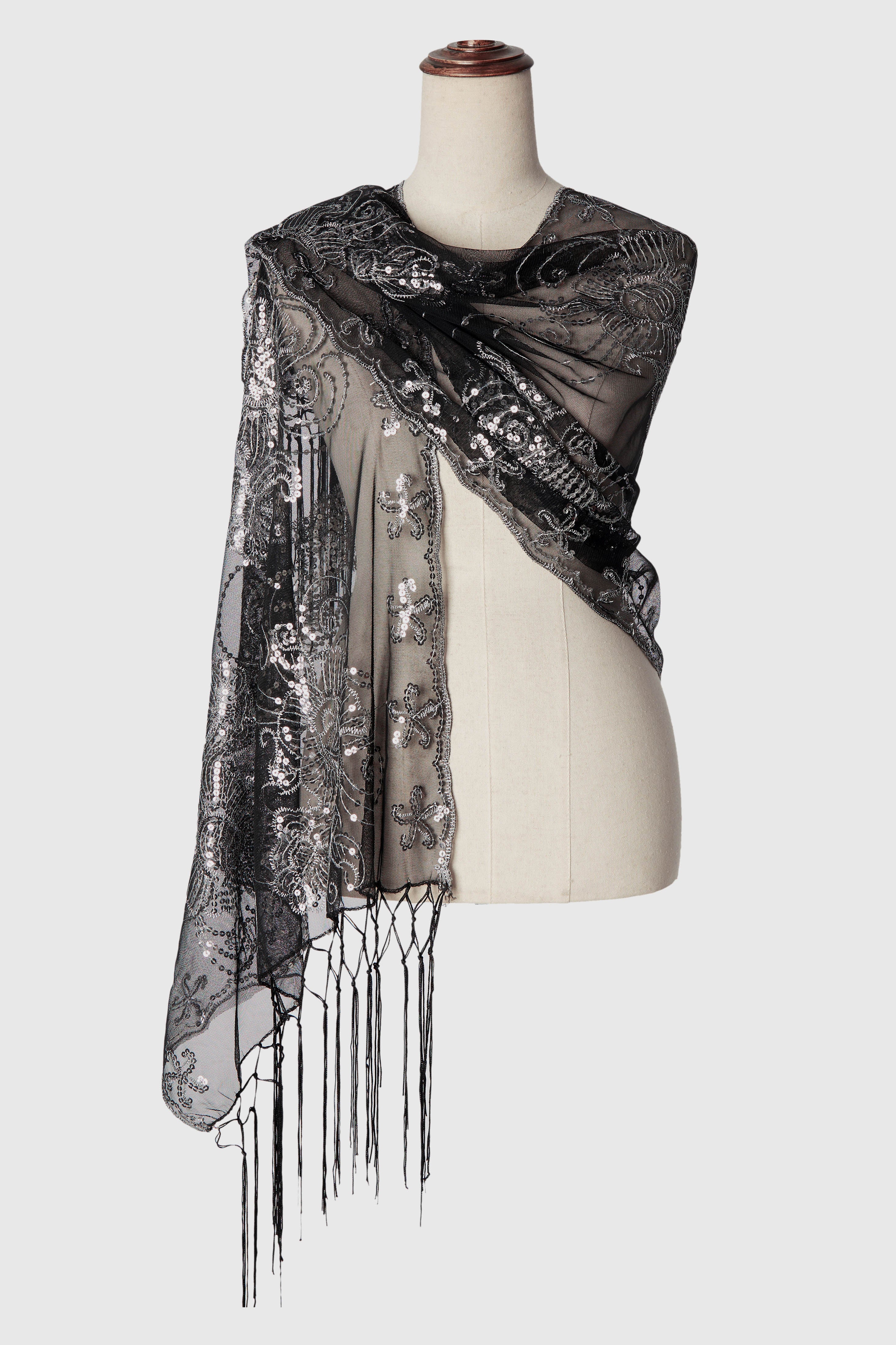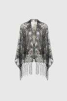 The delicate fringe adds a playful yet refined touch, swaying with elegance. This shawl effortlessly transforms any outfit, perfect for adding a touch of glamour to evening wear or as a statement piece for special occasions.