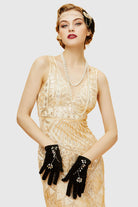 Perfect short satin gloves with minimalist and vintage design patterns to show your elegance significantly, perfect for all kinds of special occasions such as a Great Gatsby party, opera, engagement, dancing prom, pageants, cocktail parties, anniversary, birthday party, etc.