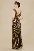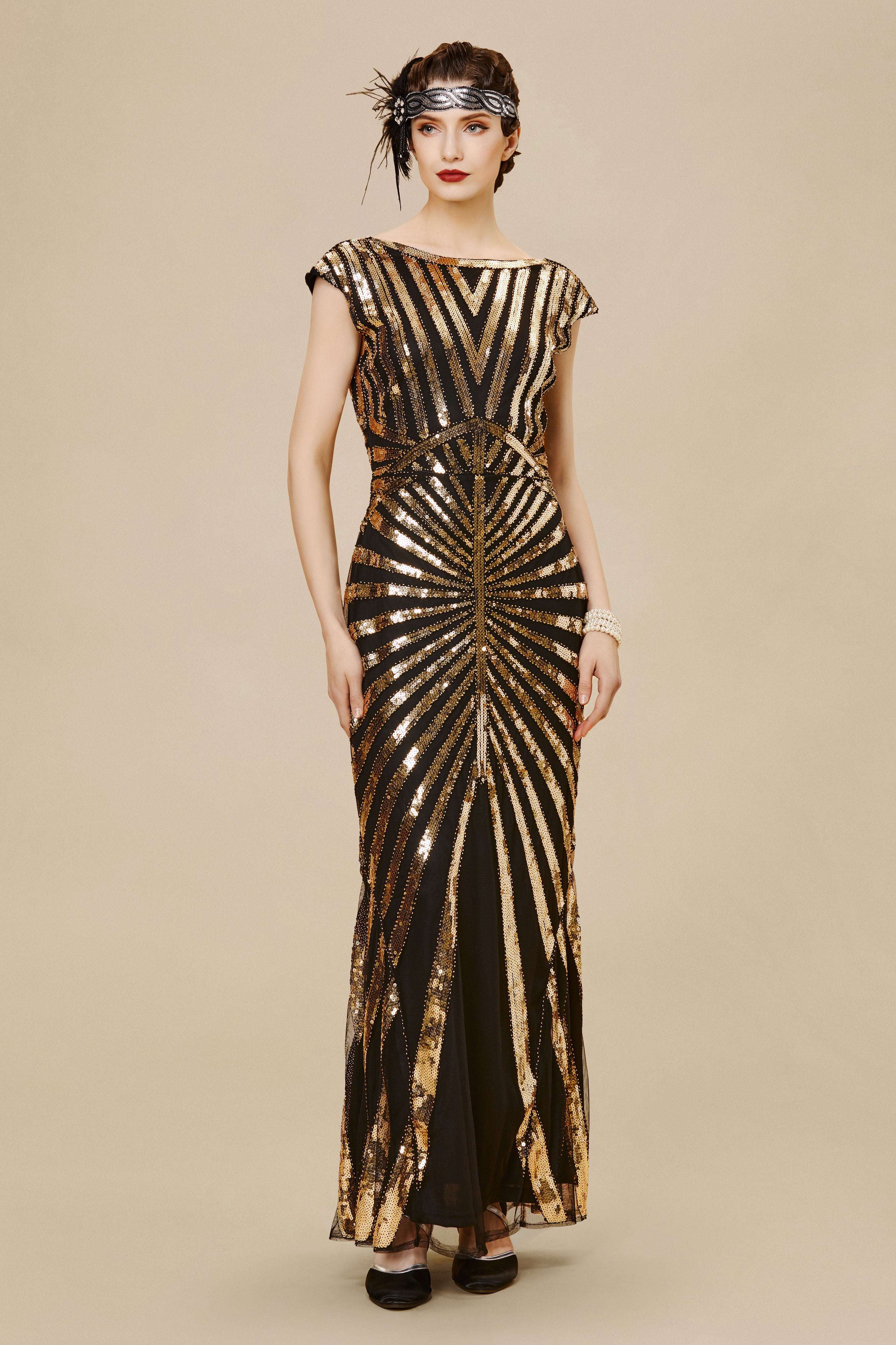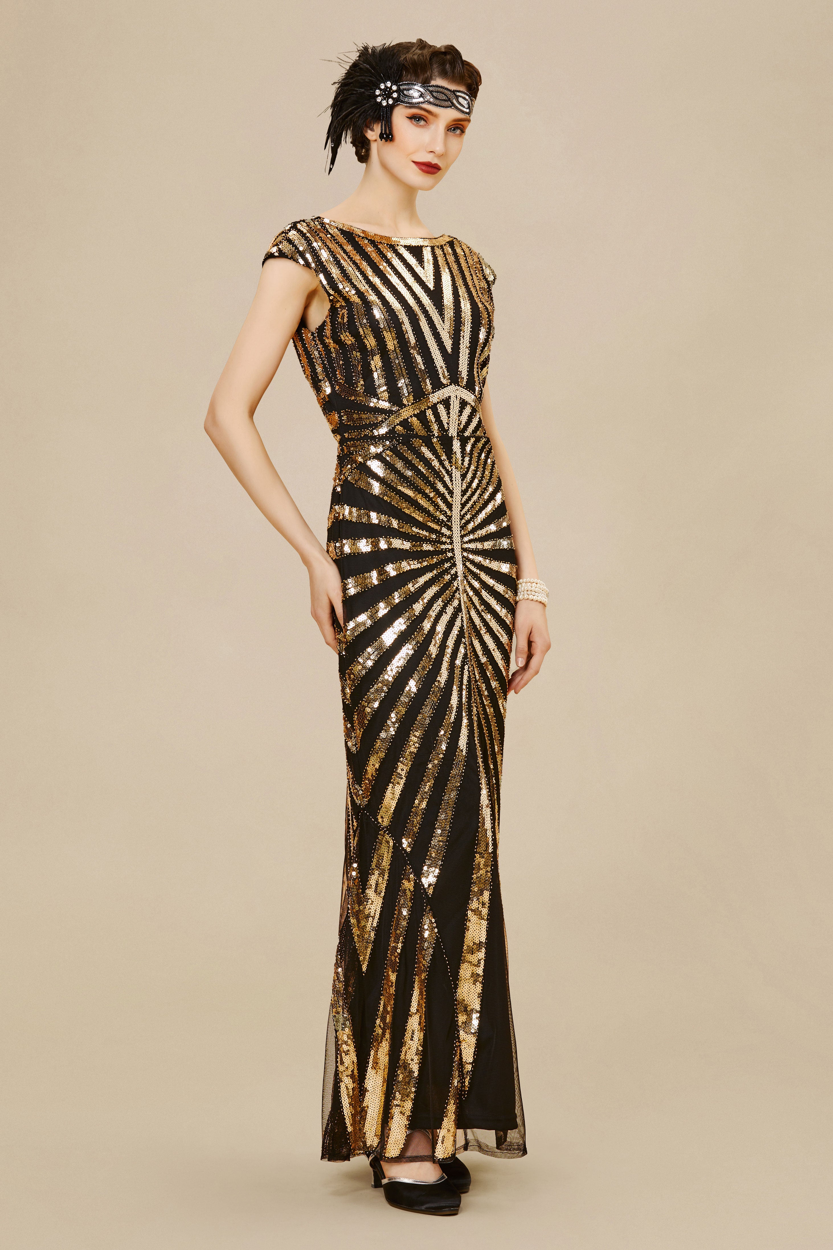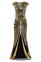 Art Deco Cap Sleeve Sequin Maxi Dress