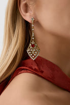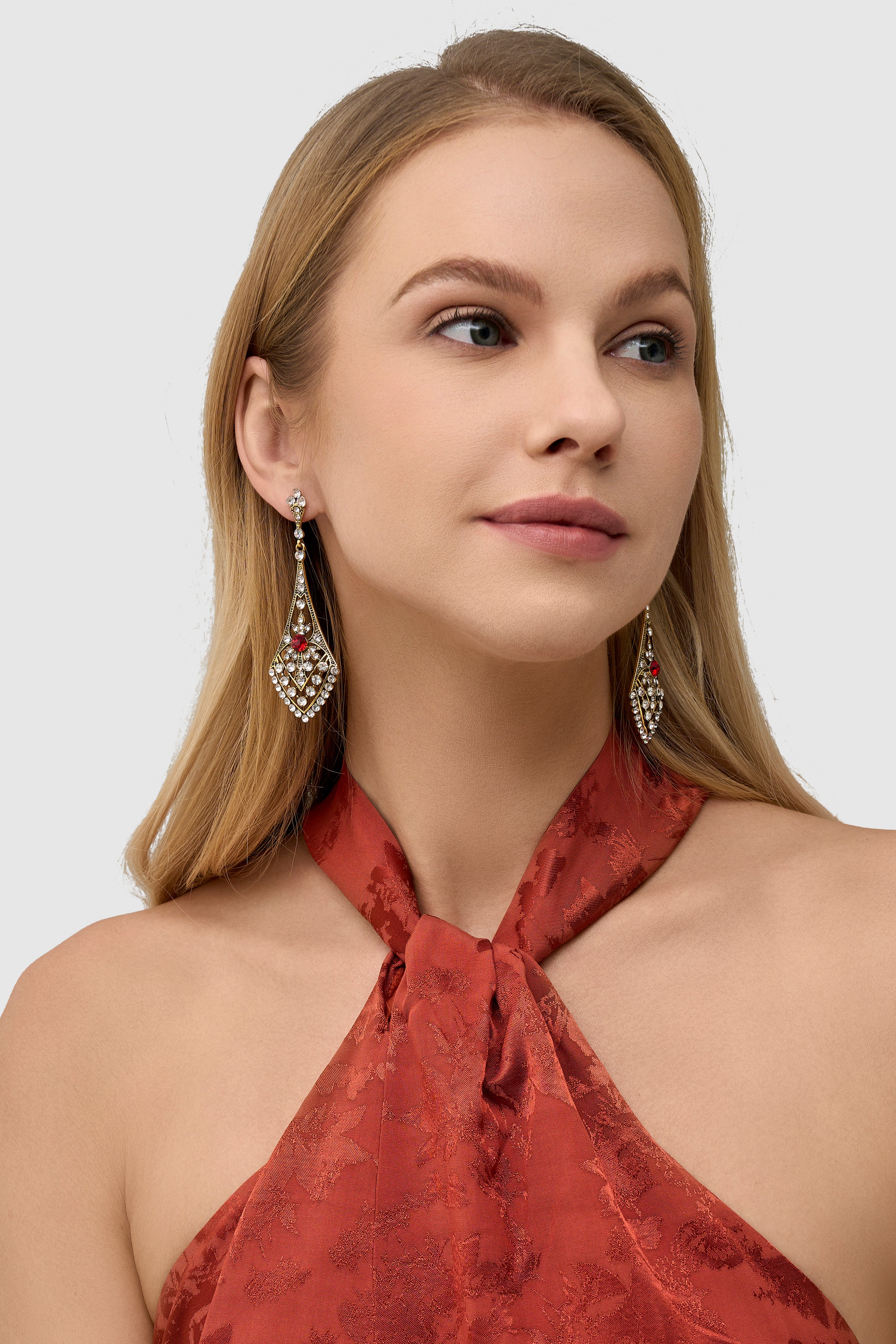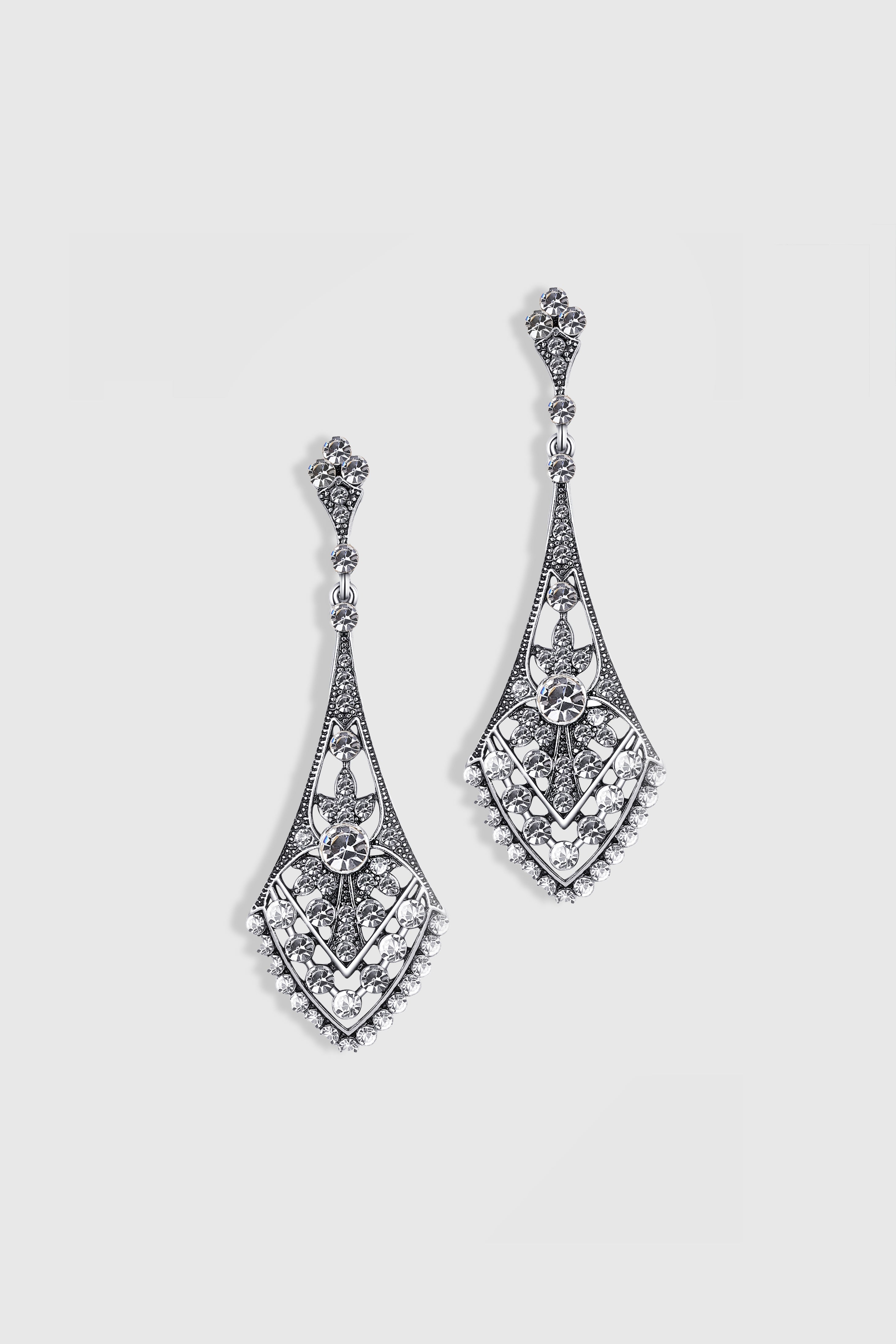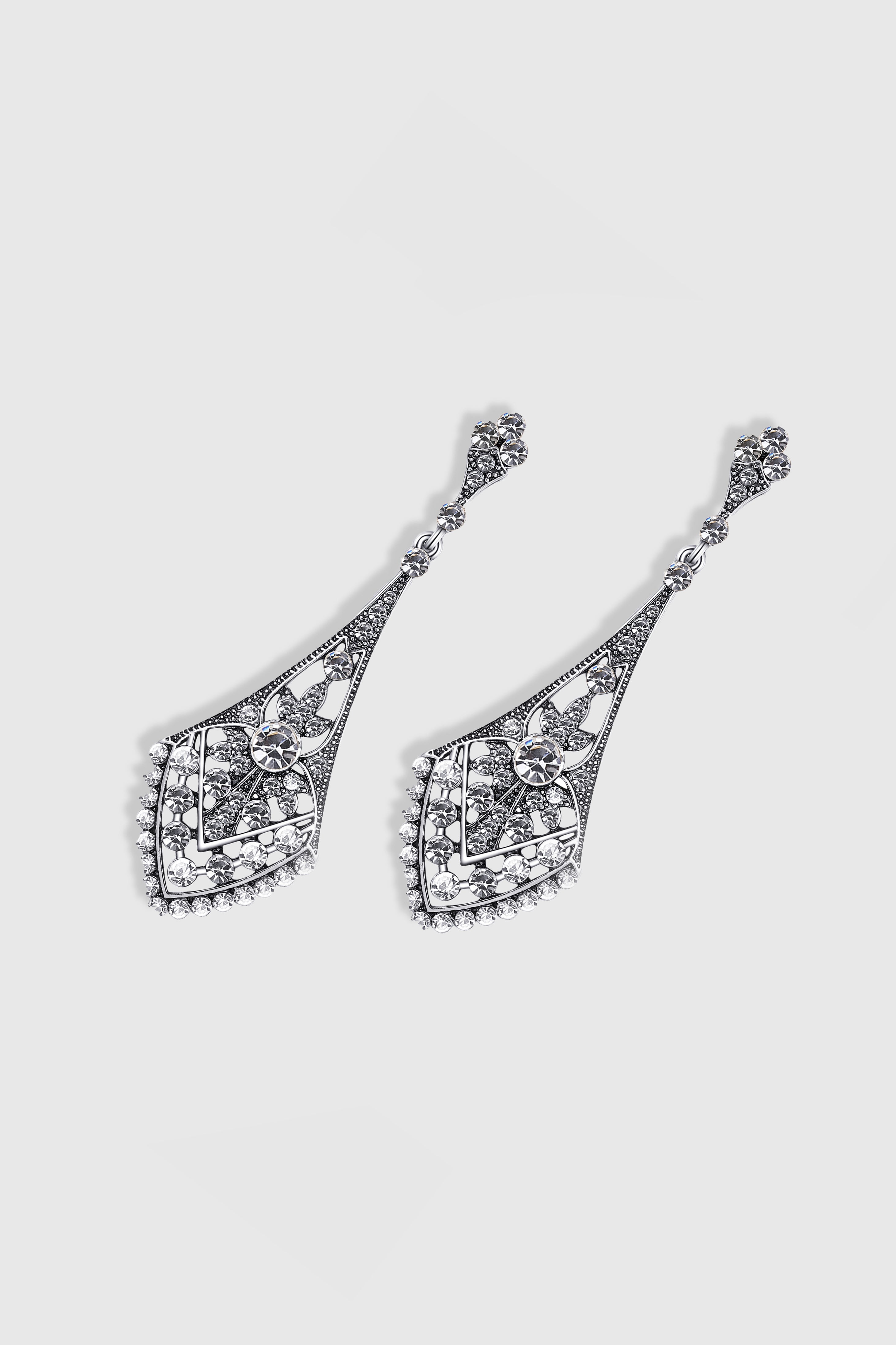 This sumptuous piece of jewelry features a retro-elegant yet slightly modern style that complements the lavish garments, reminiscent of the roaring 1920s.
