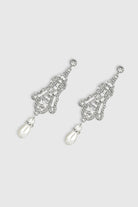 This sumptuous piece of jewelry features a retro-elegant yet slightly modern style that complements the lavish garments, reminiscent of the roaring 1920s.