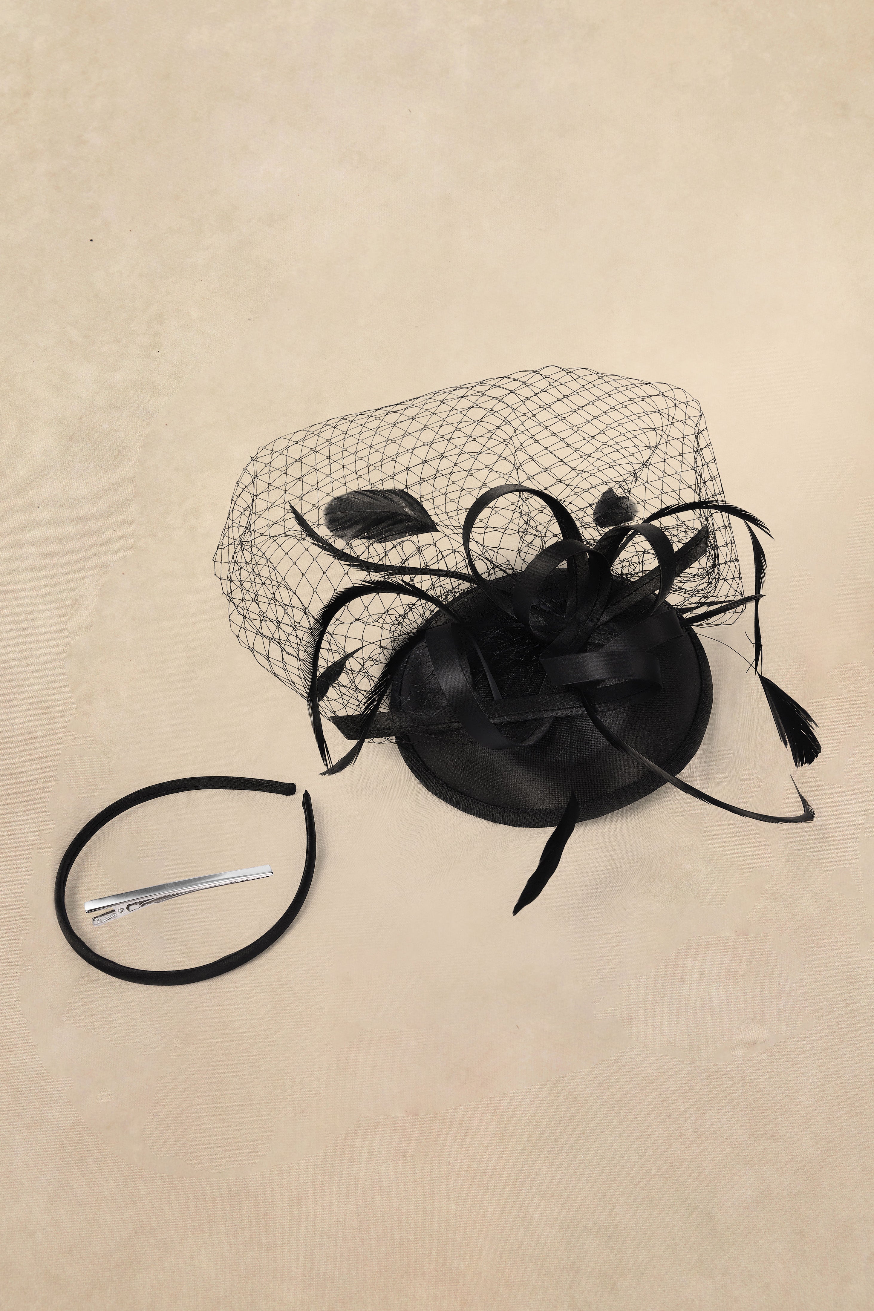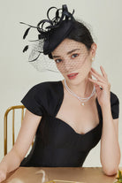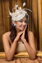 This fascinator features feather accents that are sure to take your breath away. Keep things fancy with the veil pillbox fascinator hat.
